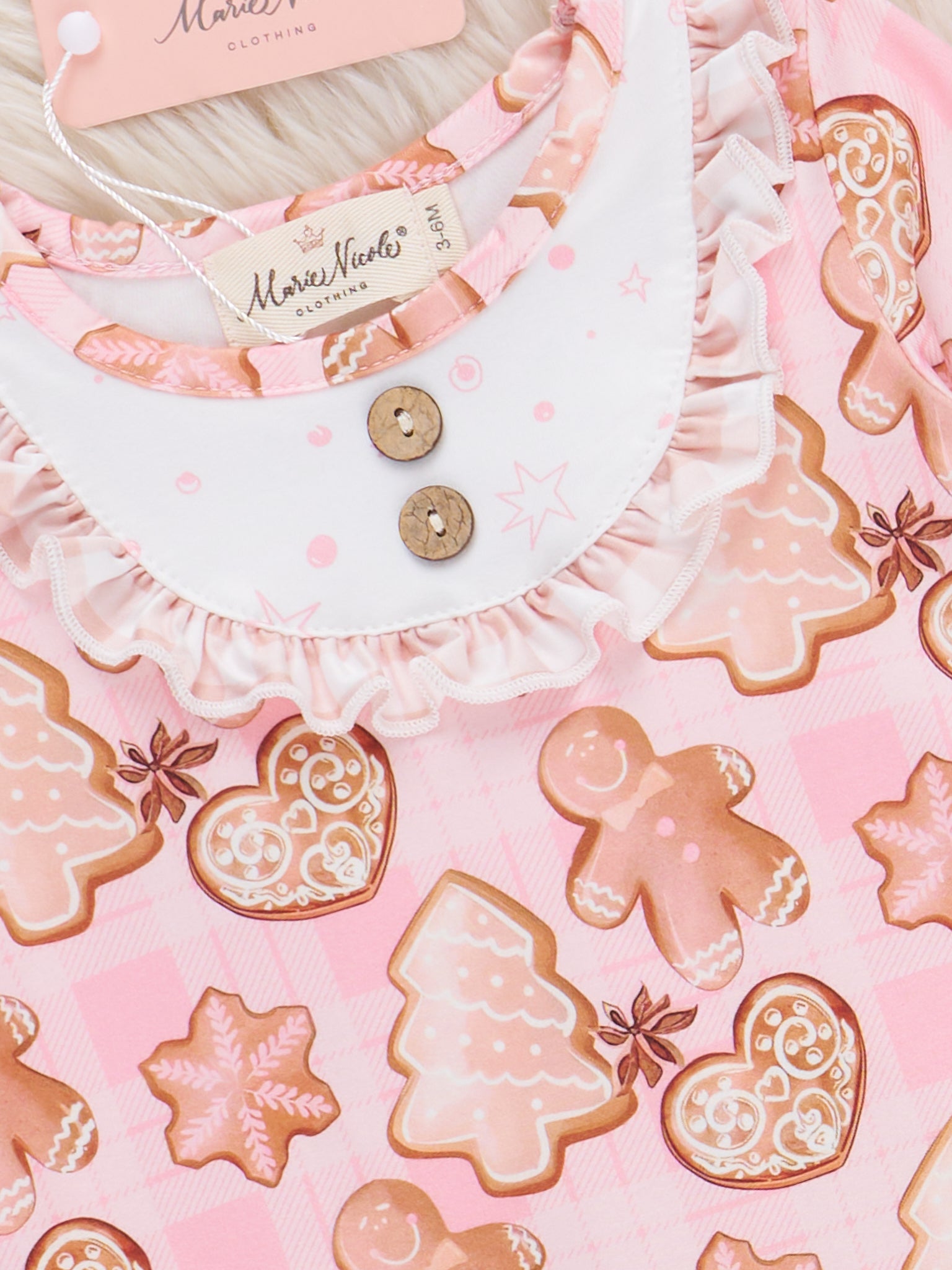Get ready for a sweet holiday with this sister set! This romper boasts a playful gingham ruffle hem, your little girl will be the star of any Christmas party. And who can resist the adorable holiday sugar cookies print? It's the perfect romper for a fun and festive season!