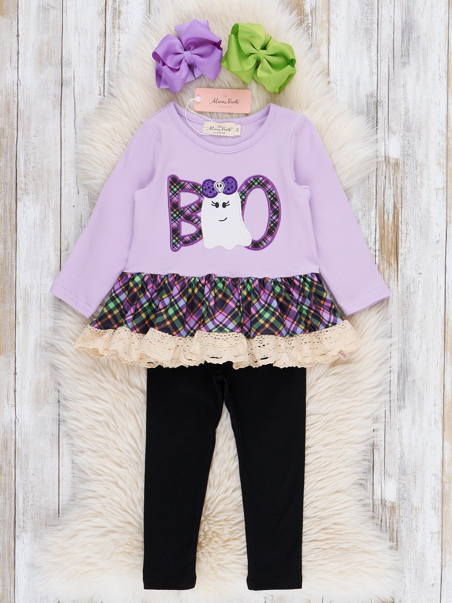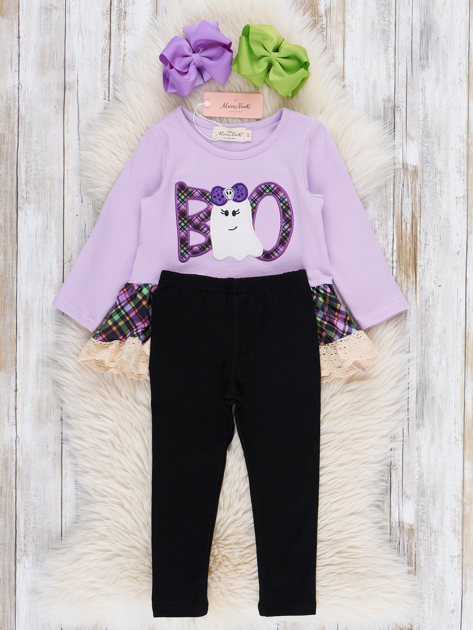 Lilac & Navy Groovy Halloween Floral Ruffle 3 Piece Set