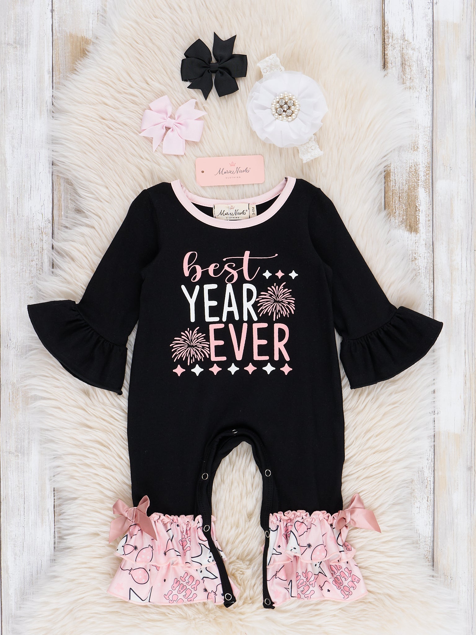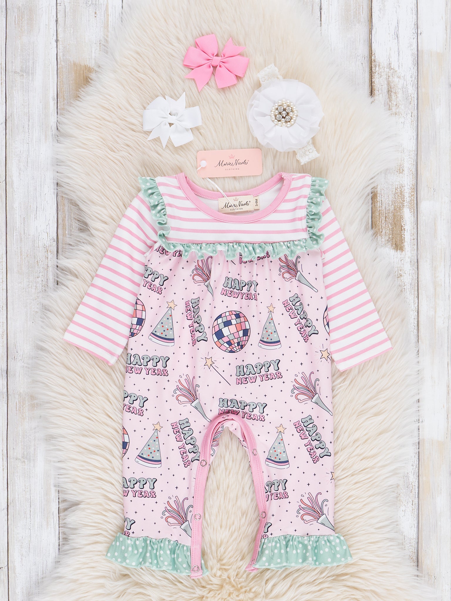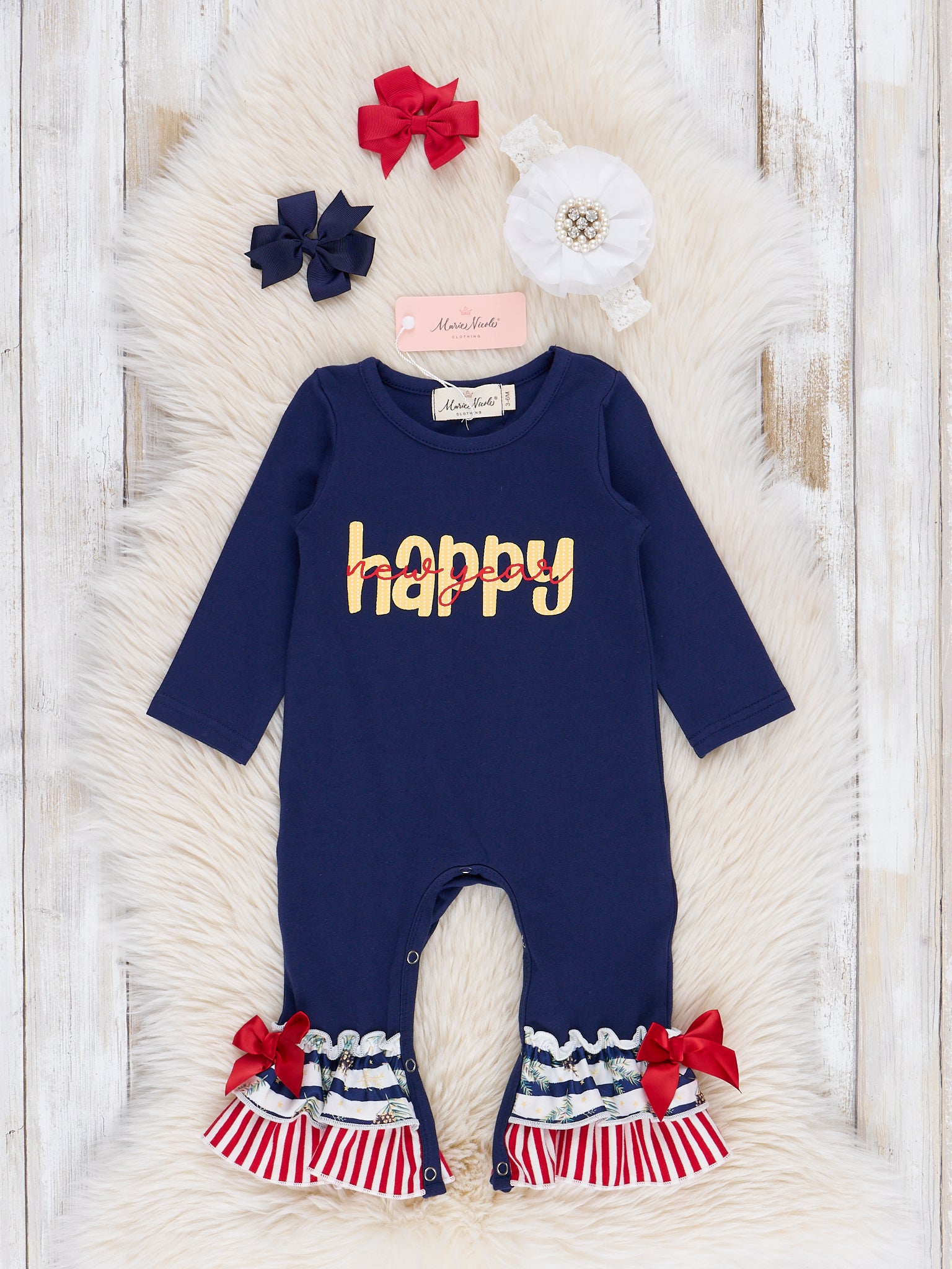 Navy & Red Stripes Happy New Year Ruffle Romper