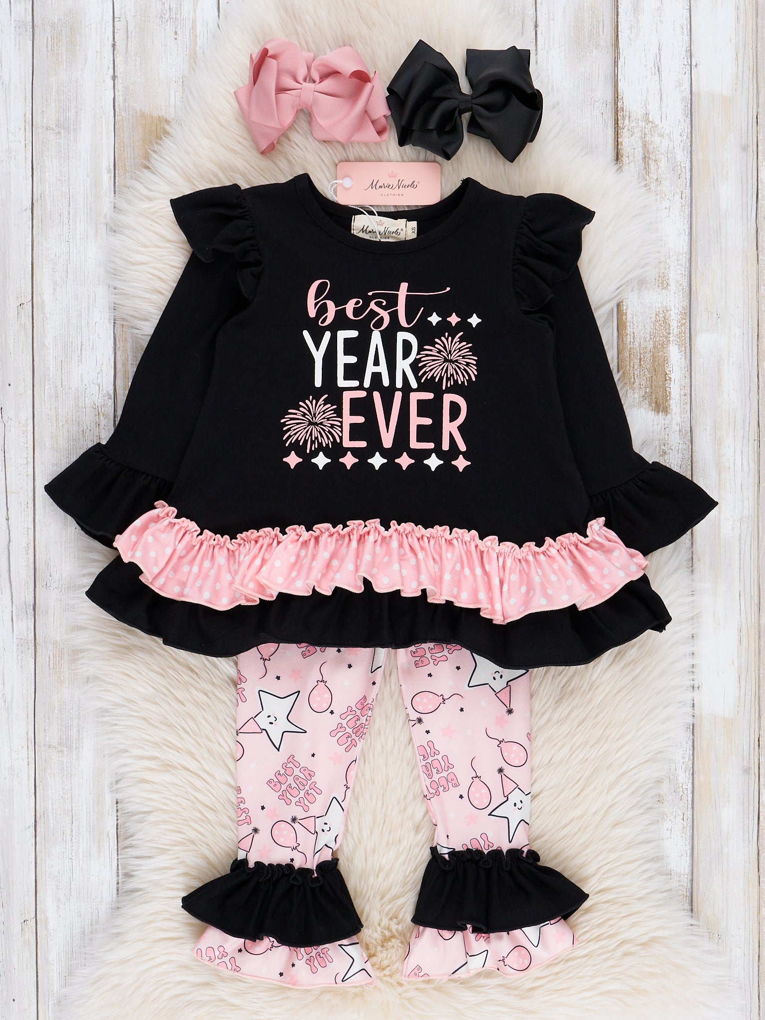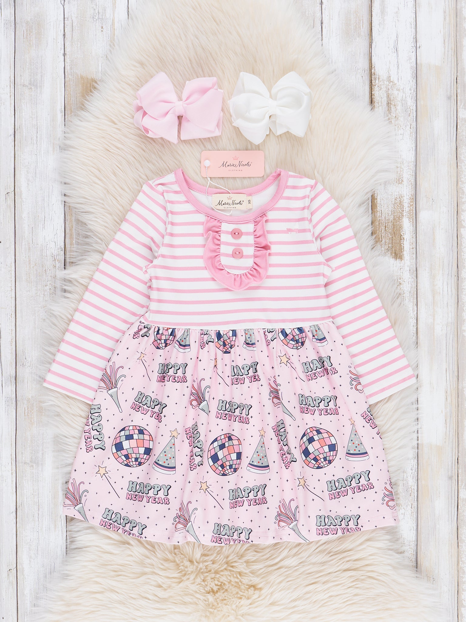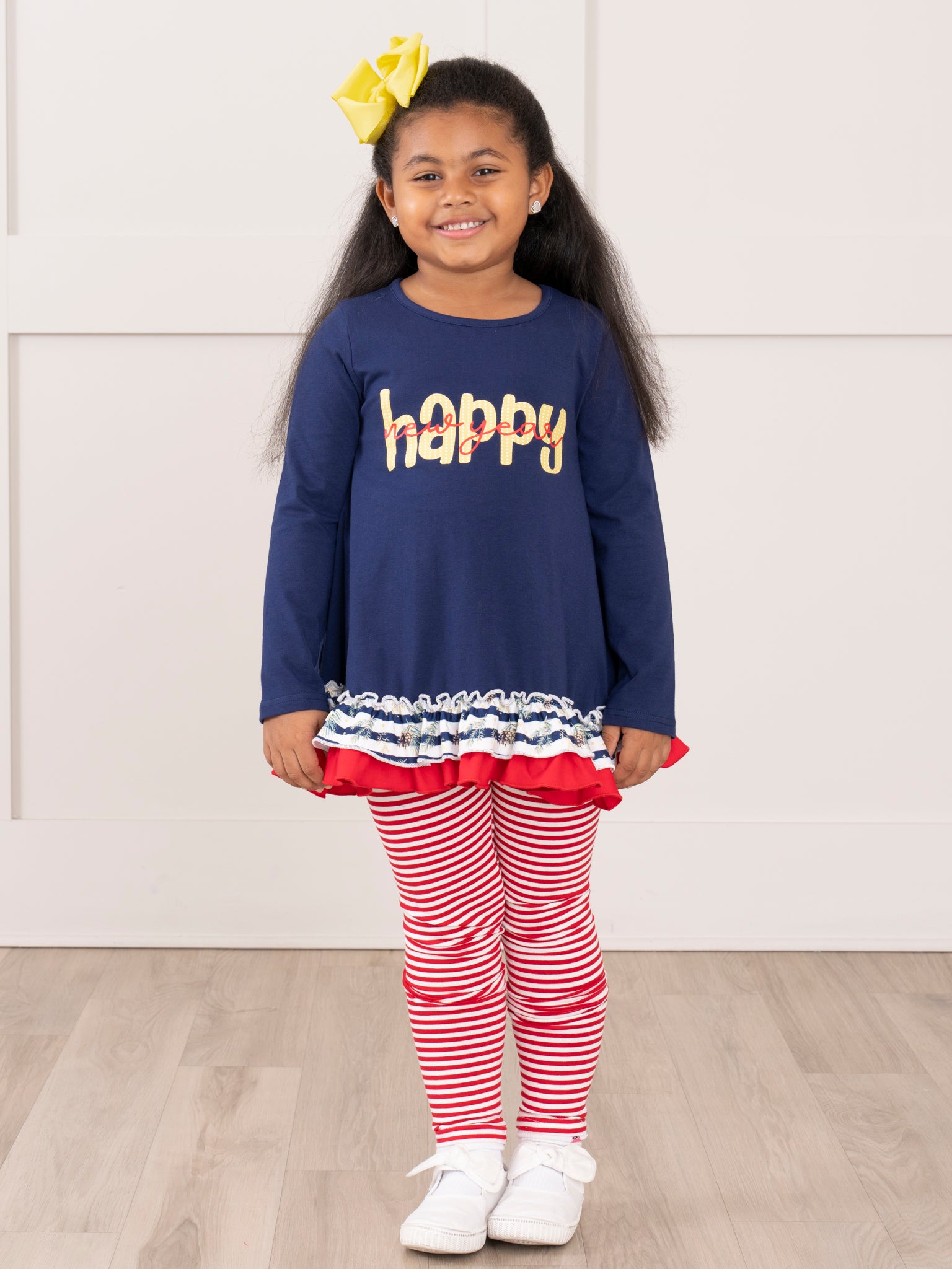 Navy & Red Stripes Happy New Year Ruffle Outfit