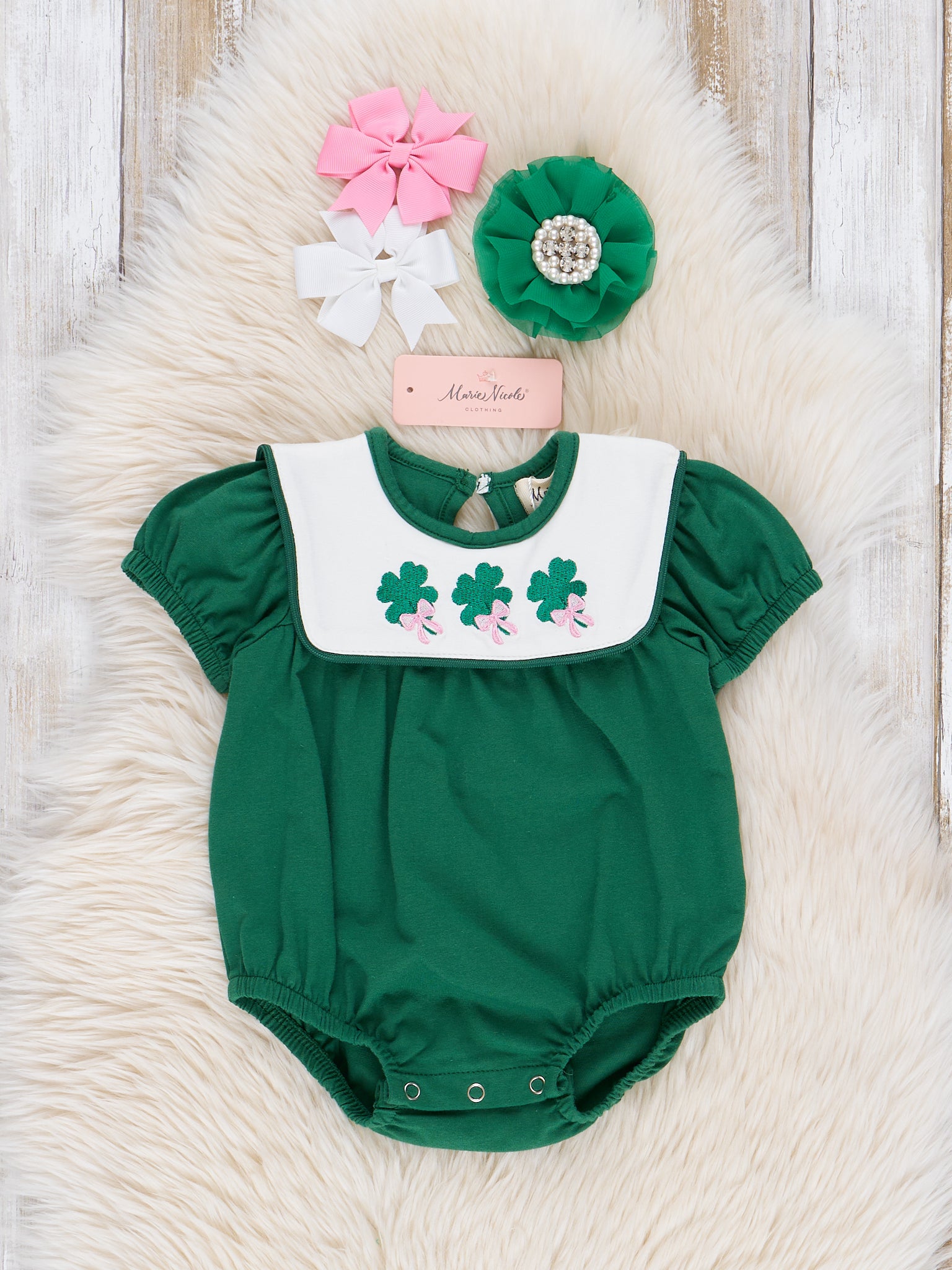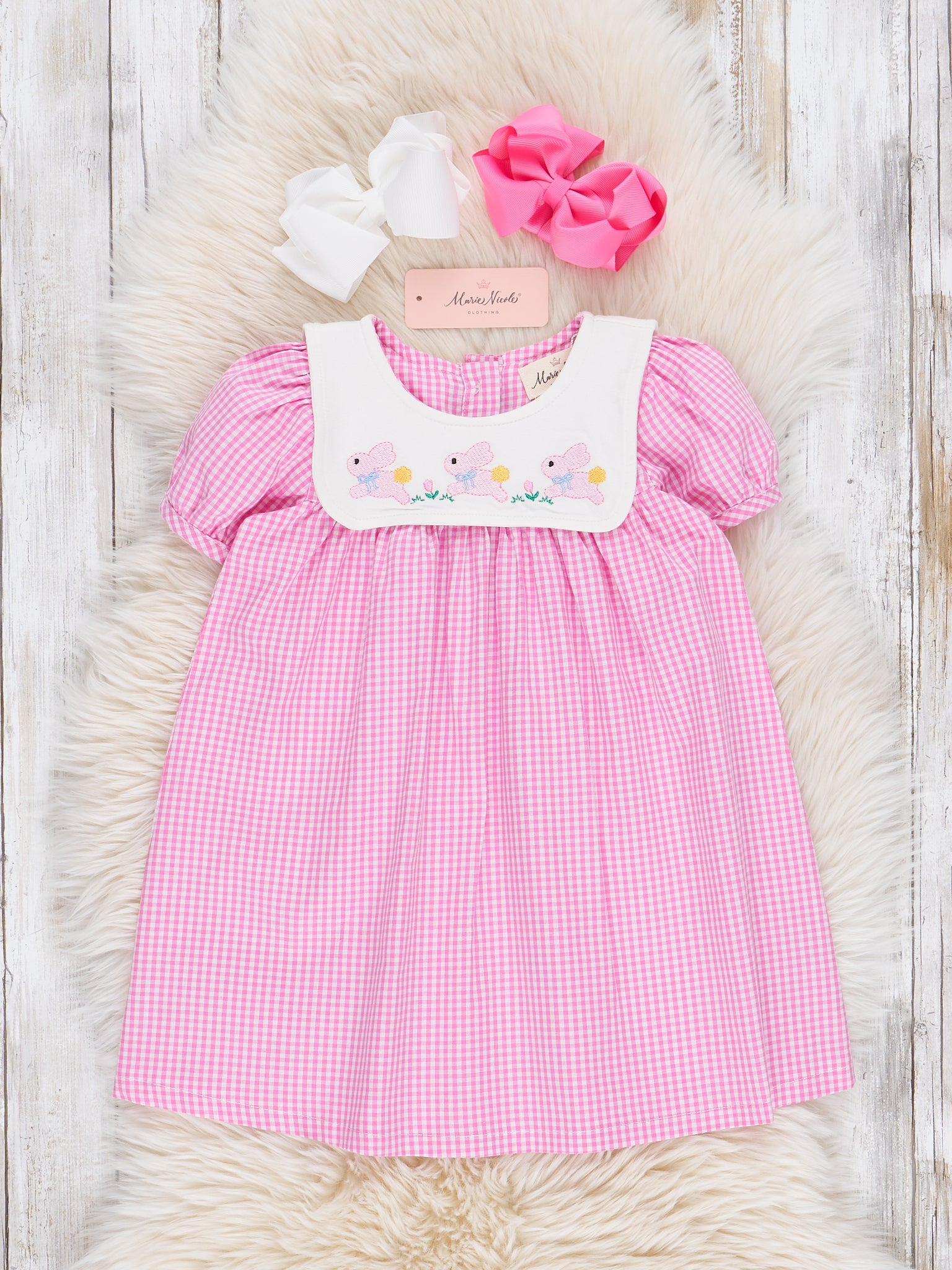 Green Embroidered Bunny Gingham Ruffle Bubble