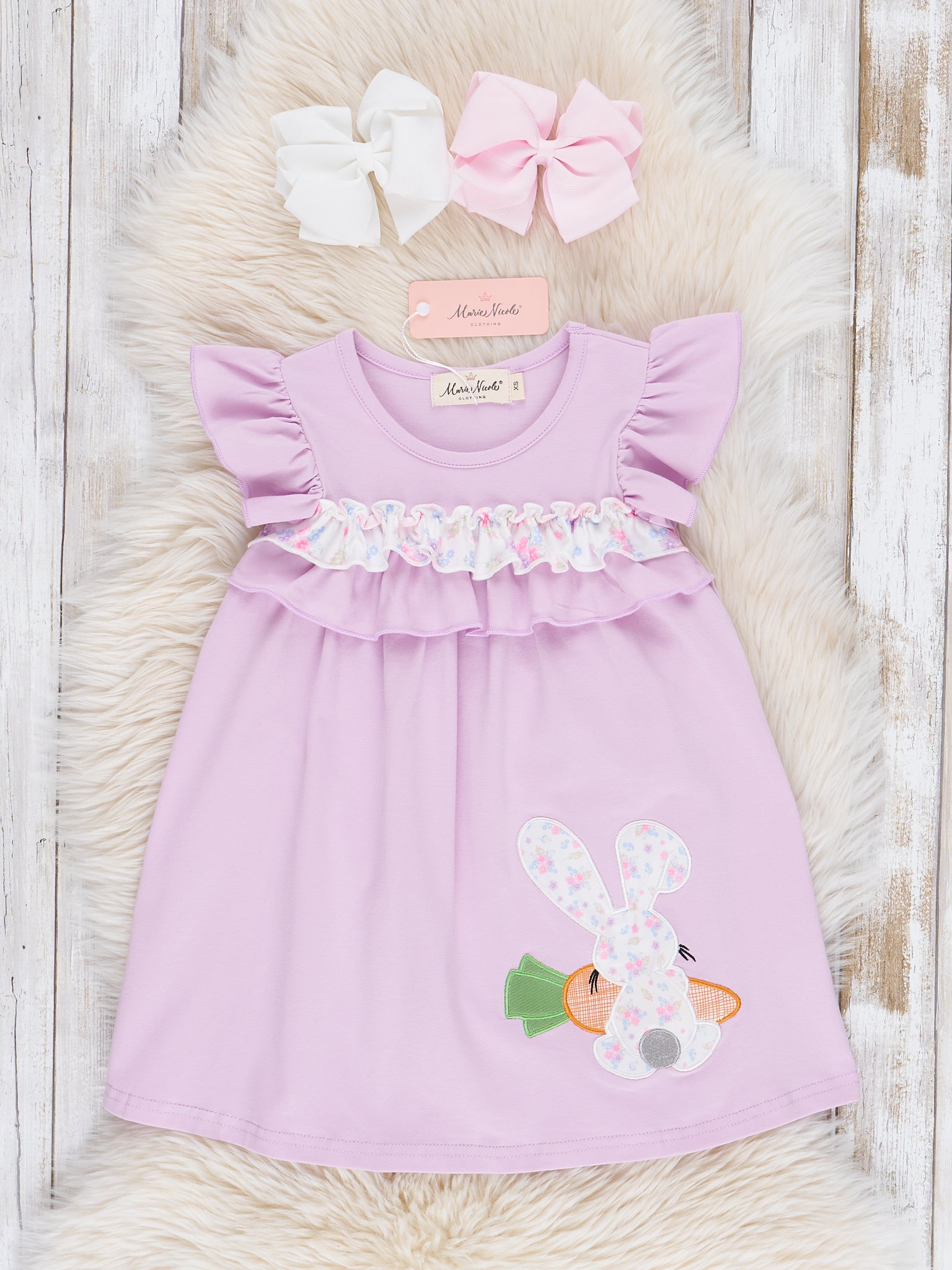 Purple Embroidered Floral Bunny Ruffle Outfit
