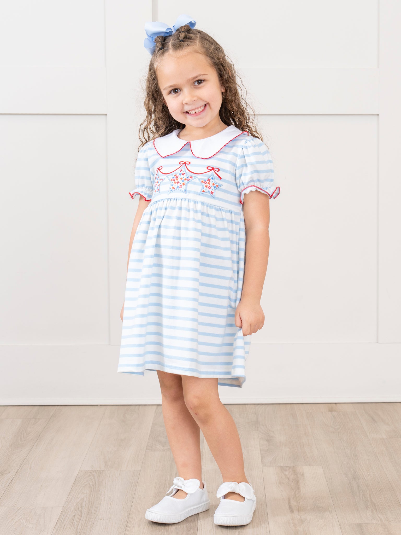 Blue & White Striped Patriotic Stars Dress