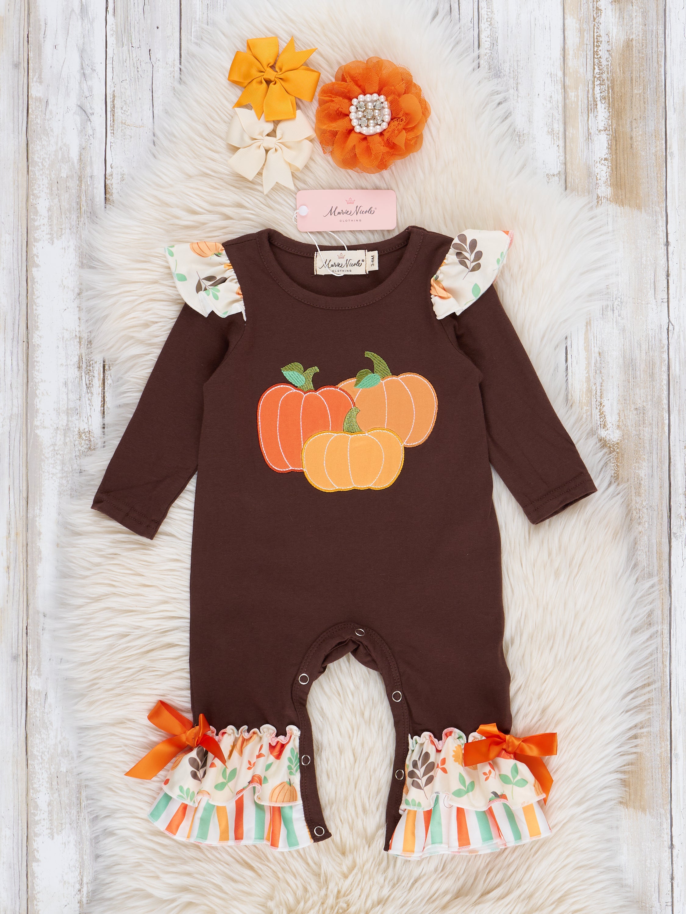 Brown & Orange Pumpkin Harvest Ruffle Outfit