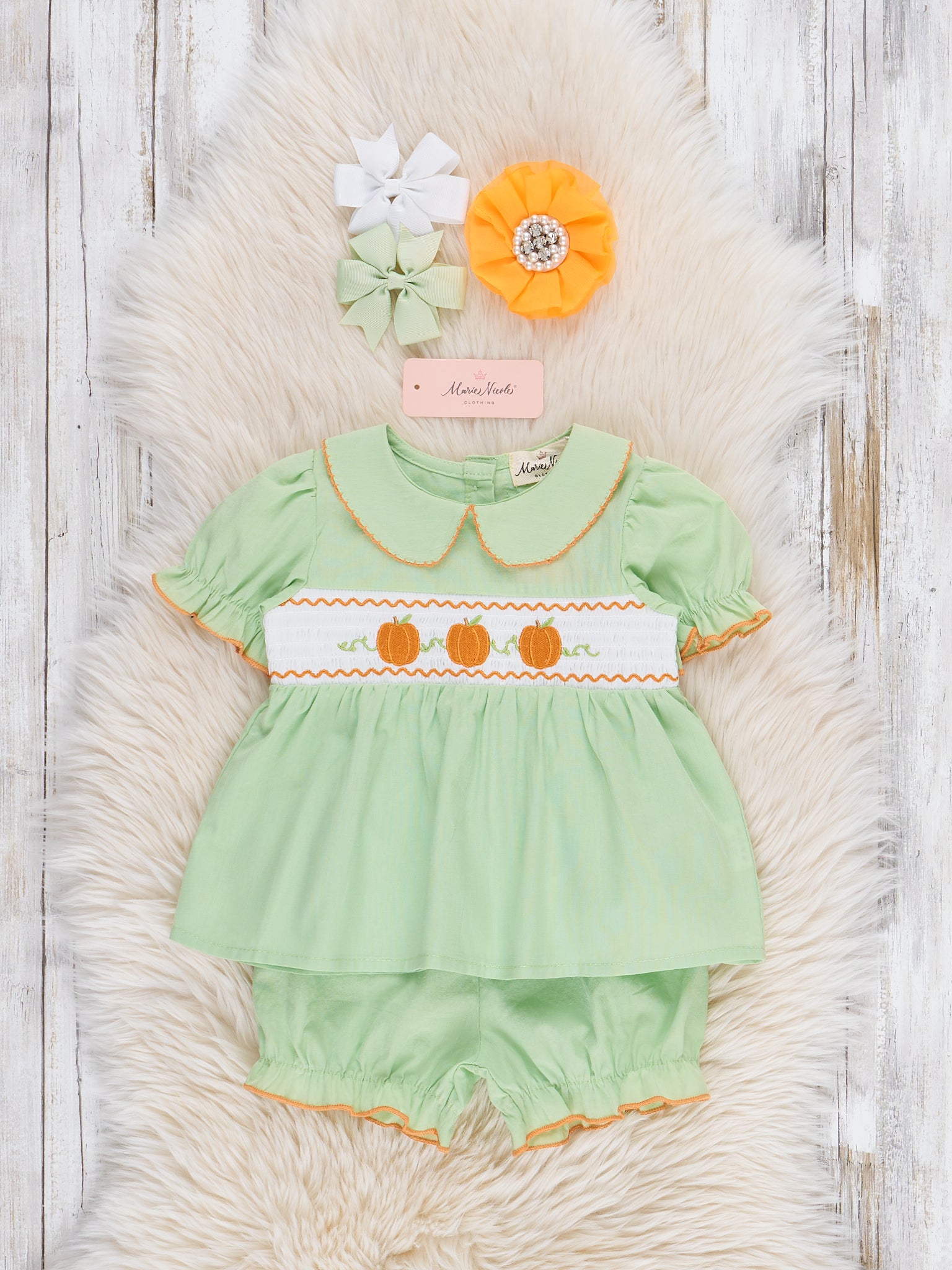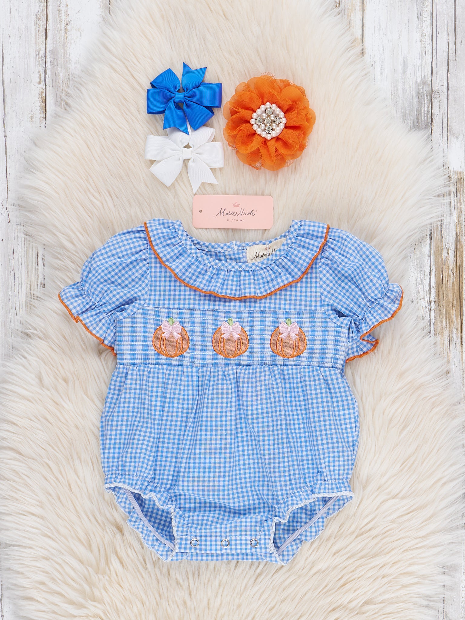 Pumpkin Posh Cutie Embroidered Smocked Bubble