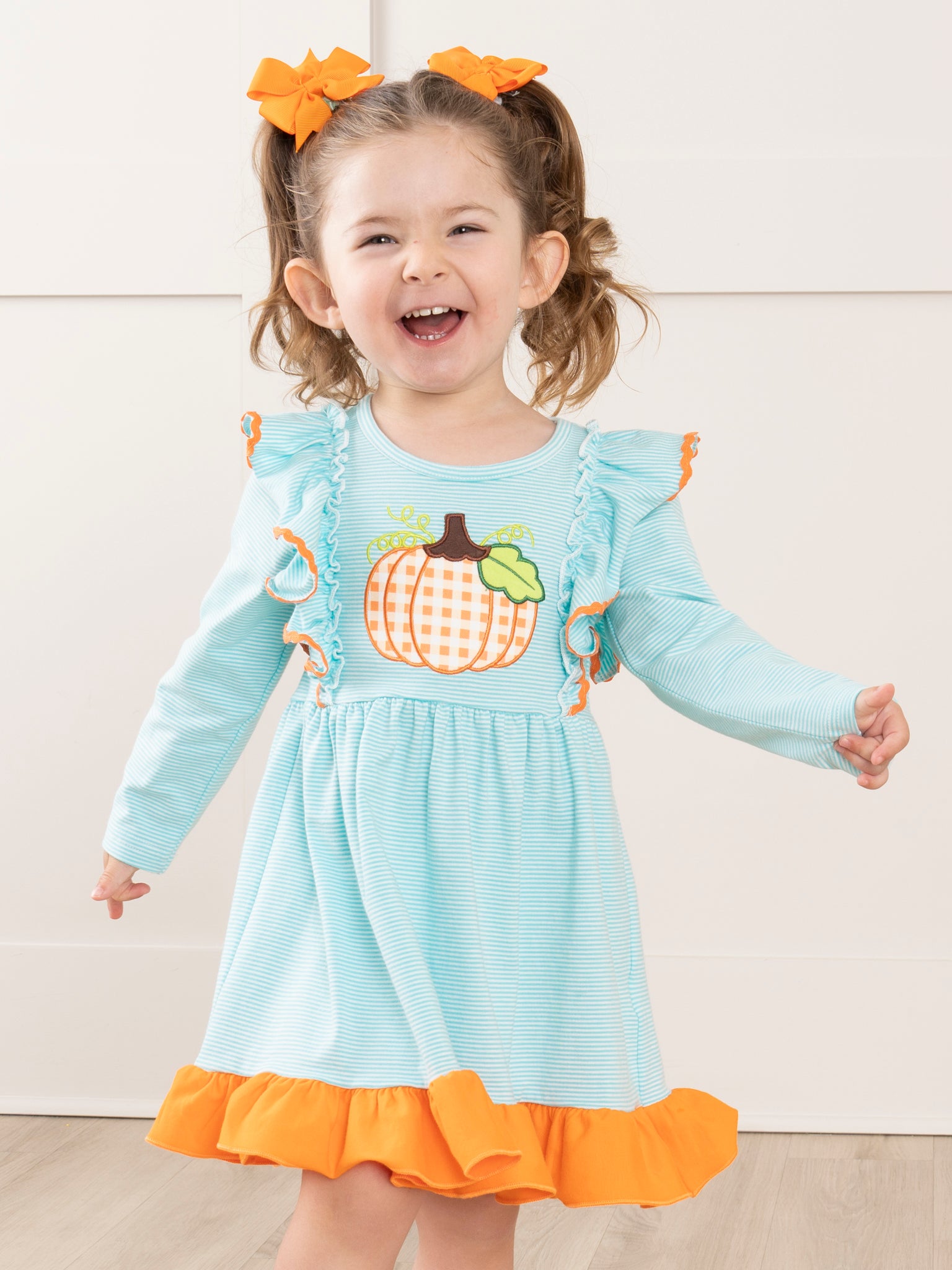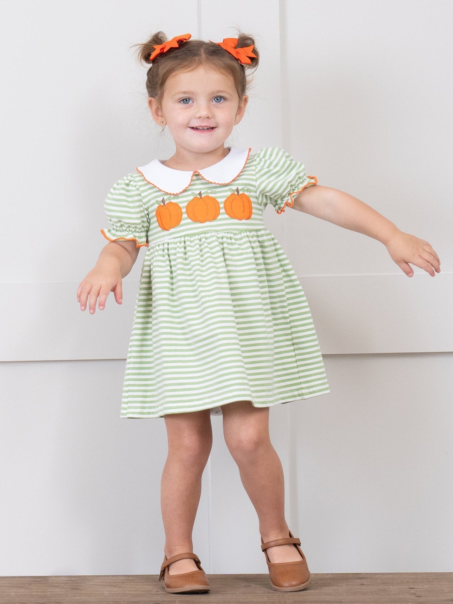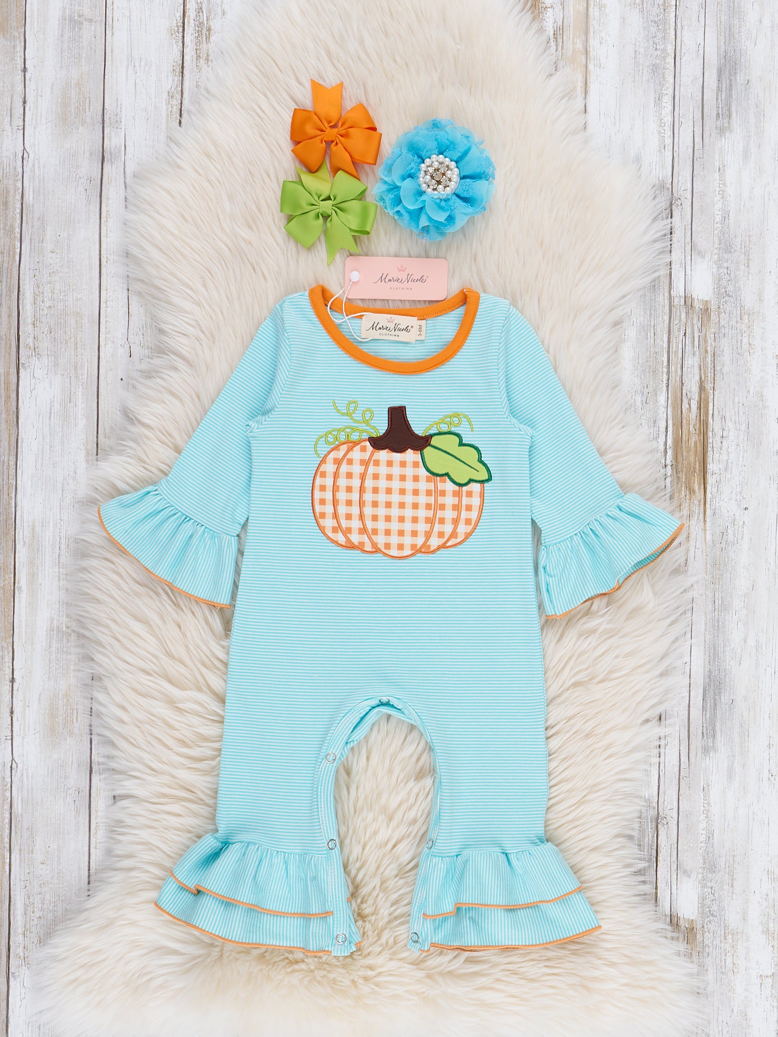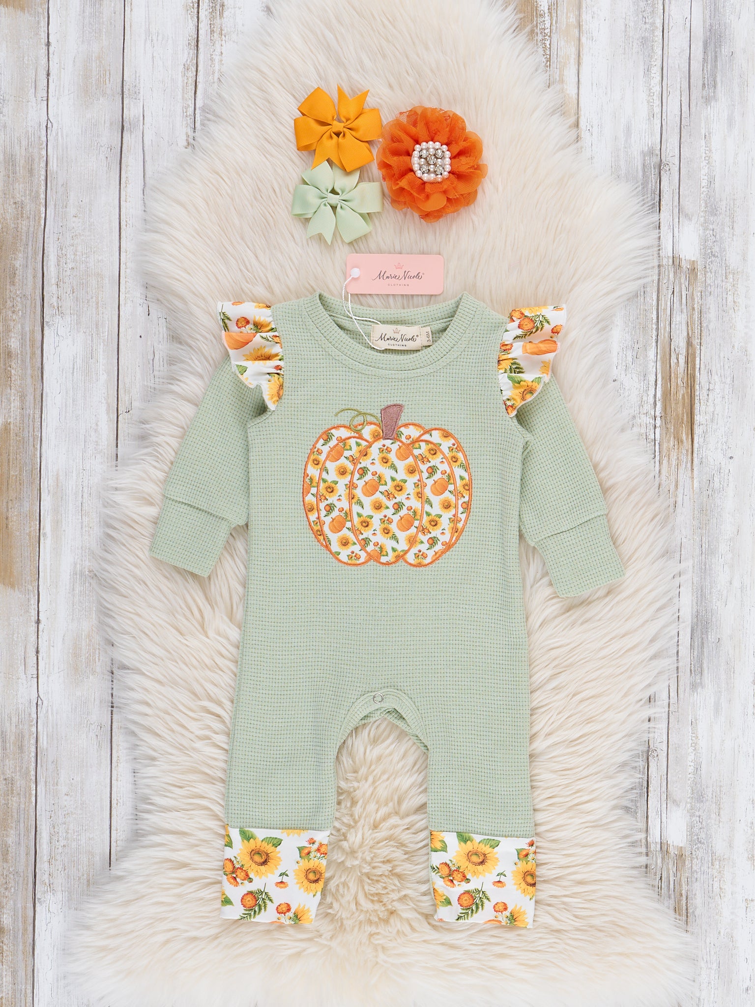 Green & Orange Autumn Pumpkin Ruffle Outfit
