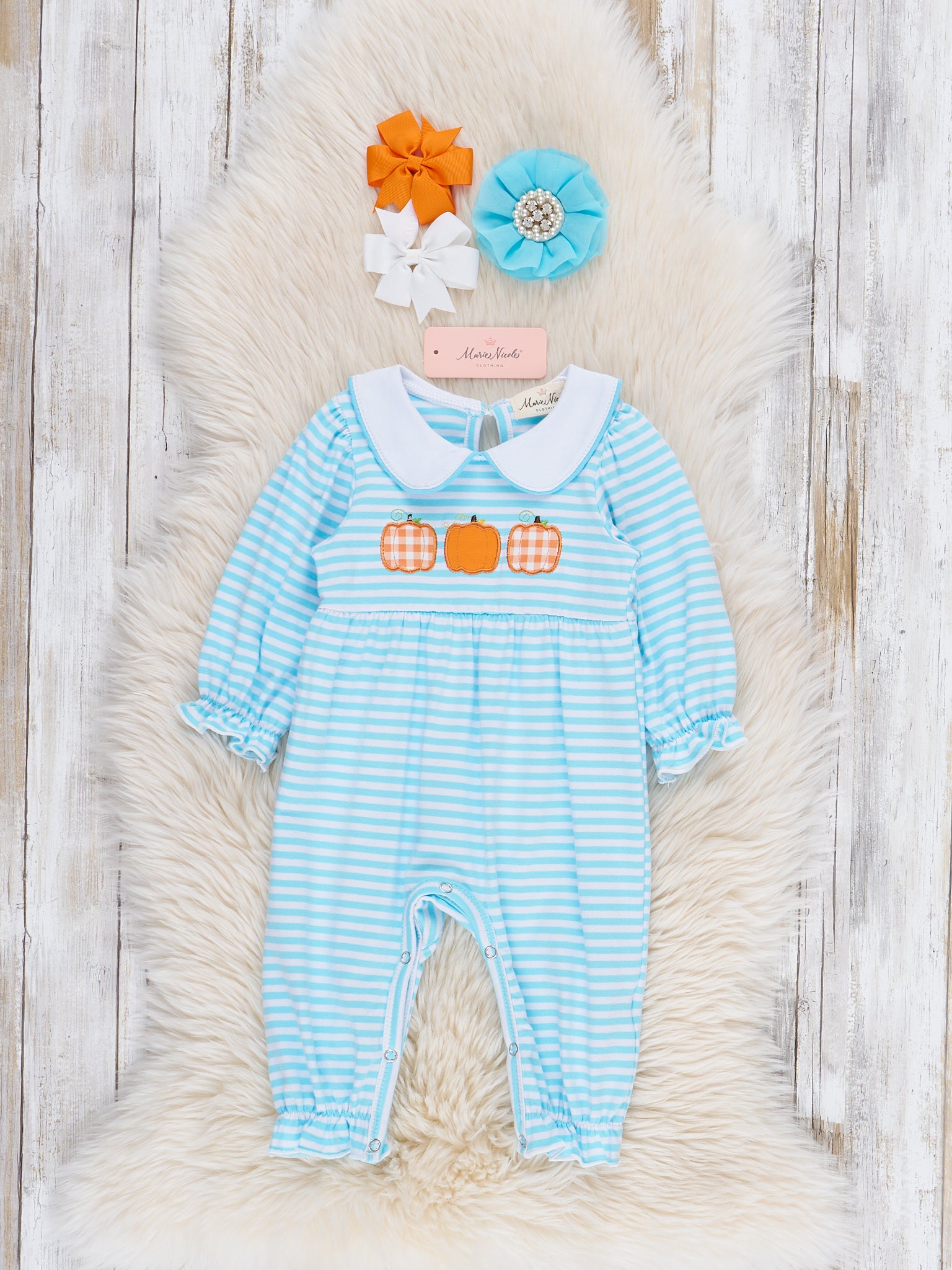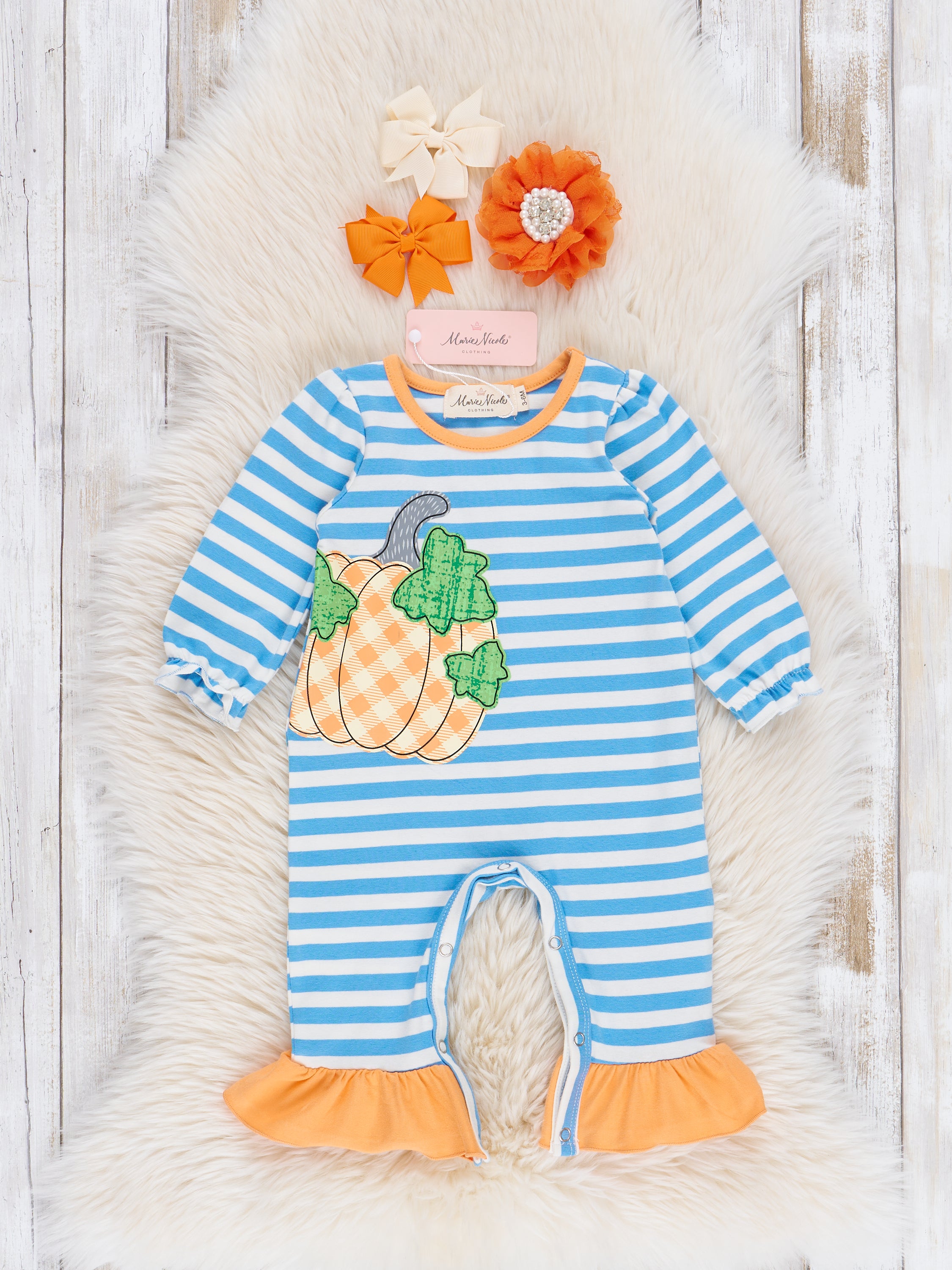 Blue Striped Vintage Pumpkin Romper