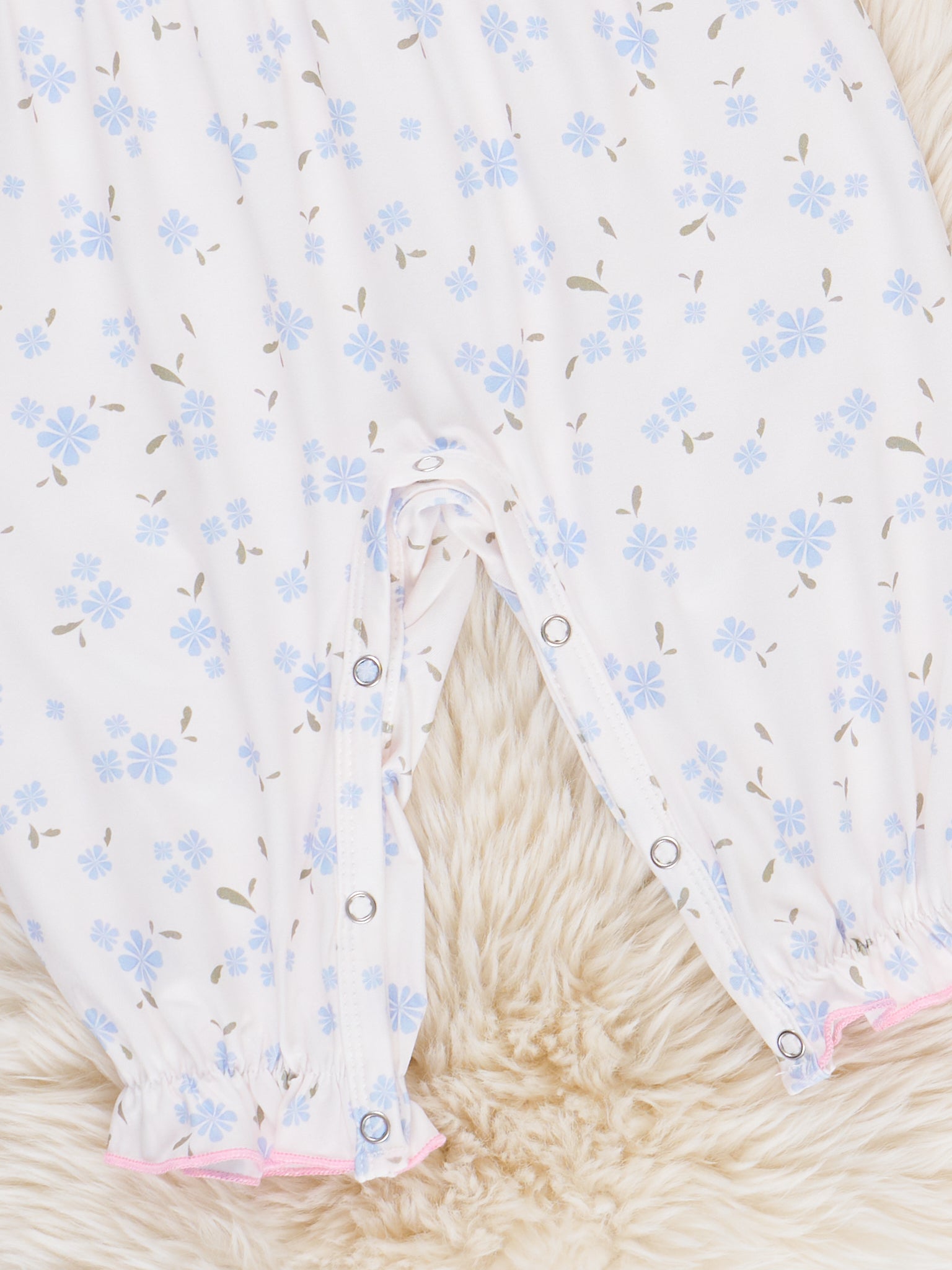 Light Blue Floral Embroidered Pumpkin Ruffle Romper