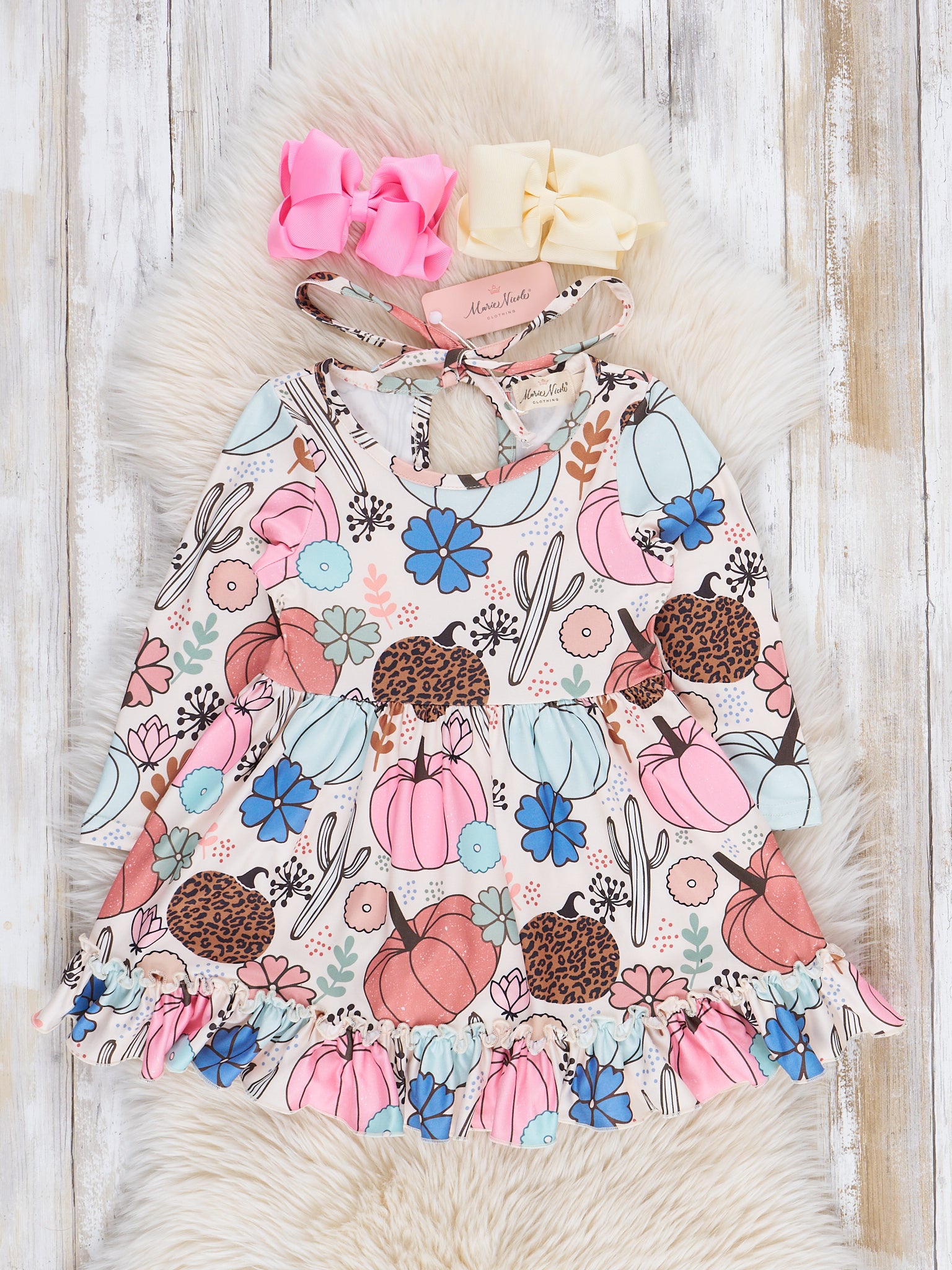 Desert Blooms Pink & Teal Pumpkin Ruffle Dress