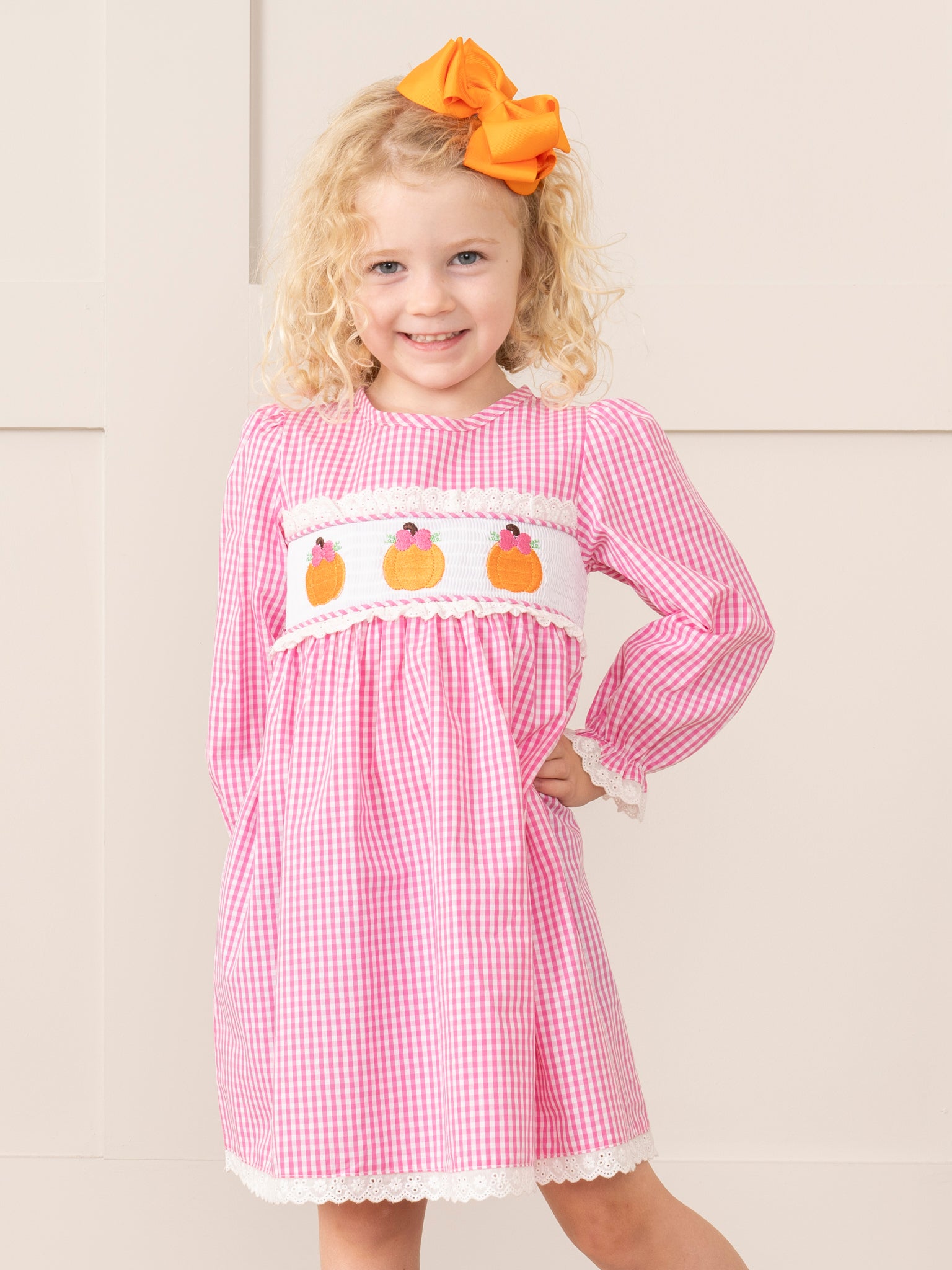 Pink Gingham Smocked Pumpkin Ruffle Dress