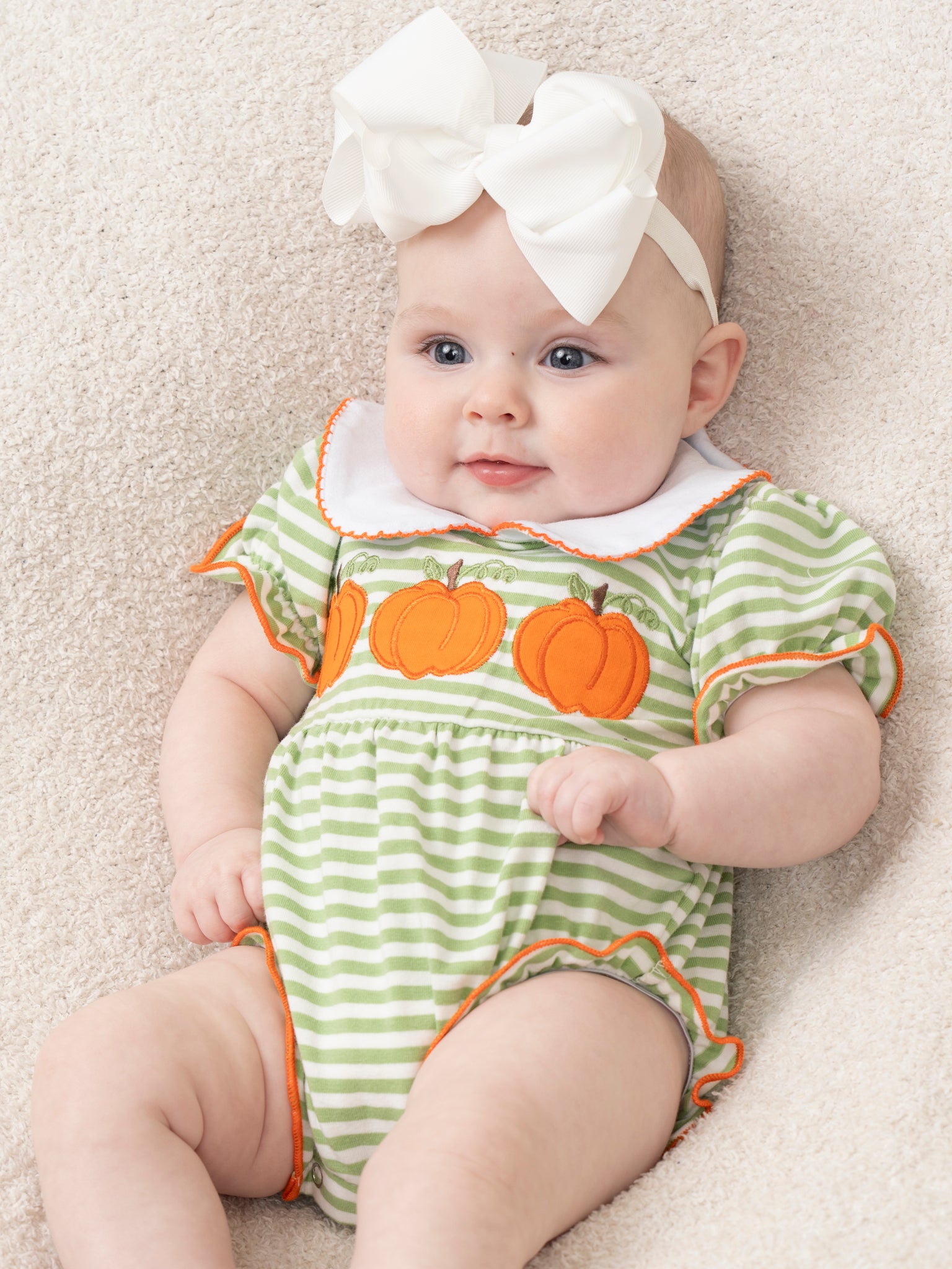 Green Stripe Embroidered Pumpkin Romper