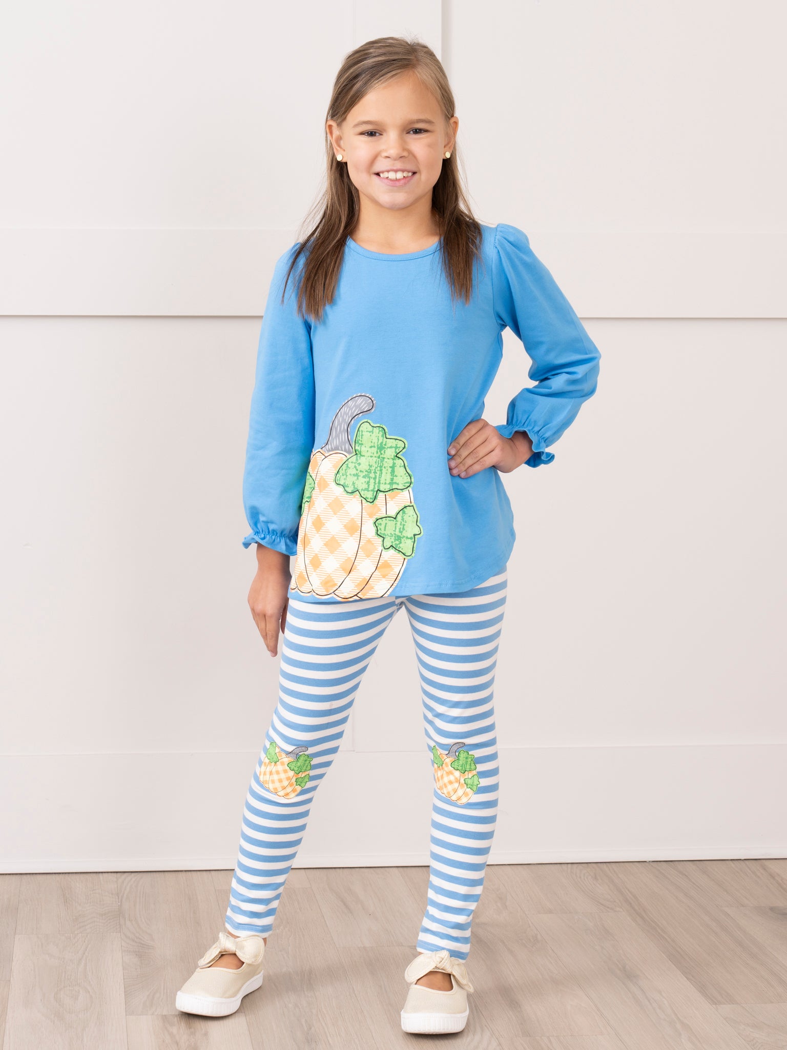 Cobalt Striped Gingham Pumpkin Outfit