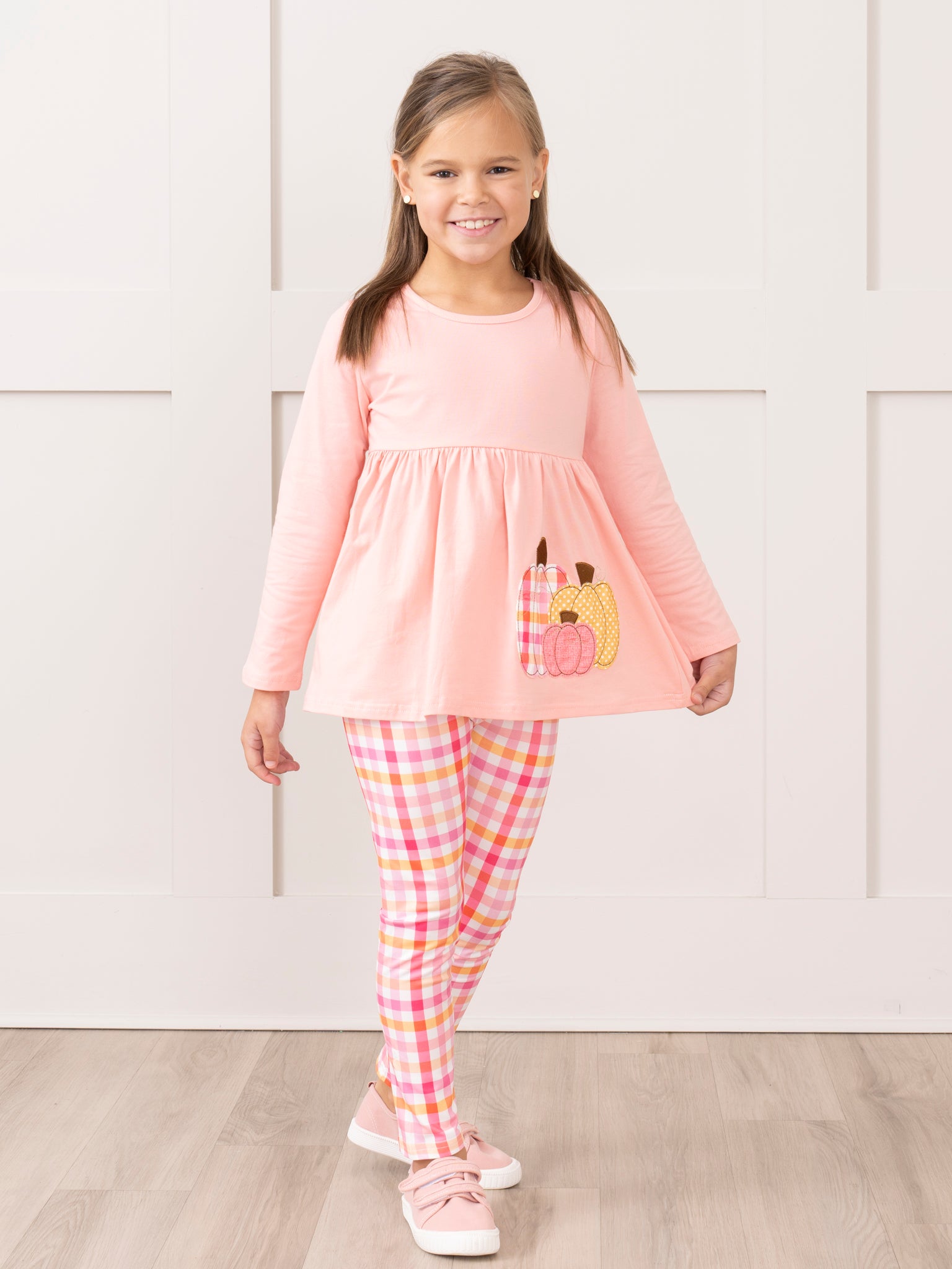 Salmon Pumpkin Plaid Swing Outfit