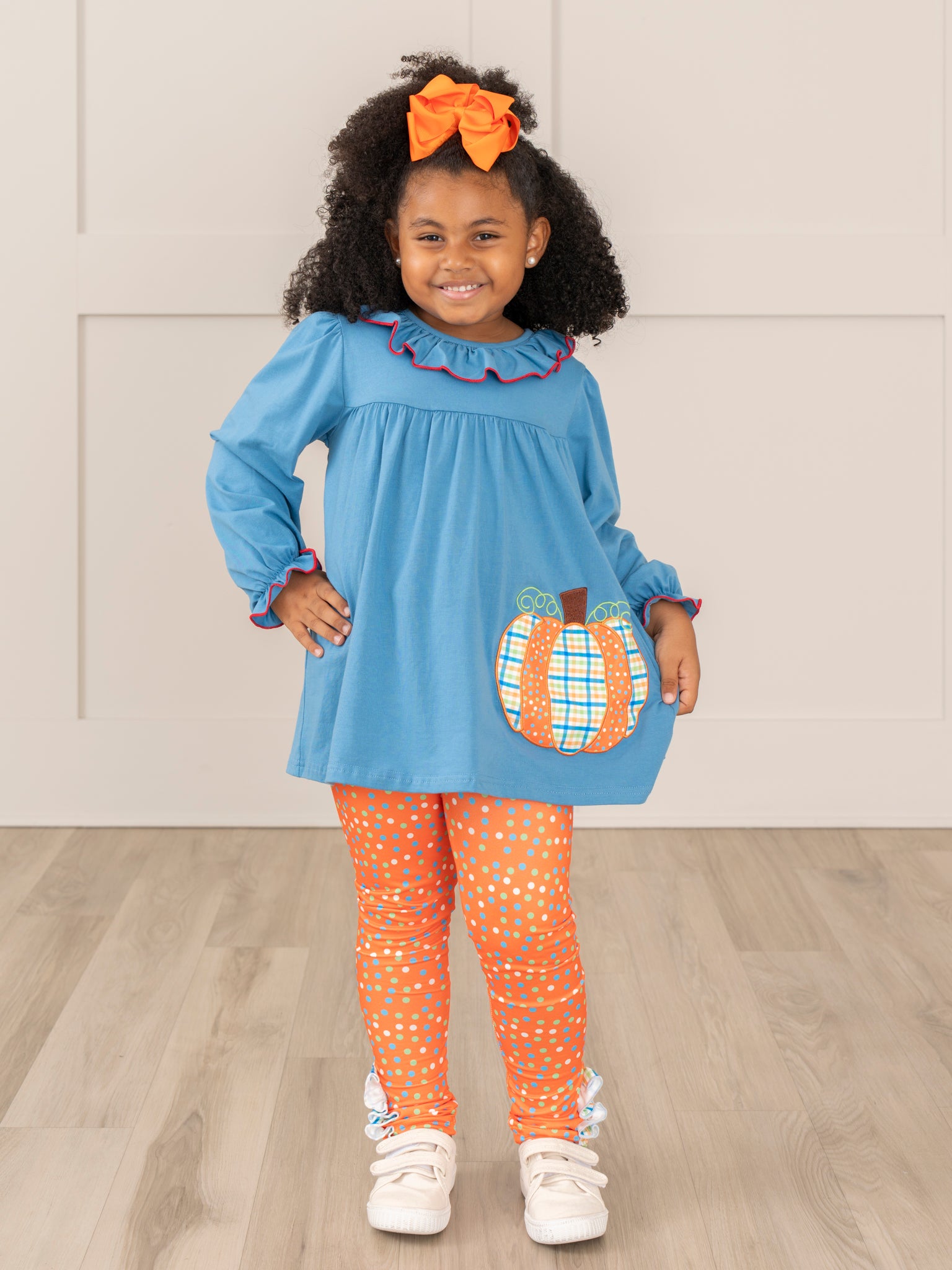 Blue and Orange Dot Pumpkin Ruffle Outfit