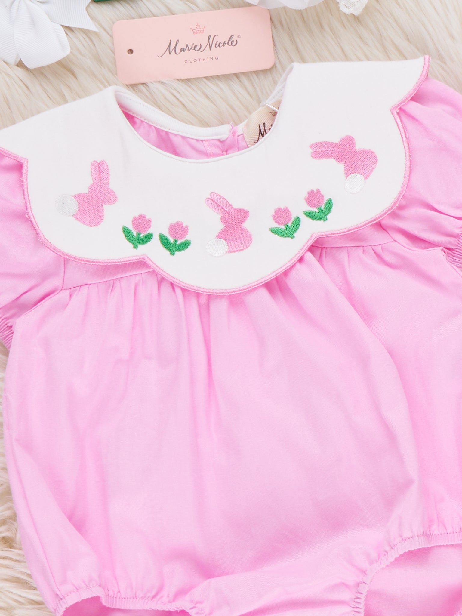 Blooming Bunny Embroidered 100% Cotton Bubble Romper