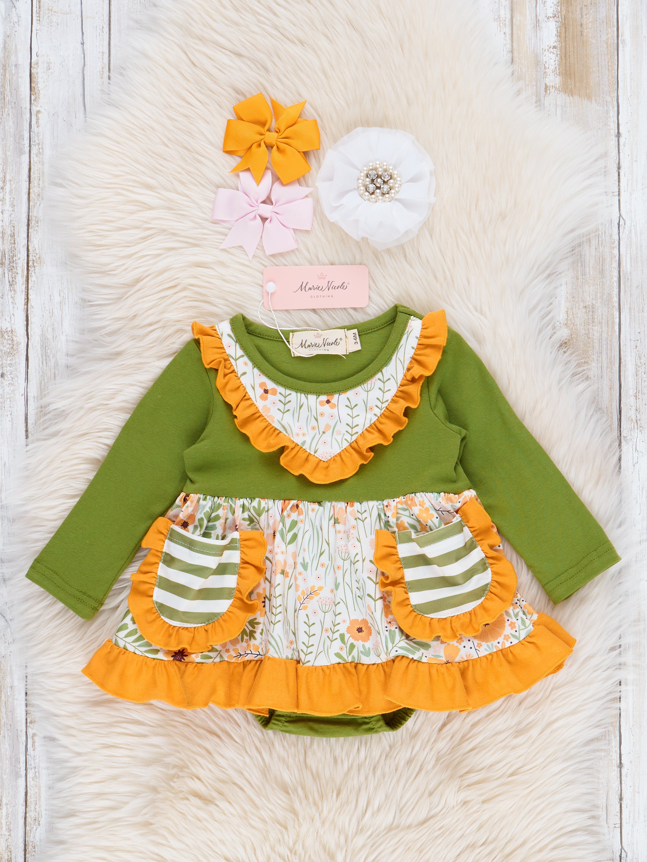 Pocket Flara Peplum Ruffle Bubble - Sunflower