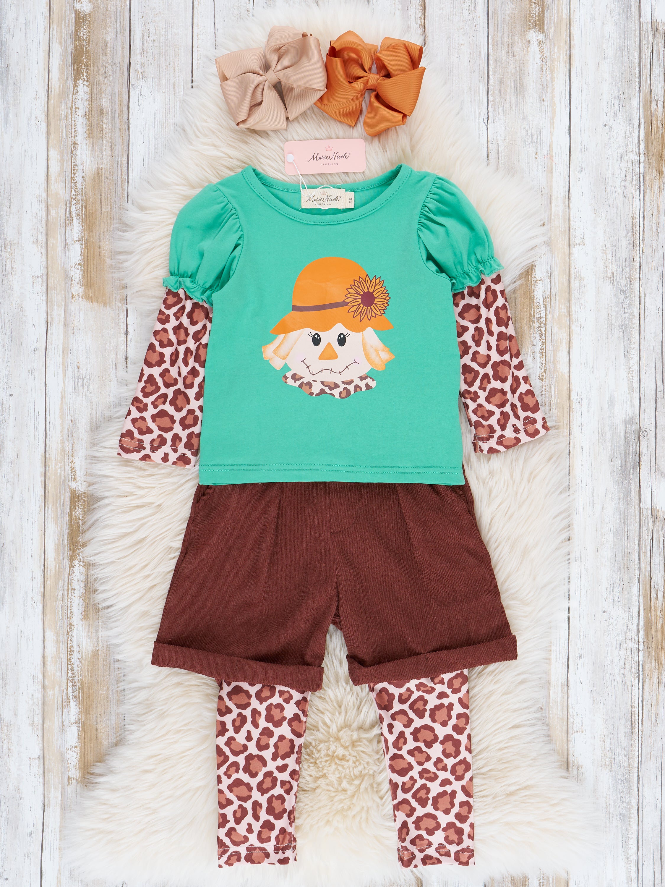Green & Leopard Scarecrow Corduroy 3 Piece Set