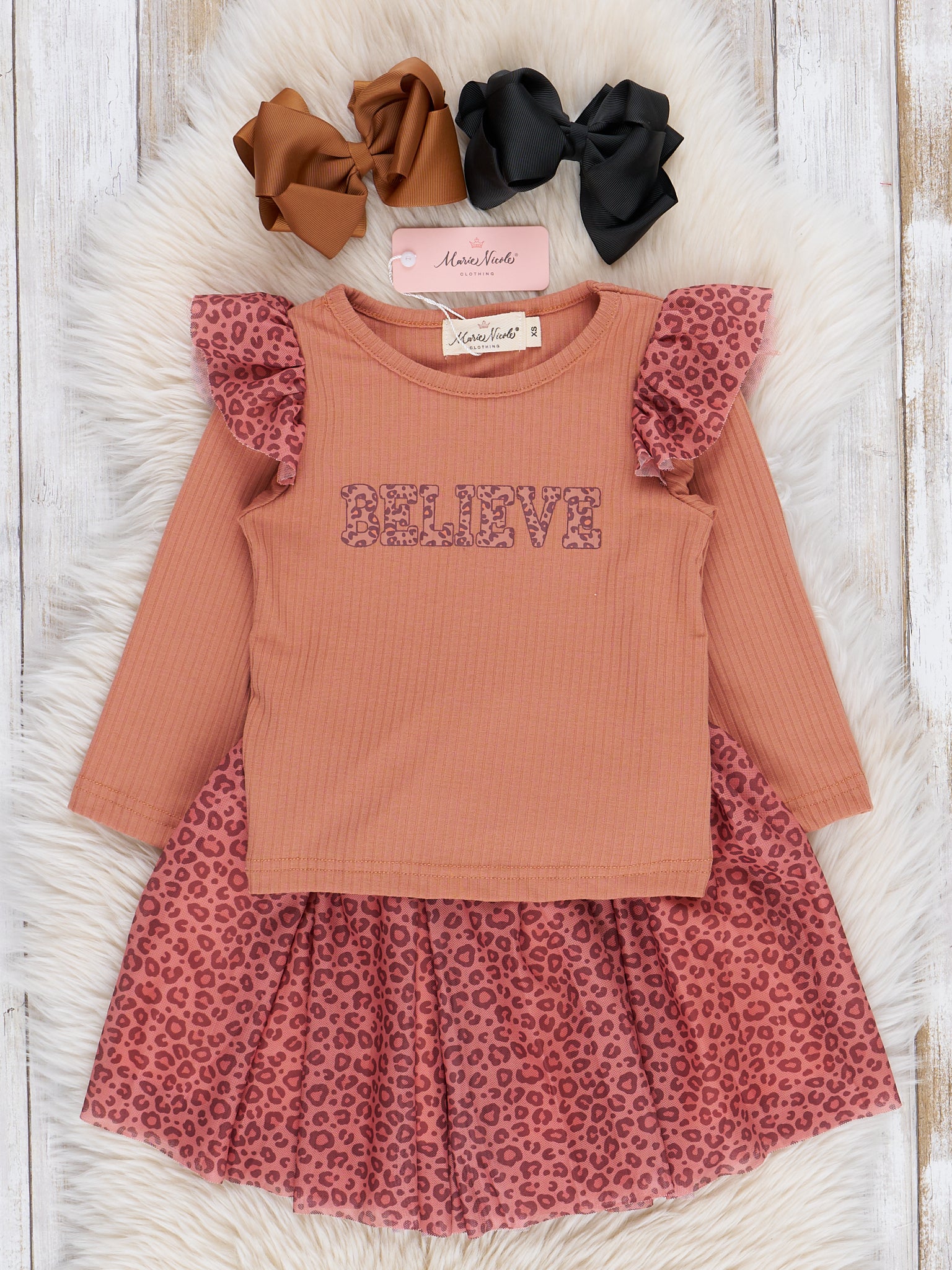 Peach Leopard Believe Tulle Outfit w/ Skirt