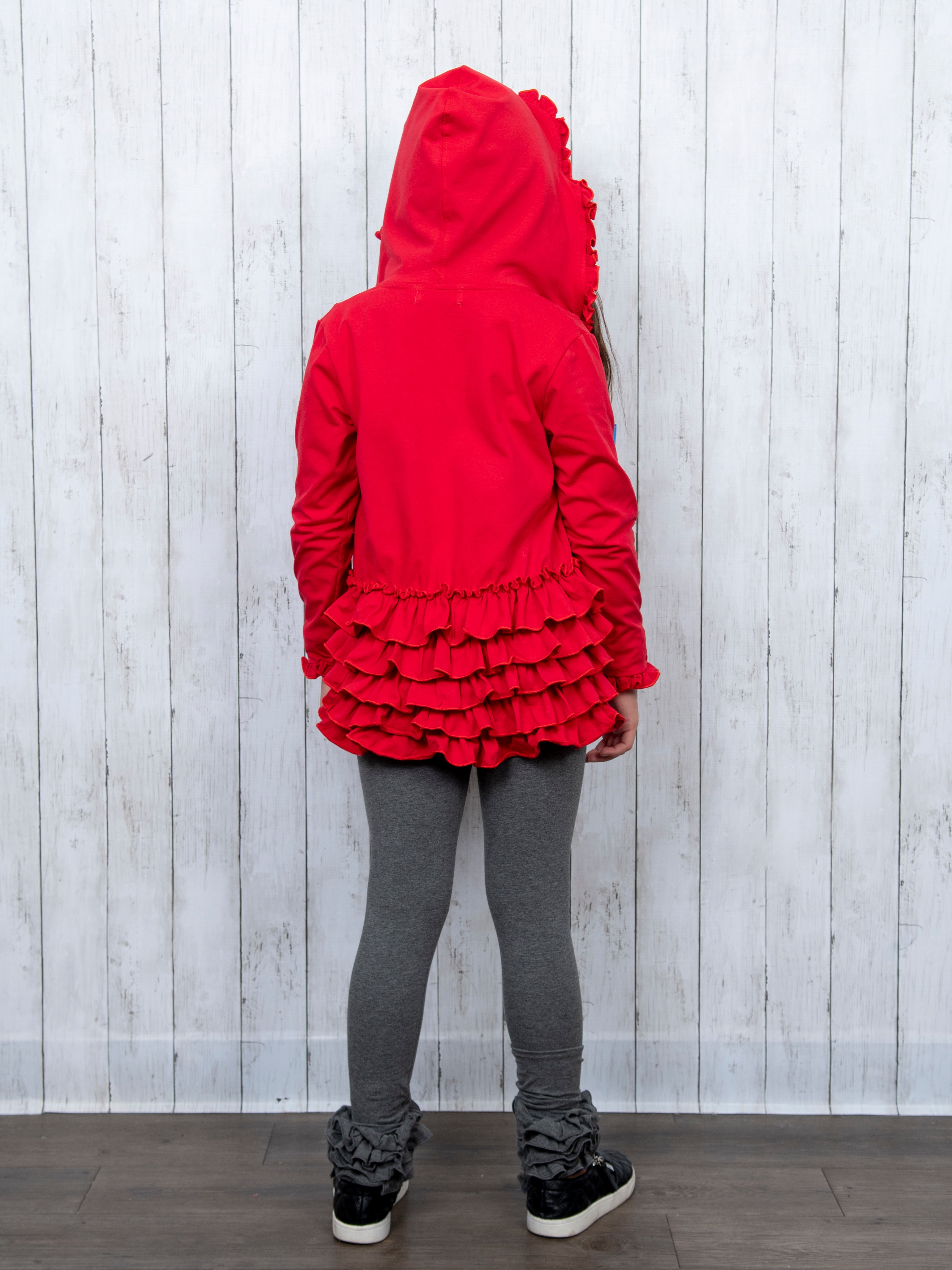 Cotton Ruffle Hooded Cardigan- Black & Red
