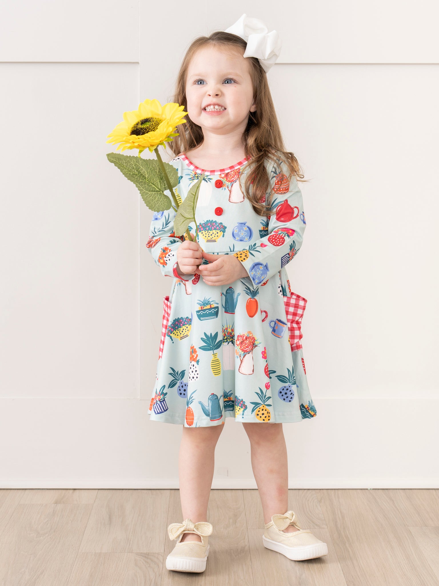 Get your little gardener ready to play in our Teal Gardening Gingham Pocket Dress! With a trendy teal bodice and playful red gingham pockets, this dress features a charming gardening motif and adorable ruffle accents. The sister set is fit for playtime in the sun!