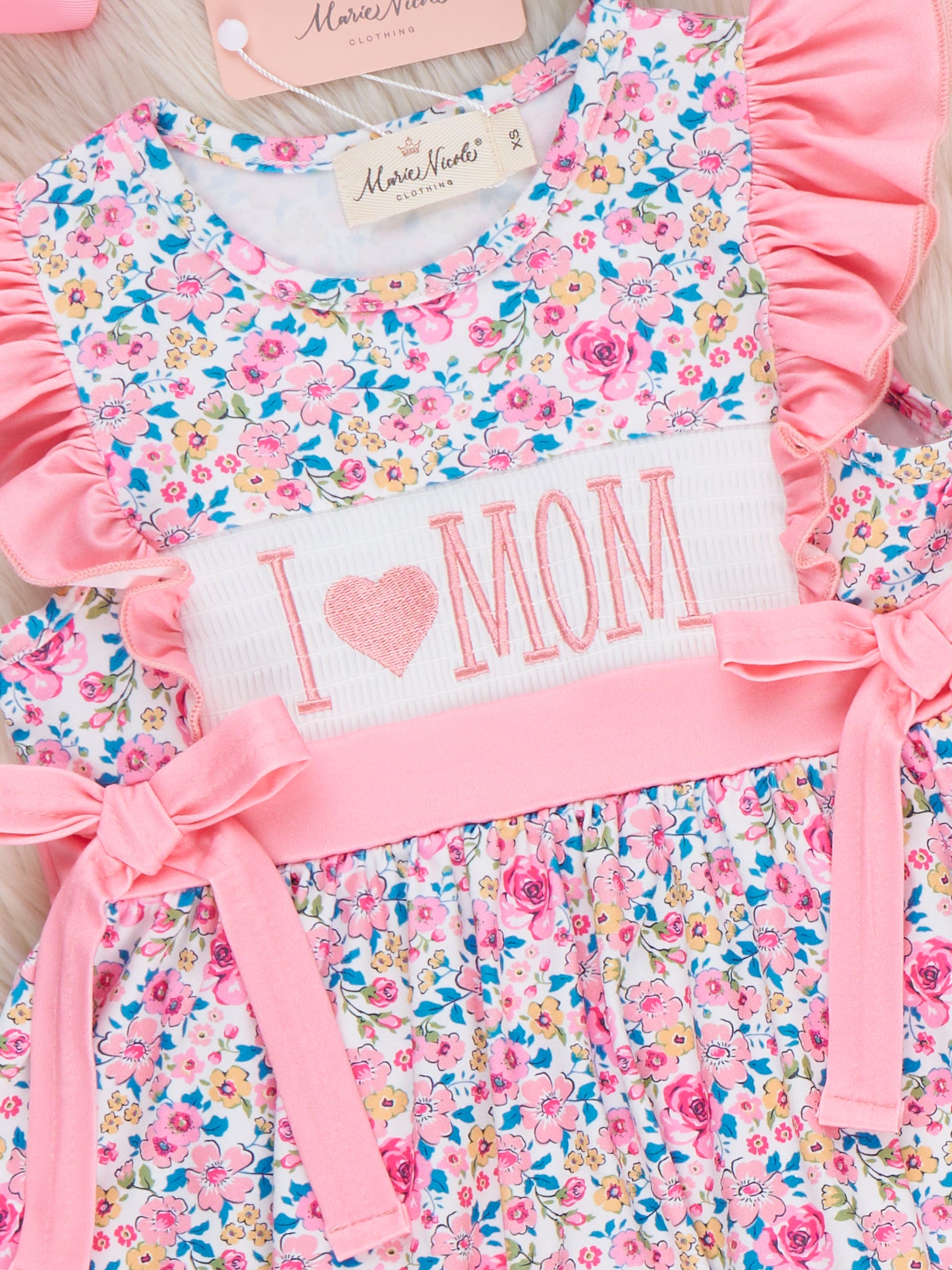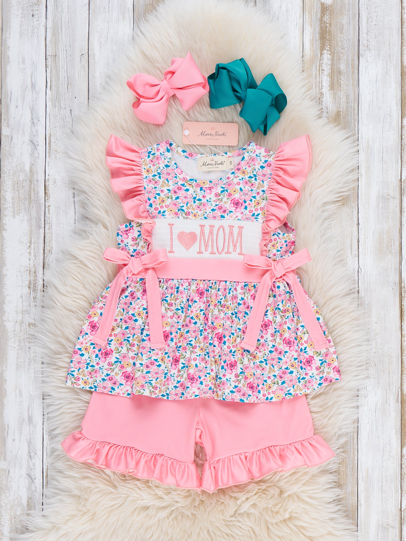Coral Floral "I Love Mom" Smocked Outfit