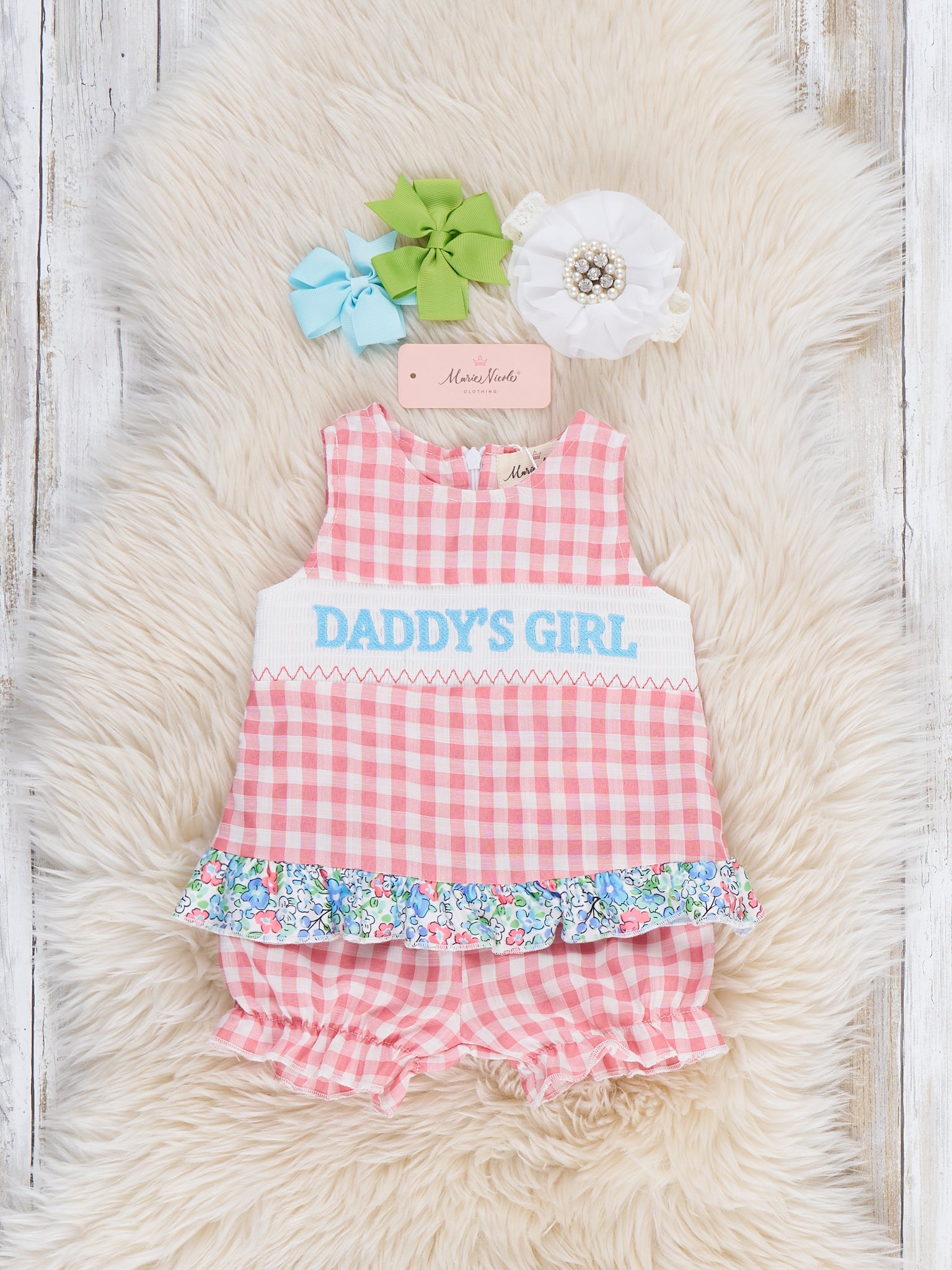 Sweet Gingham Daddy's Girl Smocked Bloomers Outfit