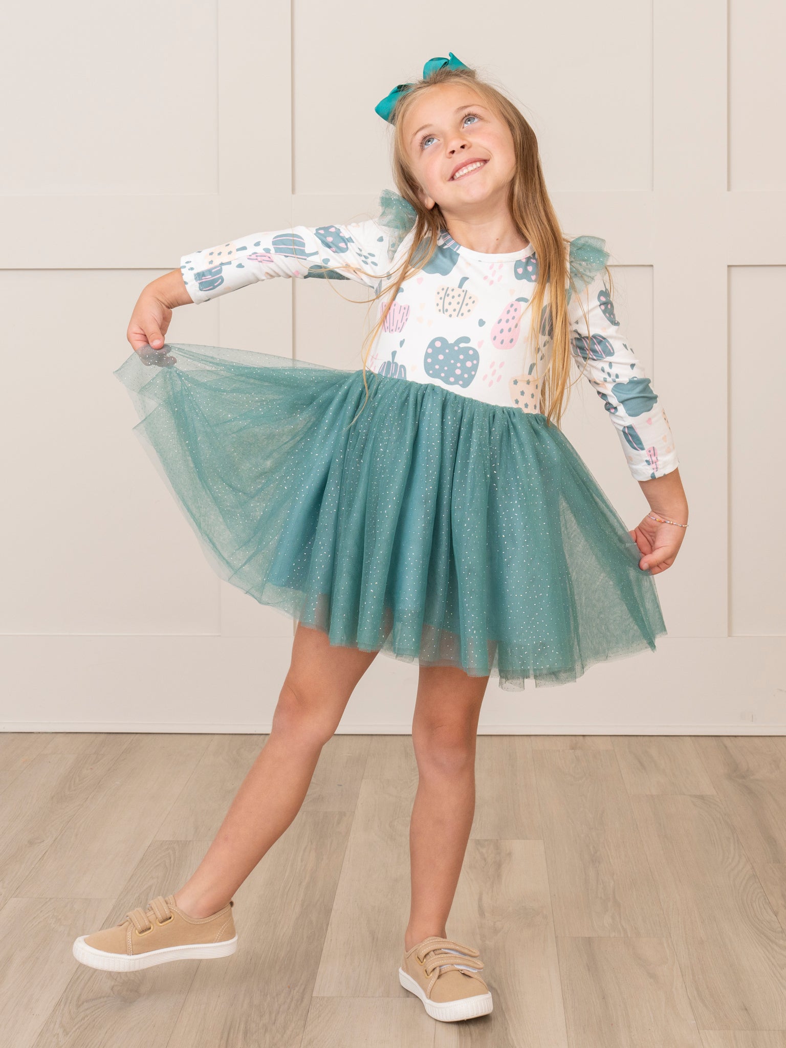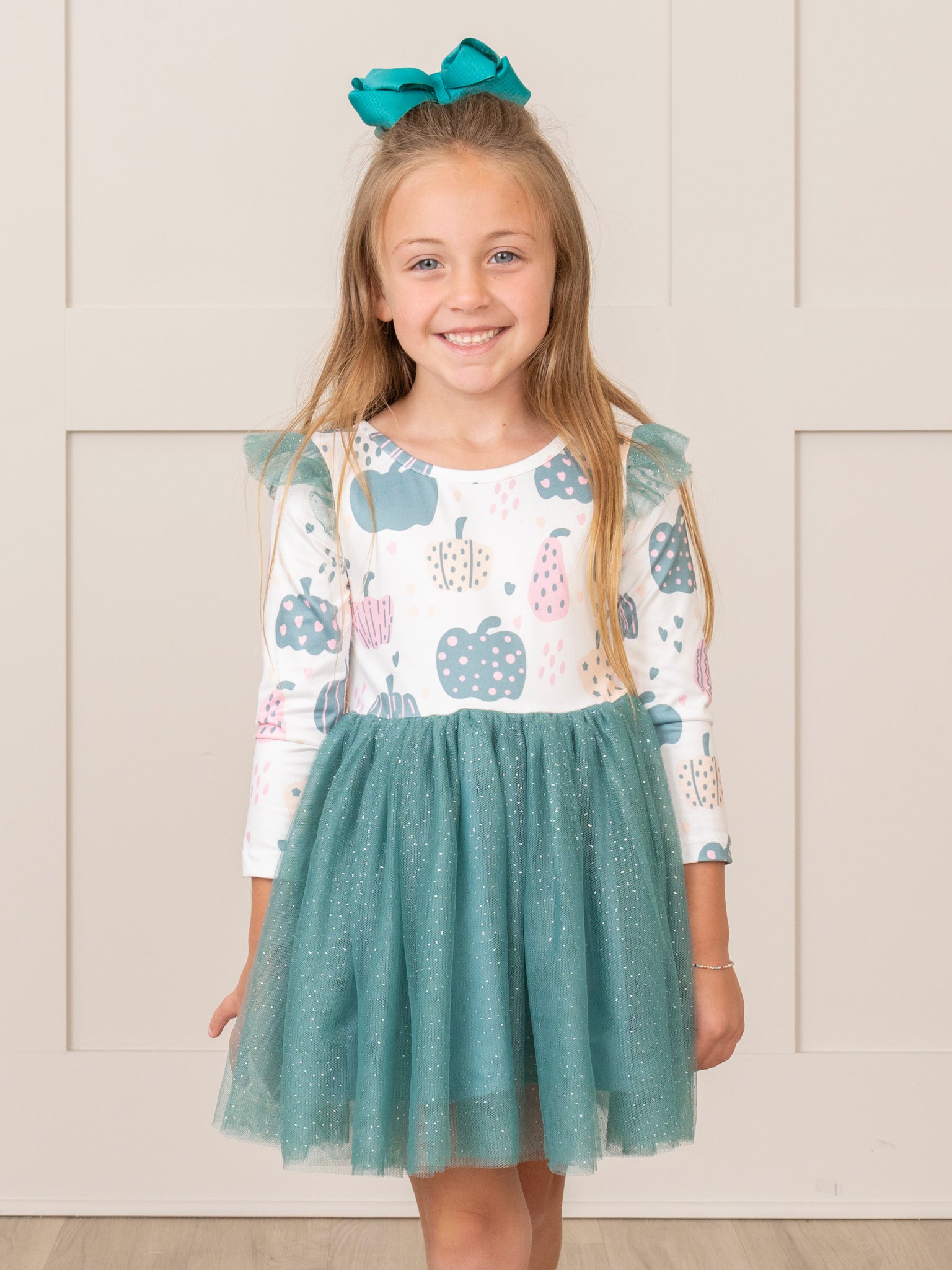 Deep Teal Doodle Pumpkins Tulle Dress
