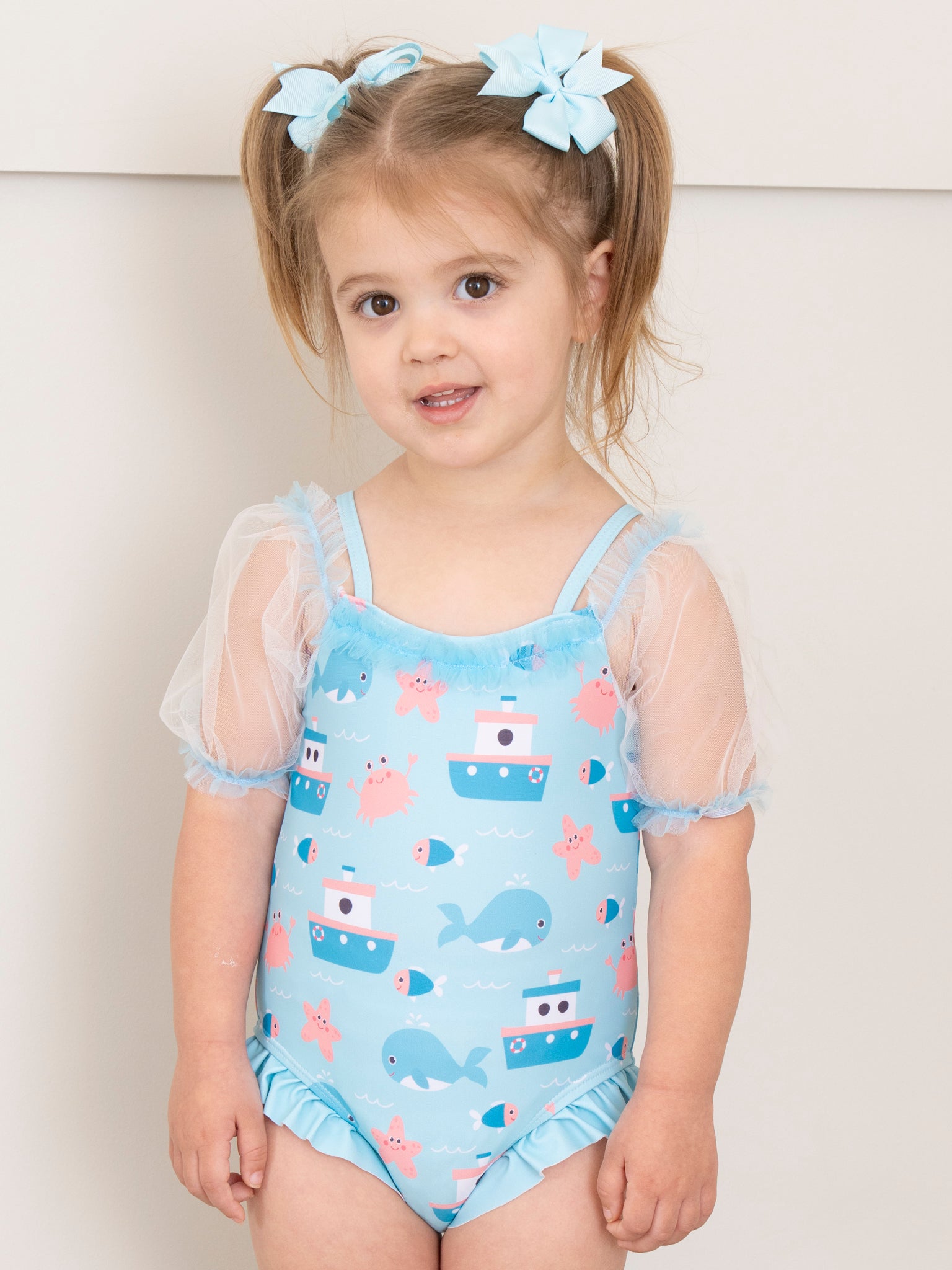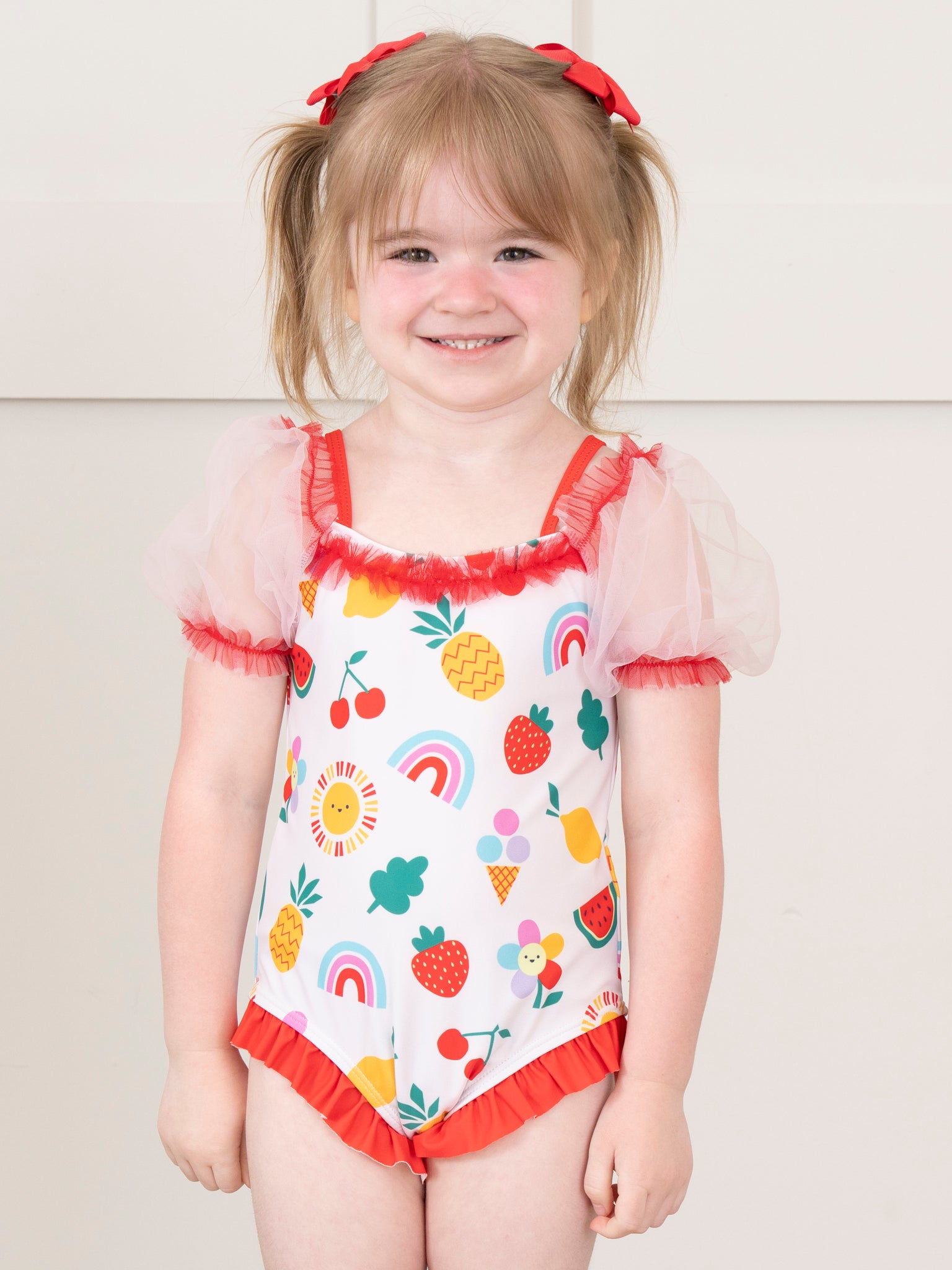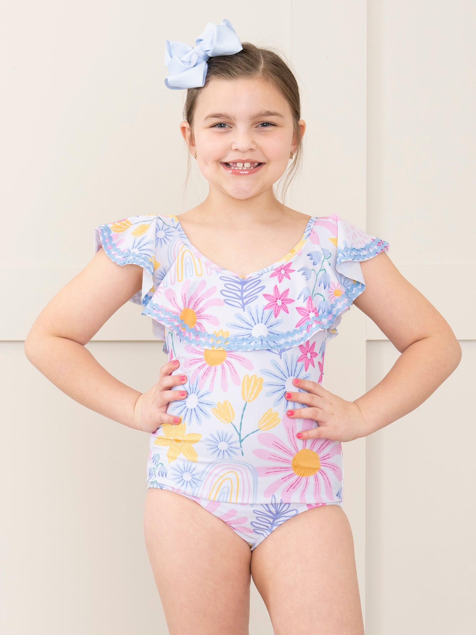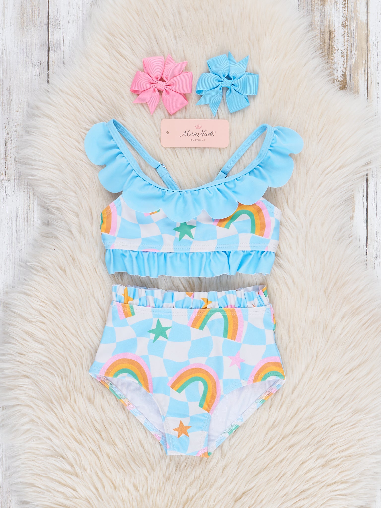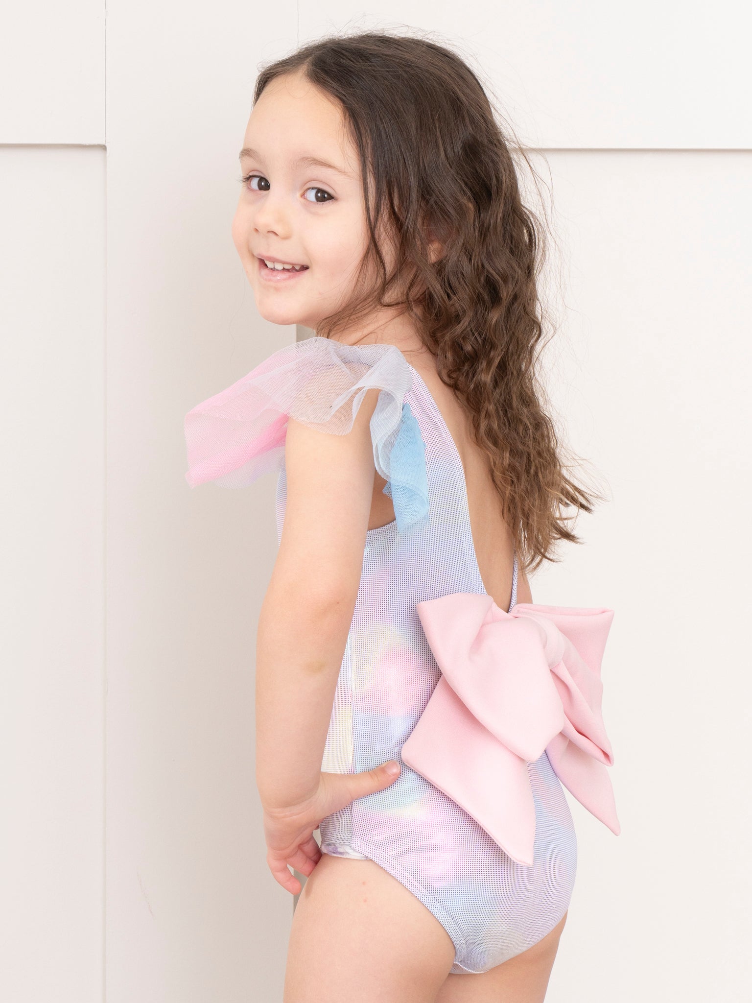 Rainbow Holographic Tulle Ruffle Swimsuit