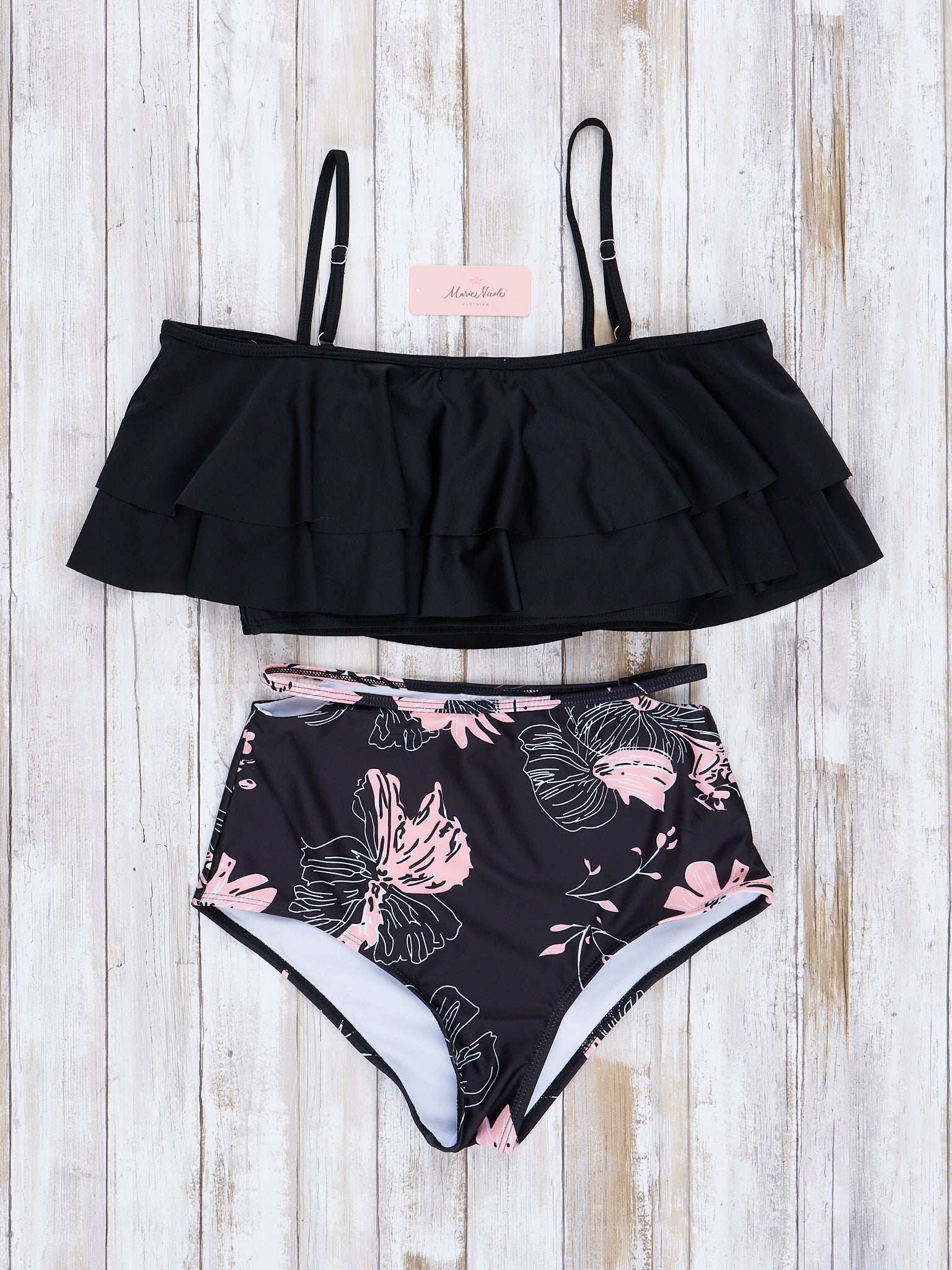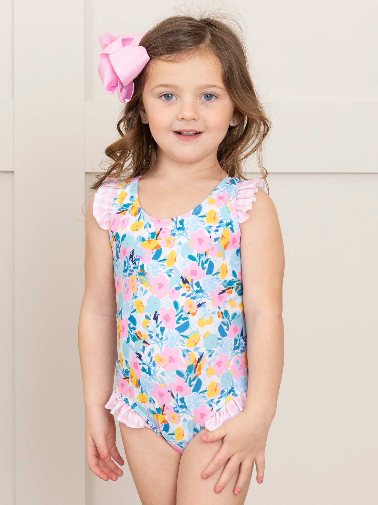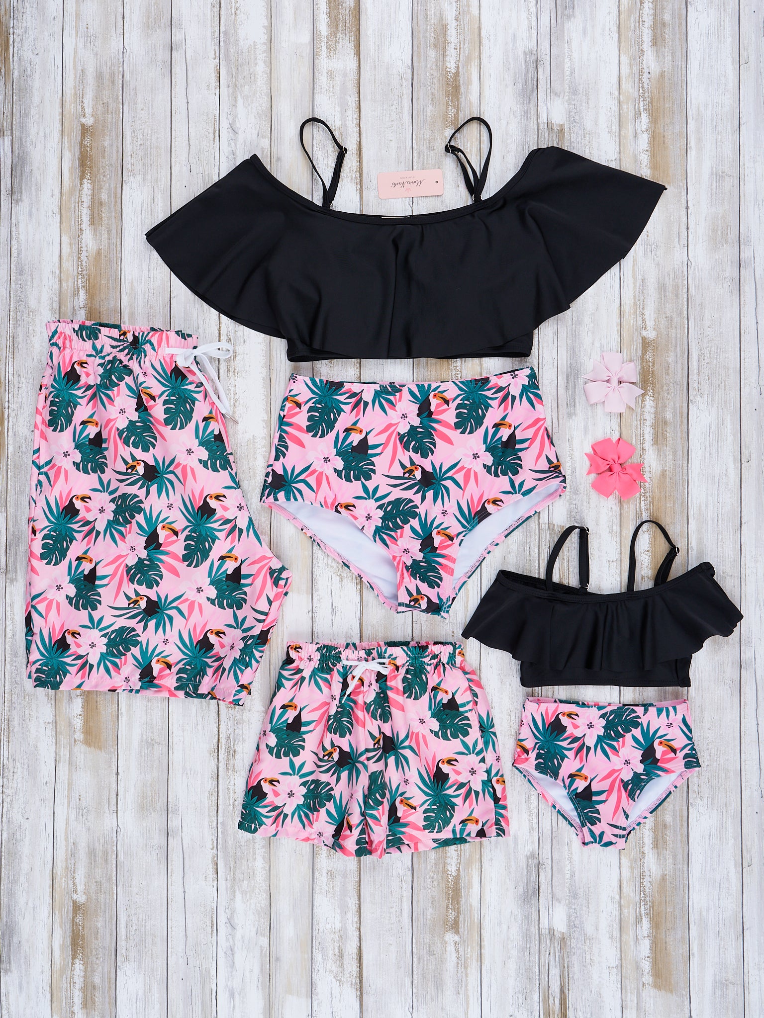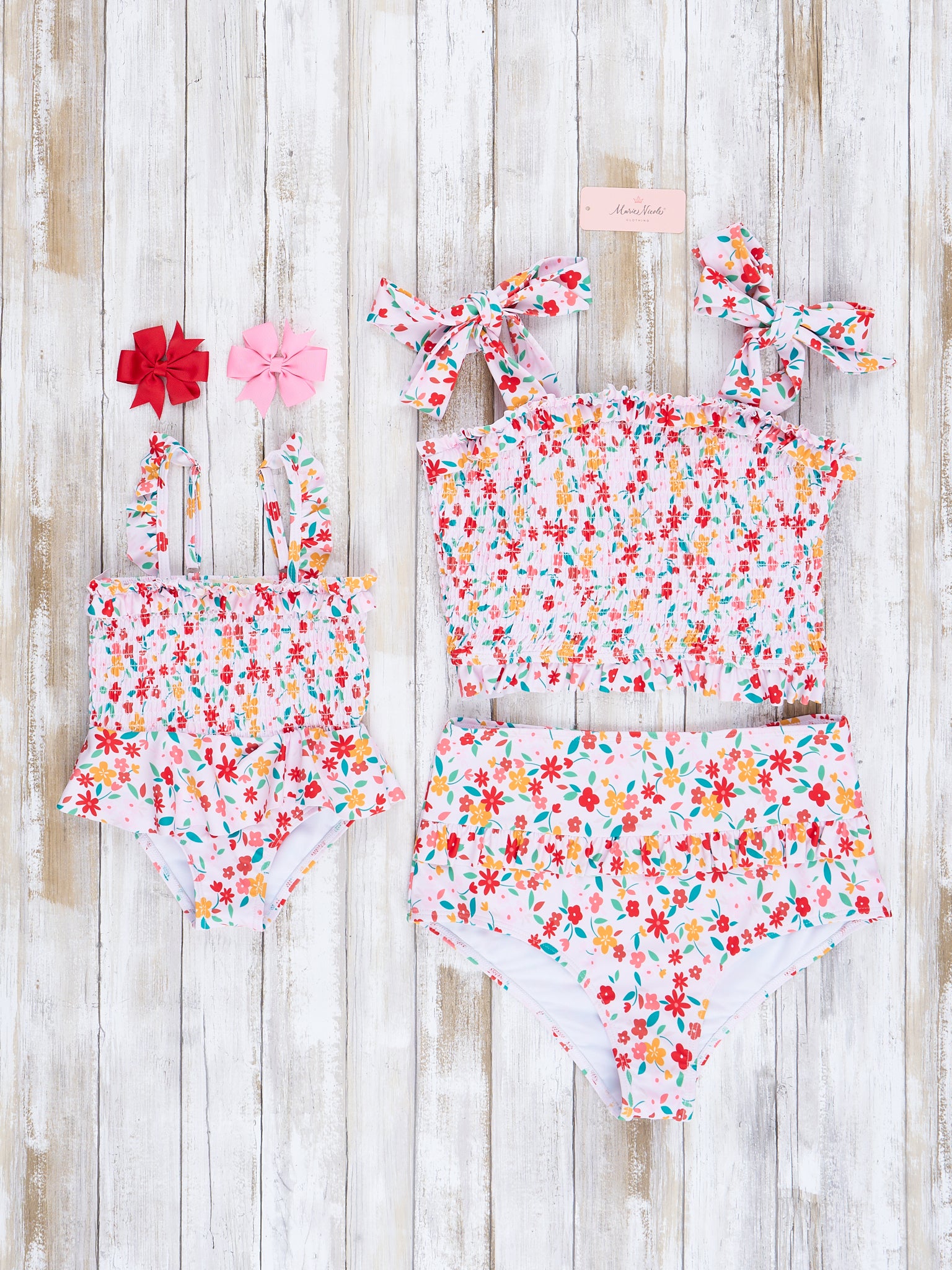 Mom & Me Pink & Turquoise Island Florals Ruffle Swimsuit