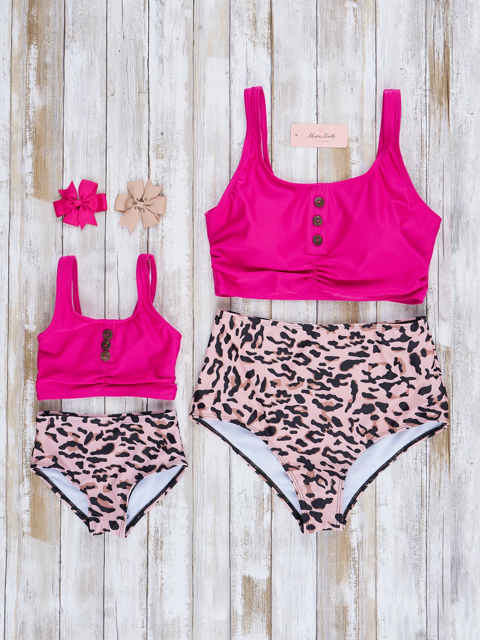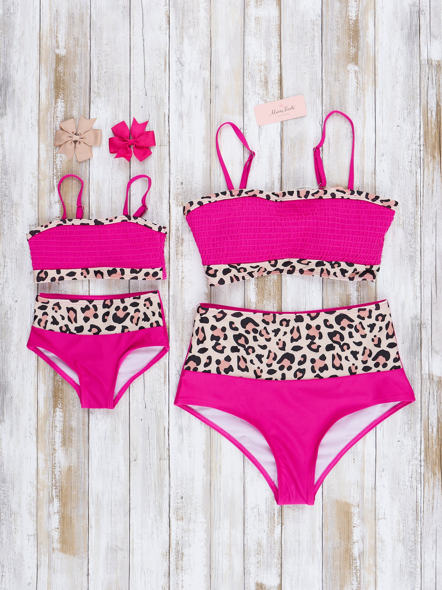 Mom & Me Fuchsia & Leopard Smocked Swimsuit