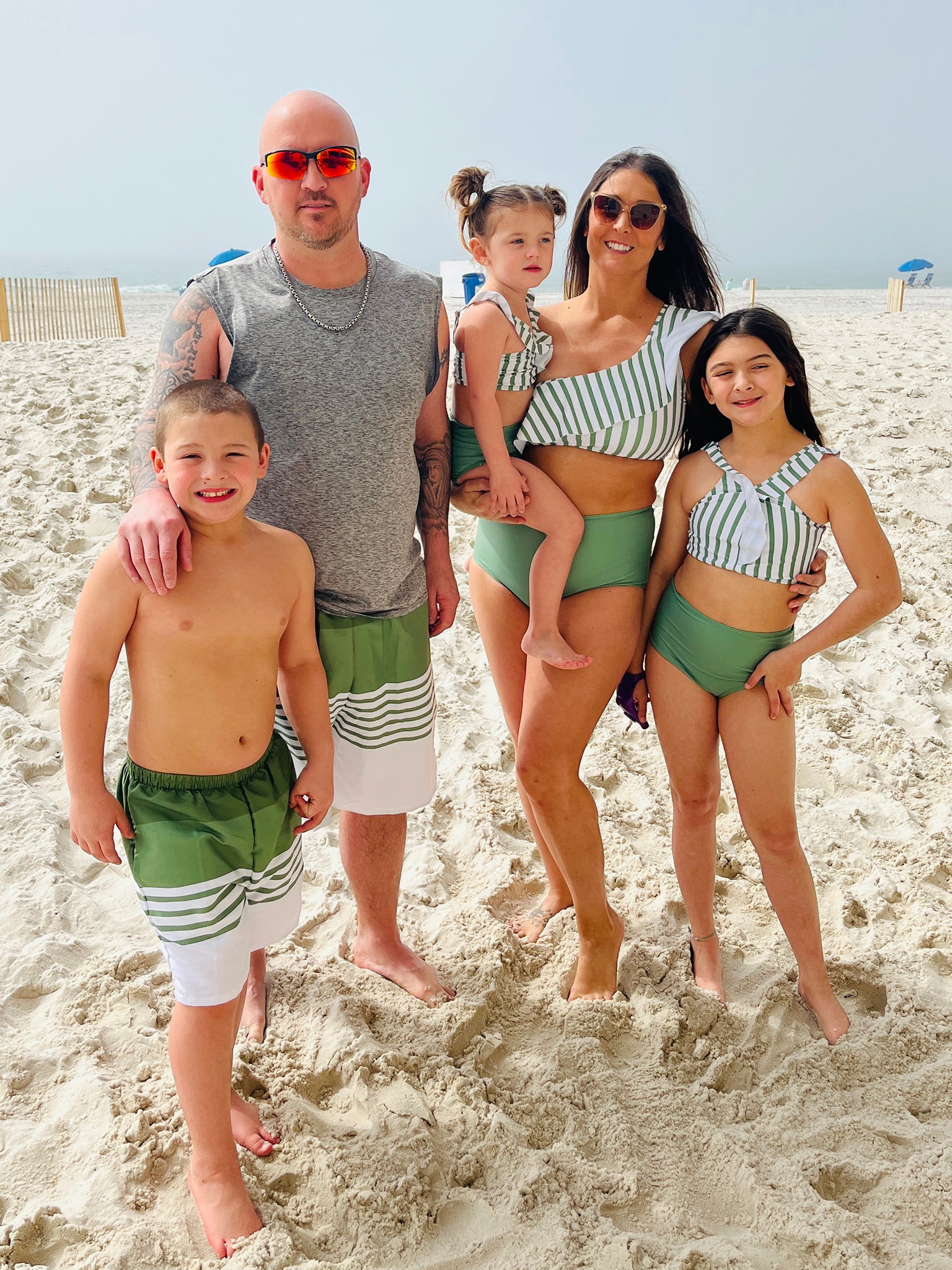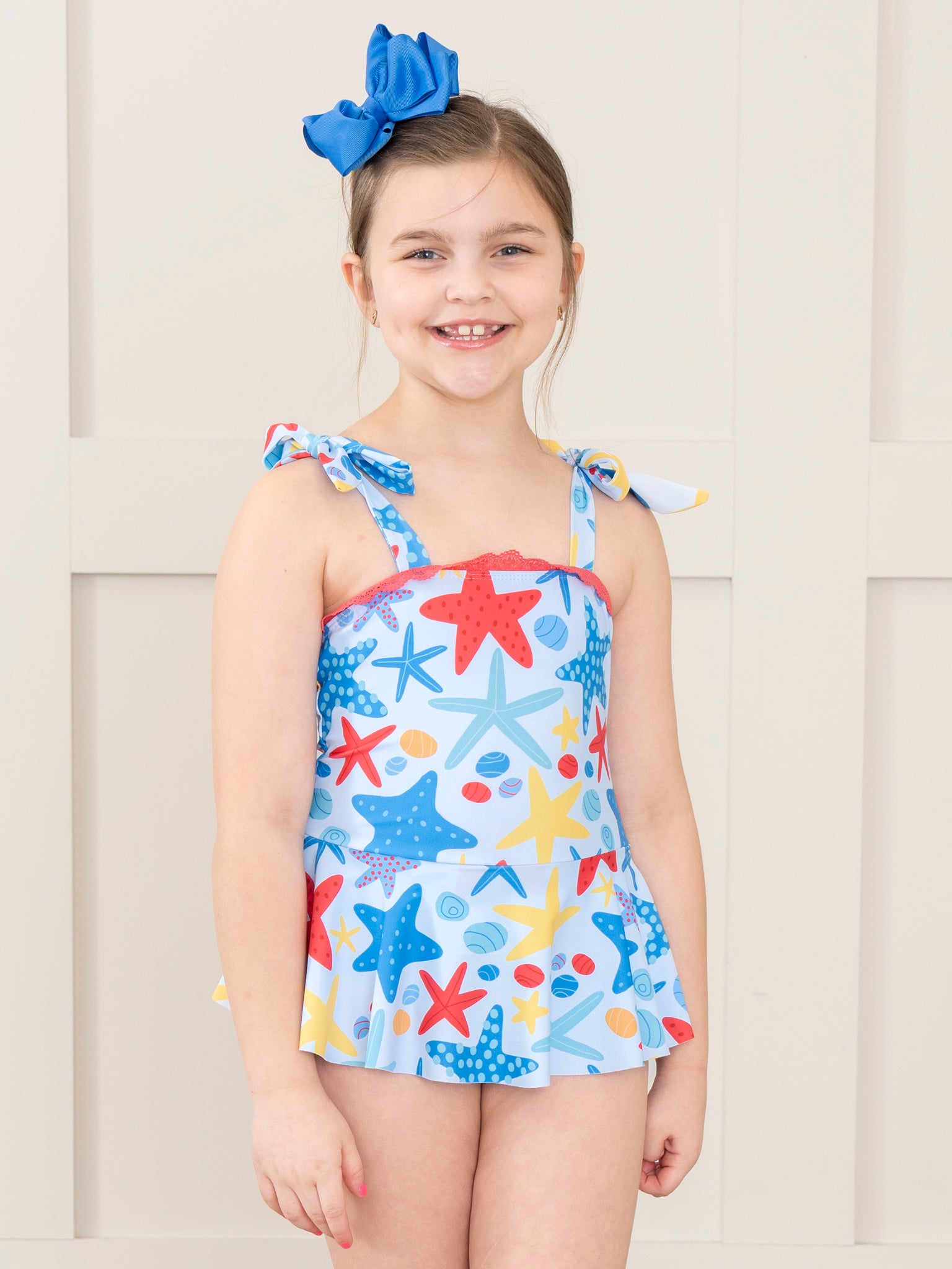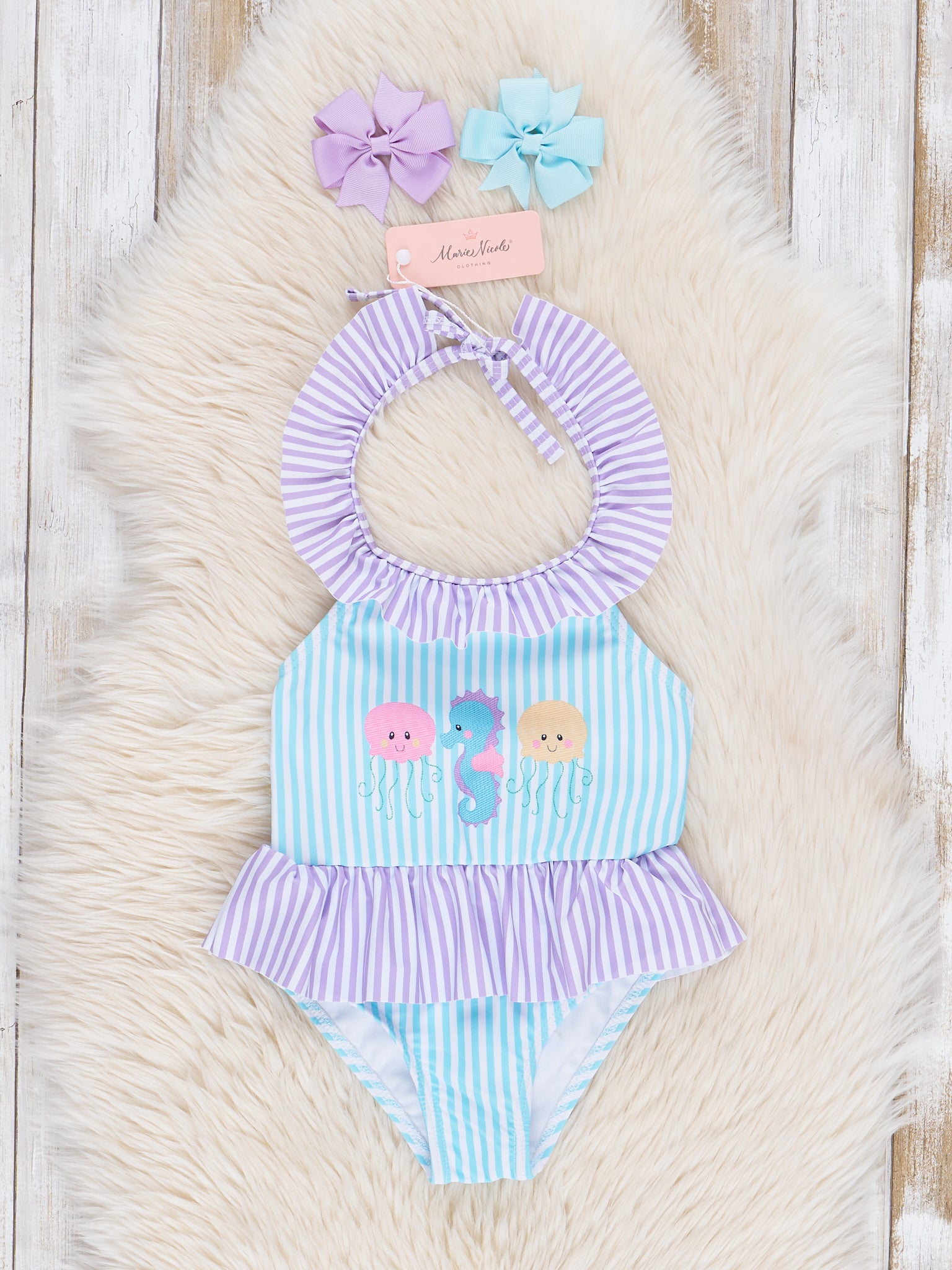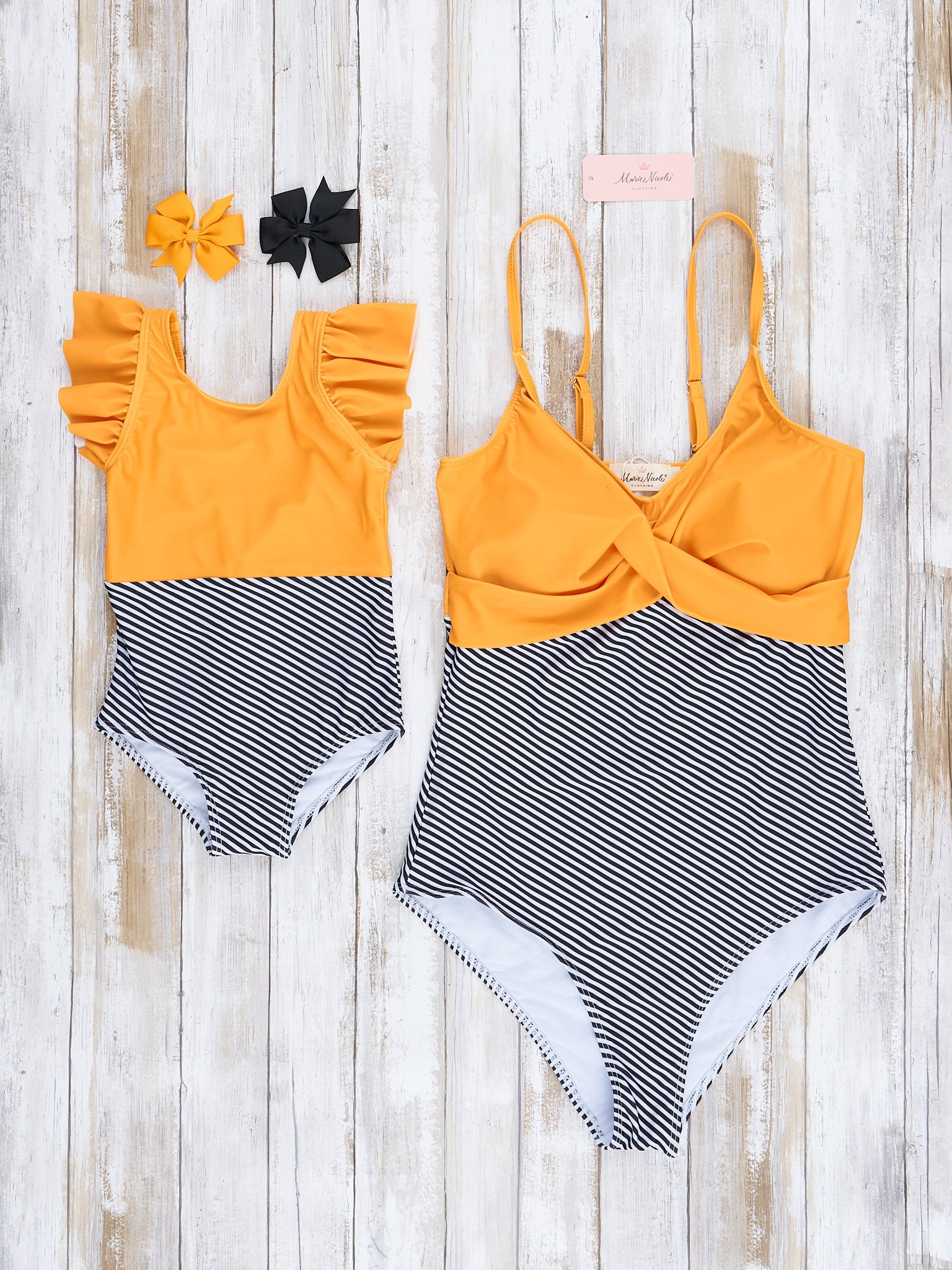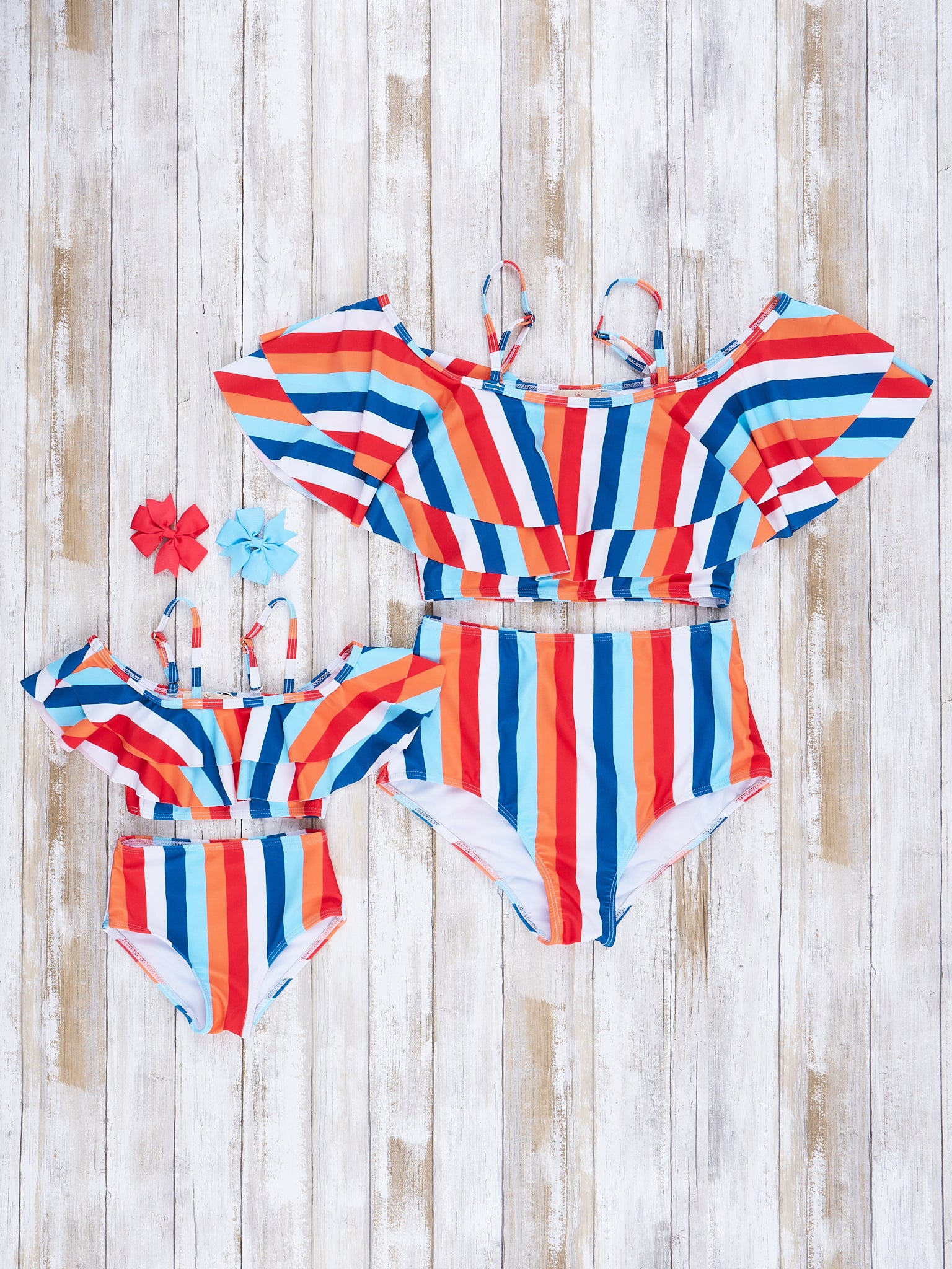 Mom & Me One Shoulder Mod Stripes Swimsuit