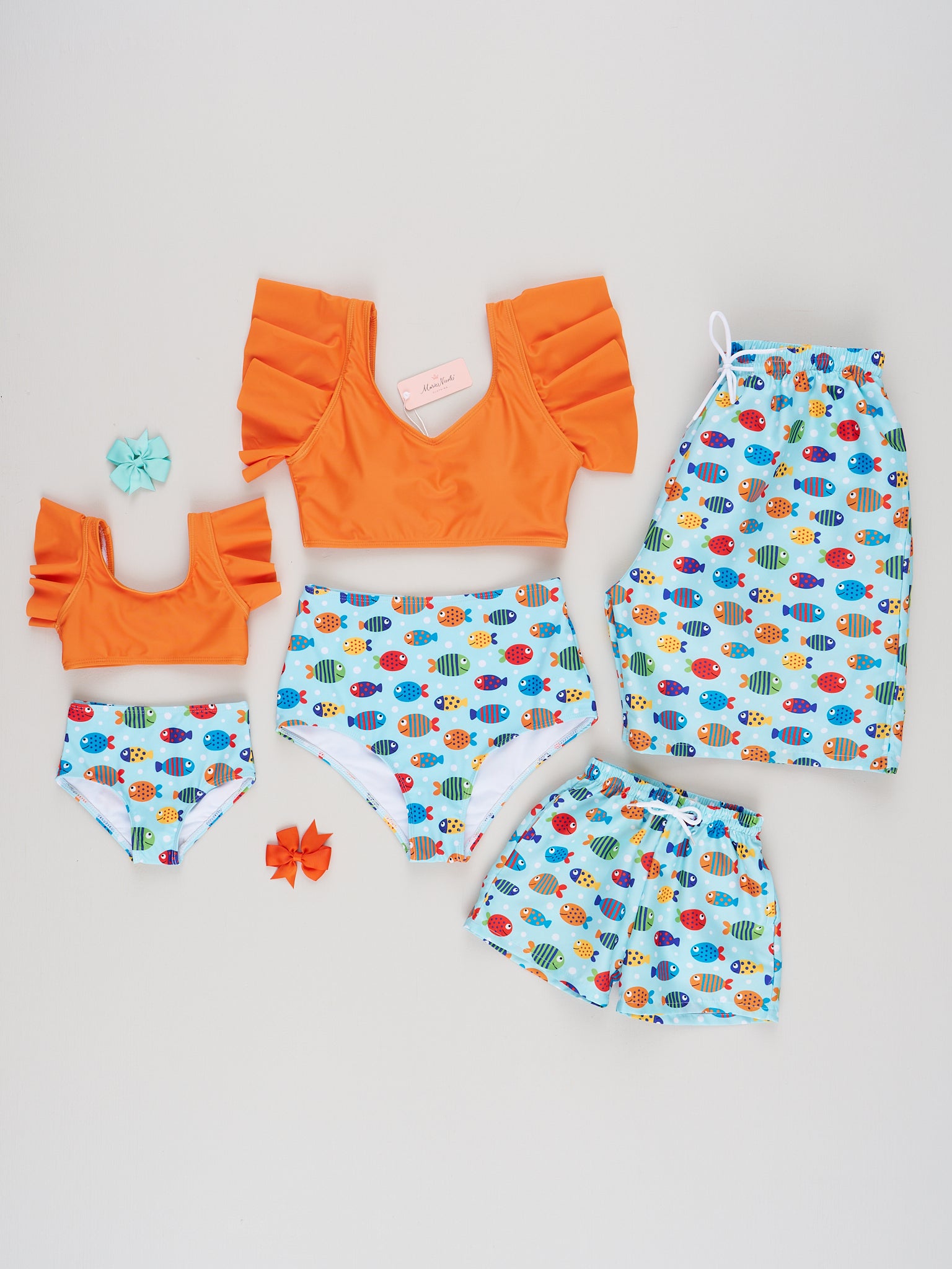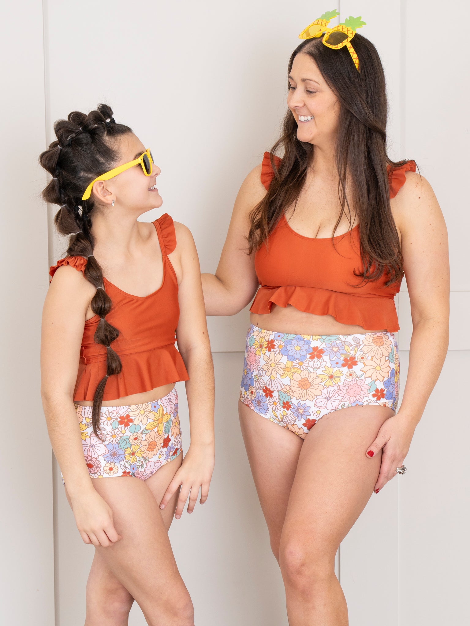 Mom & Me Orange Rose Asymmetrical Swimsuit