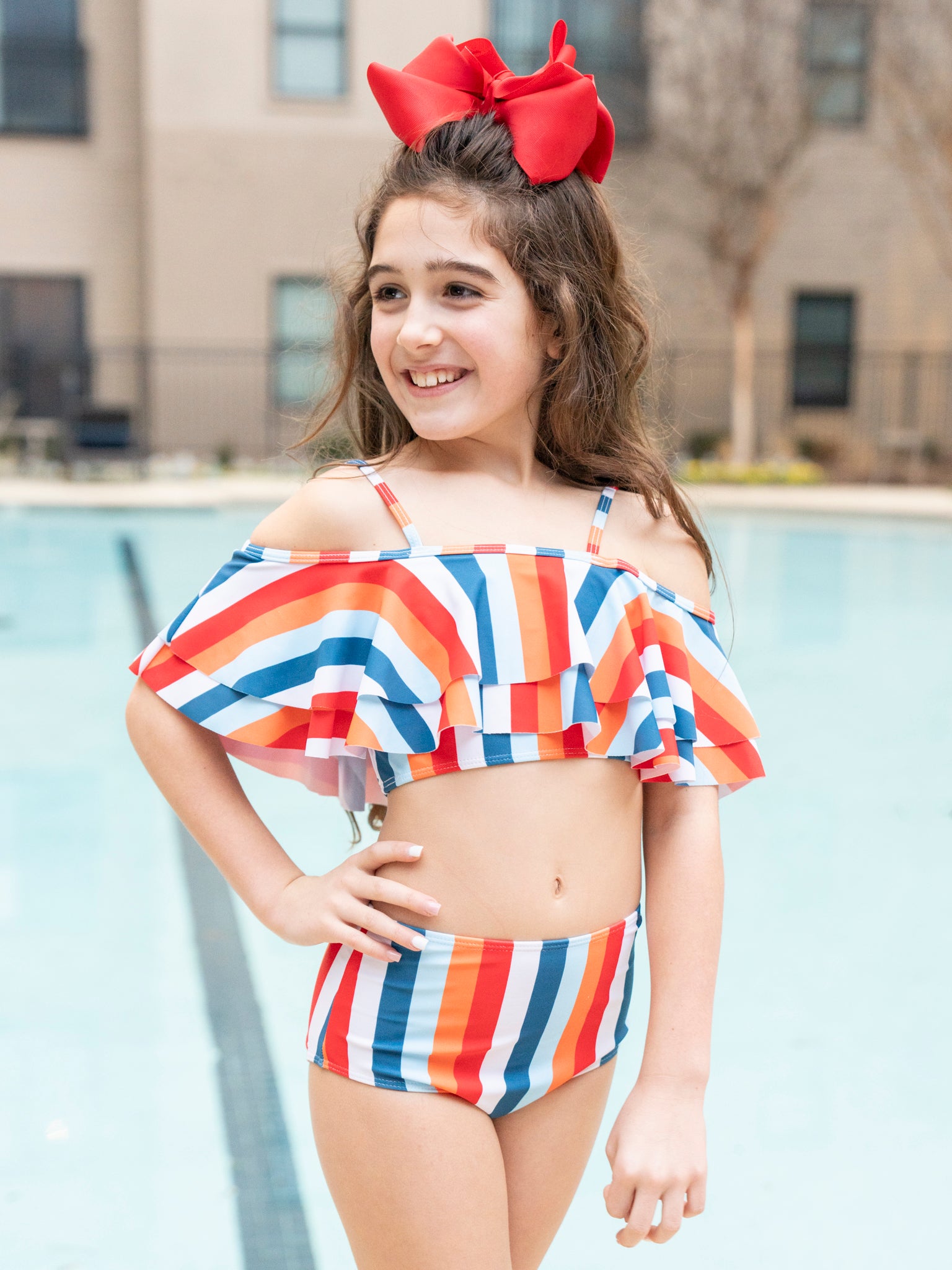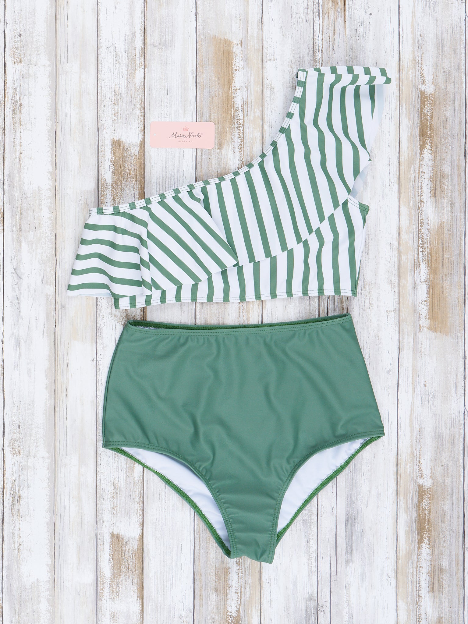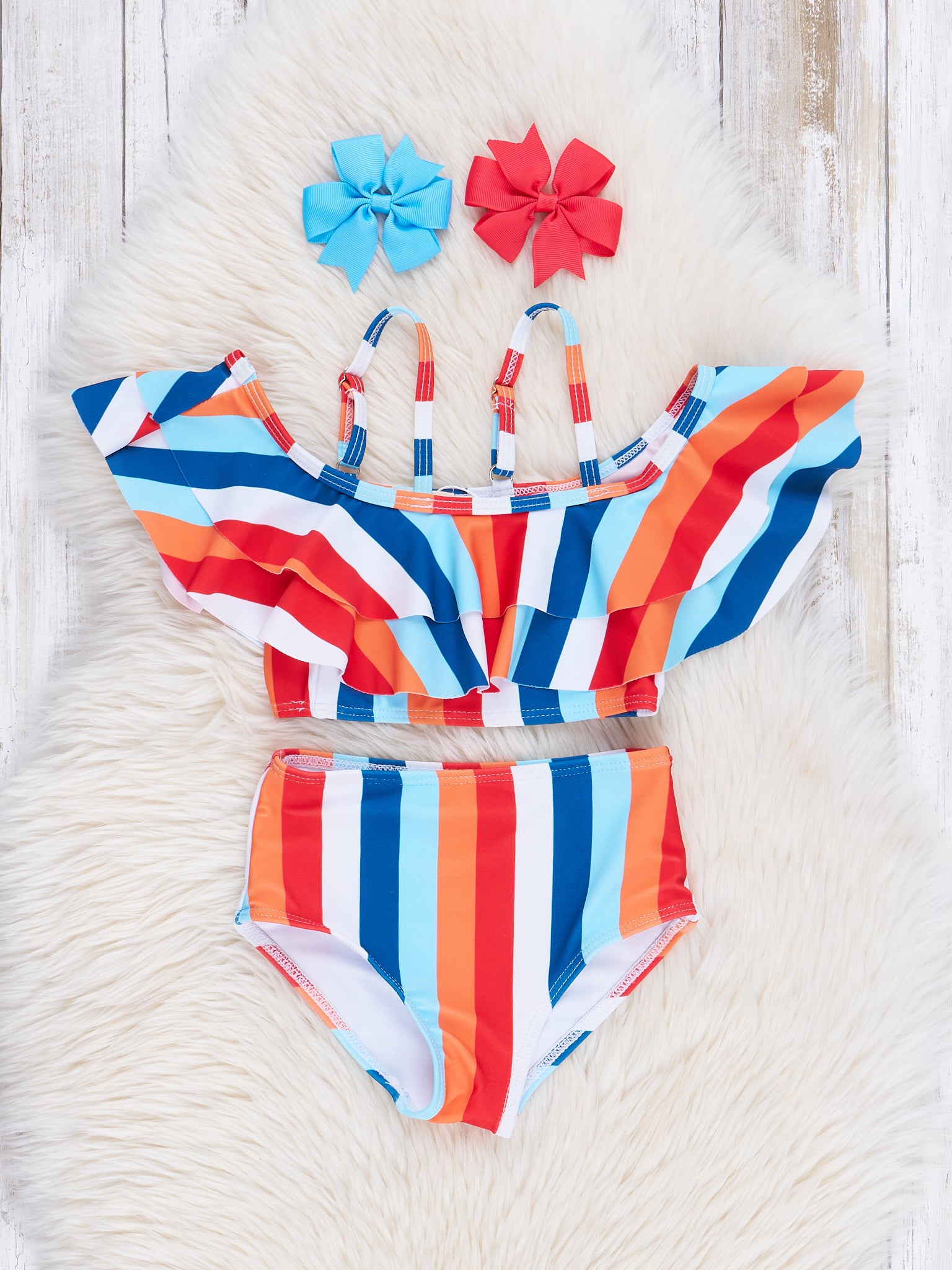 Retro Stripes Asymmetrical Ruffle Swimsuit