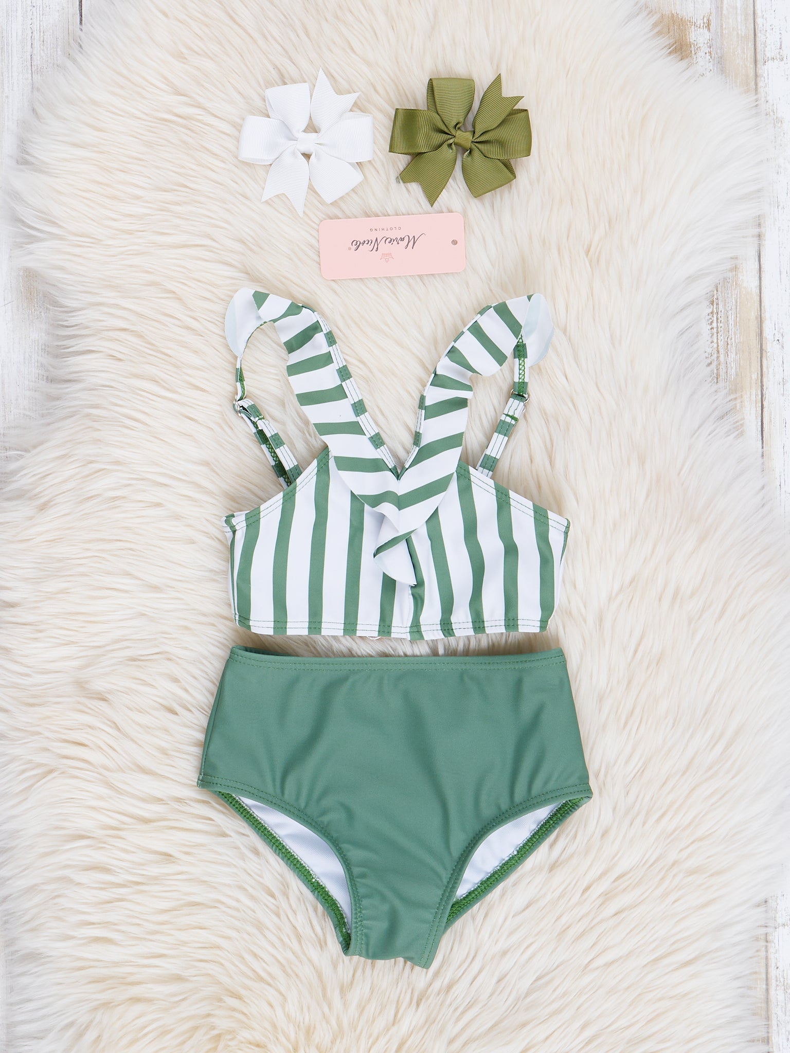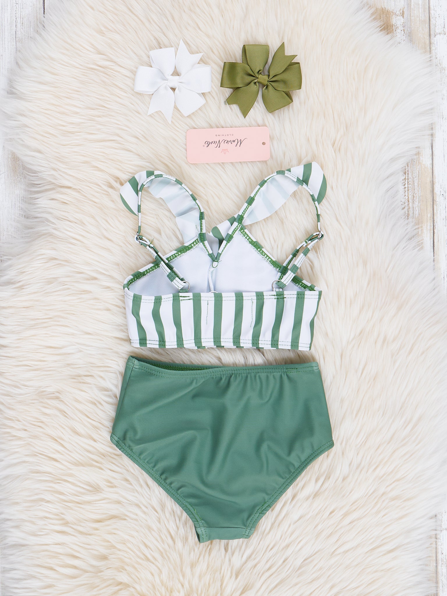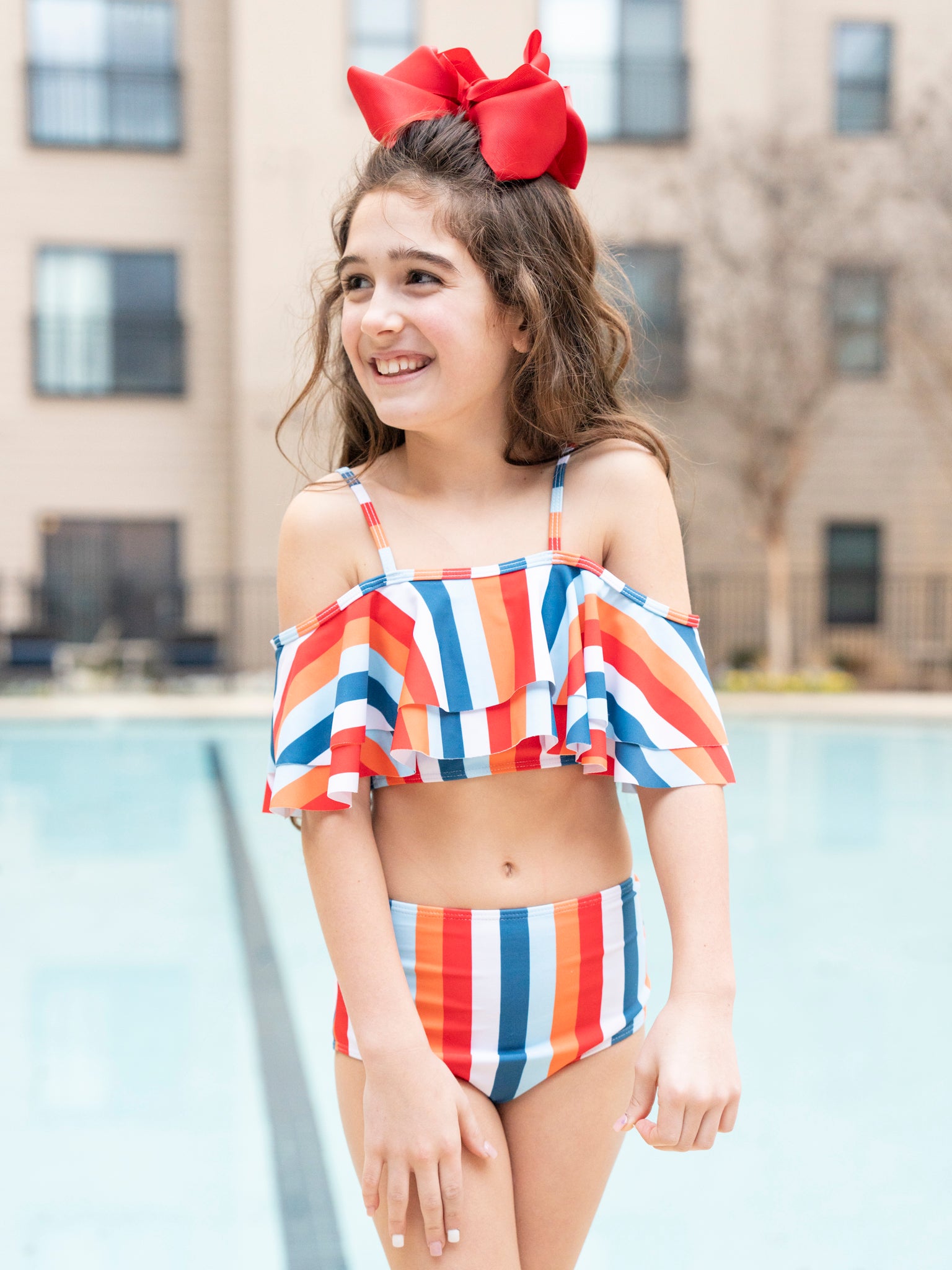 Retro Stripes Asymmetrical Ruffle Swimsuit