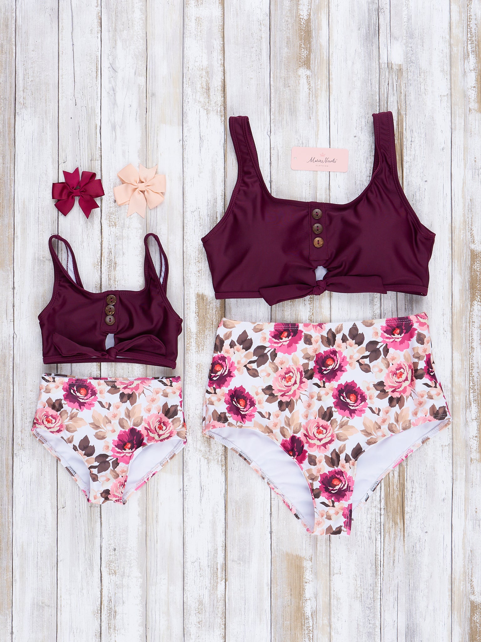 Mom & Me Mauve Rose Ruffle Swimsuit