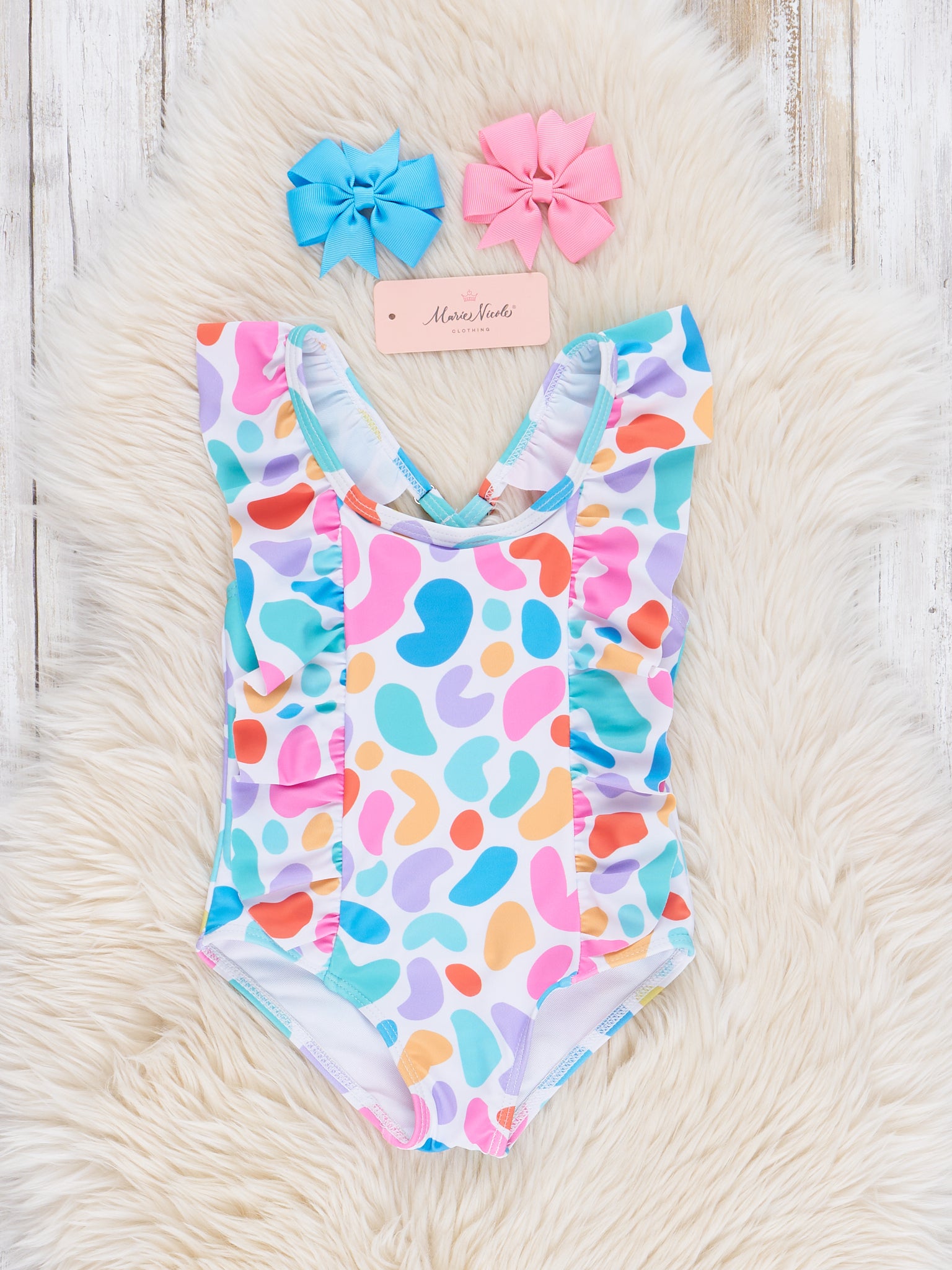 Colorful Leopard Print Ruffle Swimsuit
