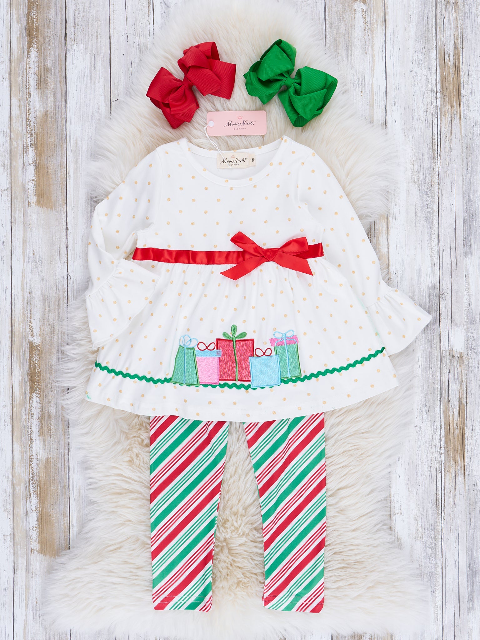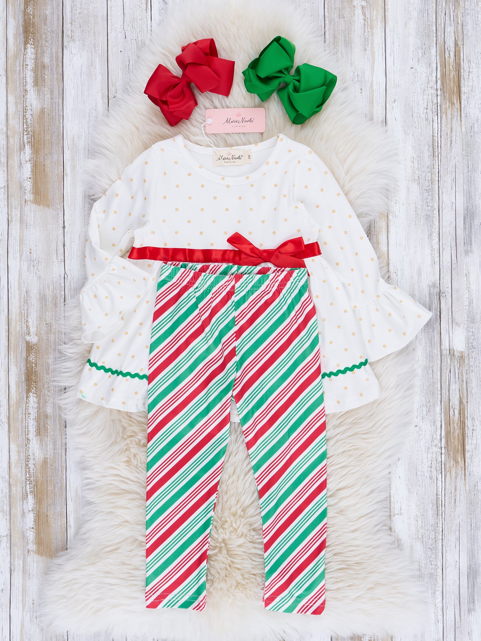 Gold Dots & Candy Stripe Embroidered Holiday Outfit