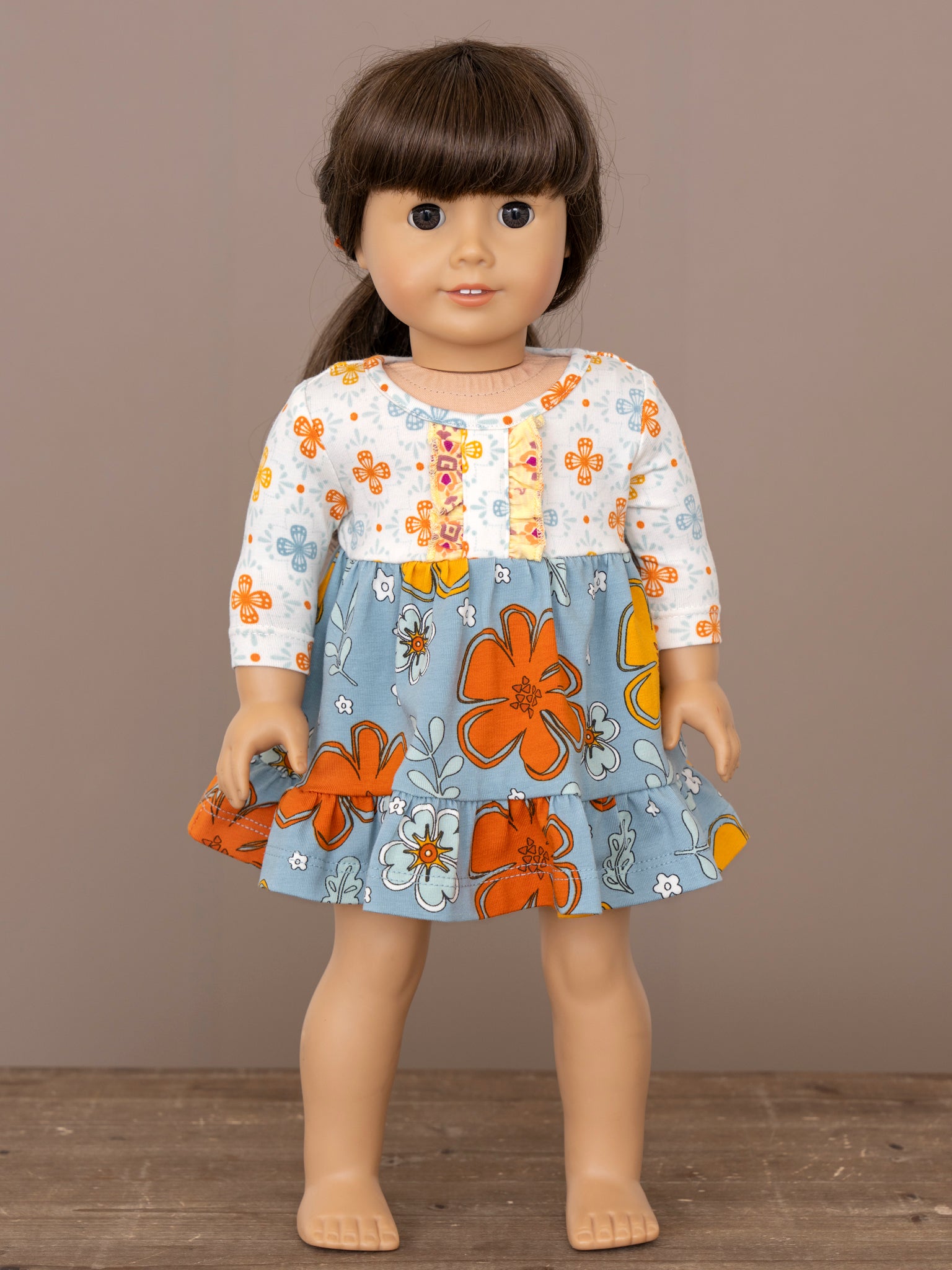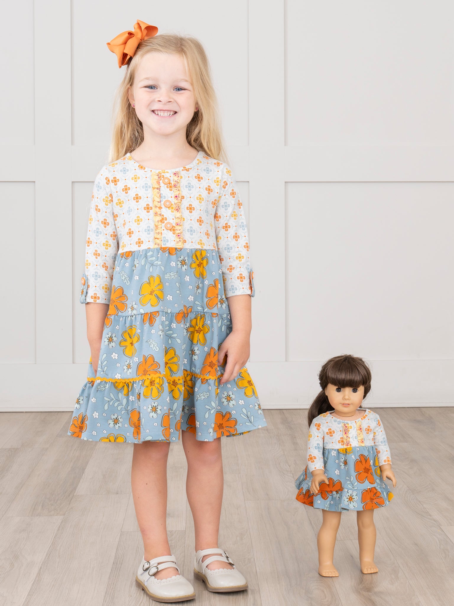 The Golden Hour Cloud Ruffle Doll Dress lets your little one match with her doll friend! It features long sleeves and tiered skirt for a casual look. Watch the sunset with this gorgeous dress!