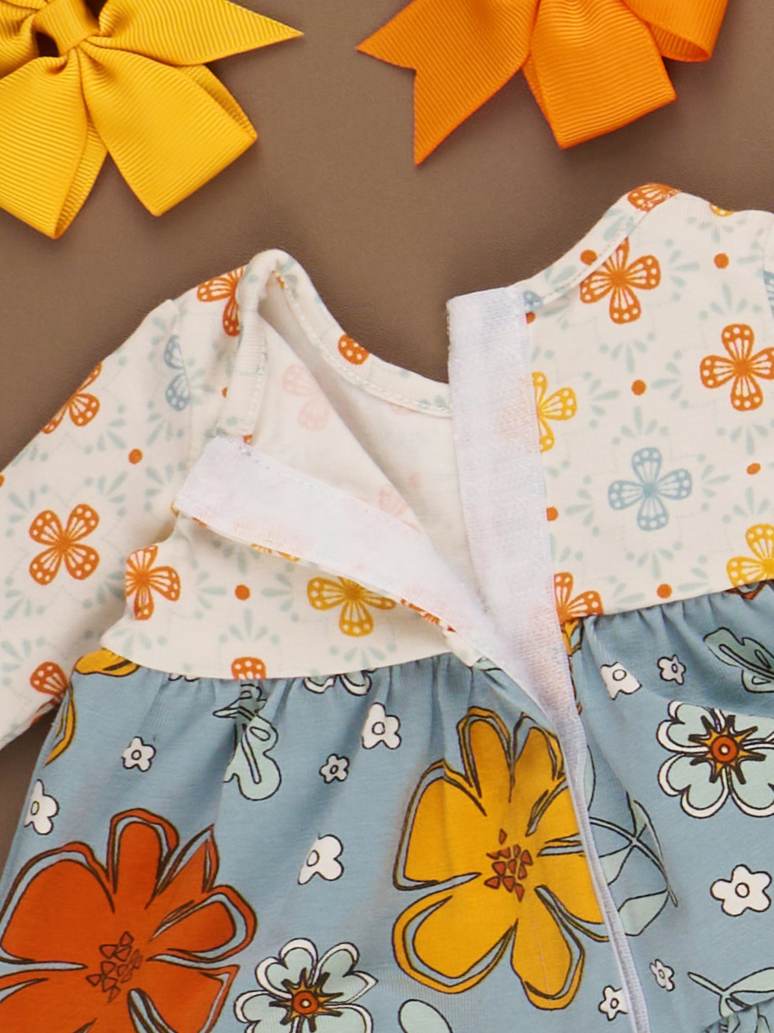Bring out the magic of ever-changing skies and the beauty of nature with the Golden Hour collection. Every piece in this exclusive set by Marie Nicole Clothing is inspired by evenings watching the sunset, as clouds and blue skies transition into gold rays. With sunlit blossoms, decorative patterns, and delicate ruffled details, the collection captures that lovely but ephemeral moment between day and night. Each item is exquisitely crafted with soft, high-quality cotton and designed for comfort, durability, and breathability, making them versatile for the indoors or outdoors, sunny or chilly days. In one of these wonderful pieces, your little one can feel as extraordinary as a sunset.