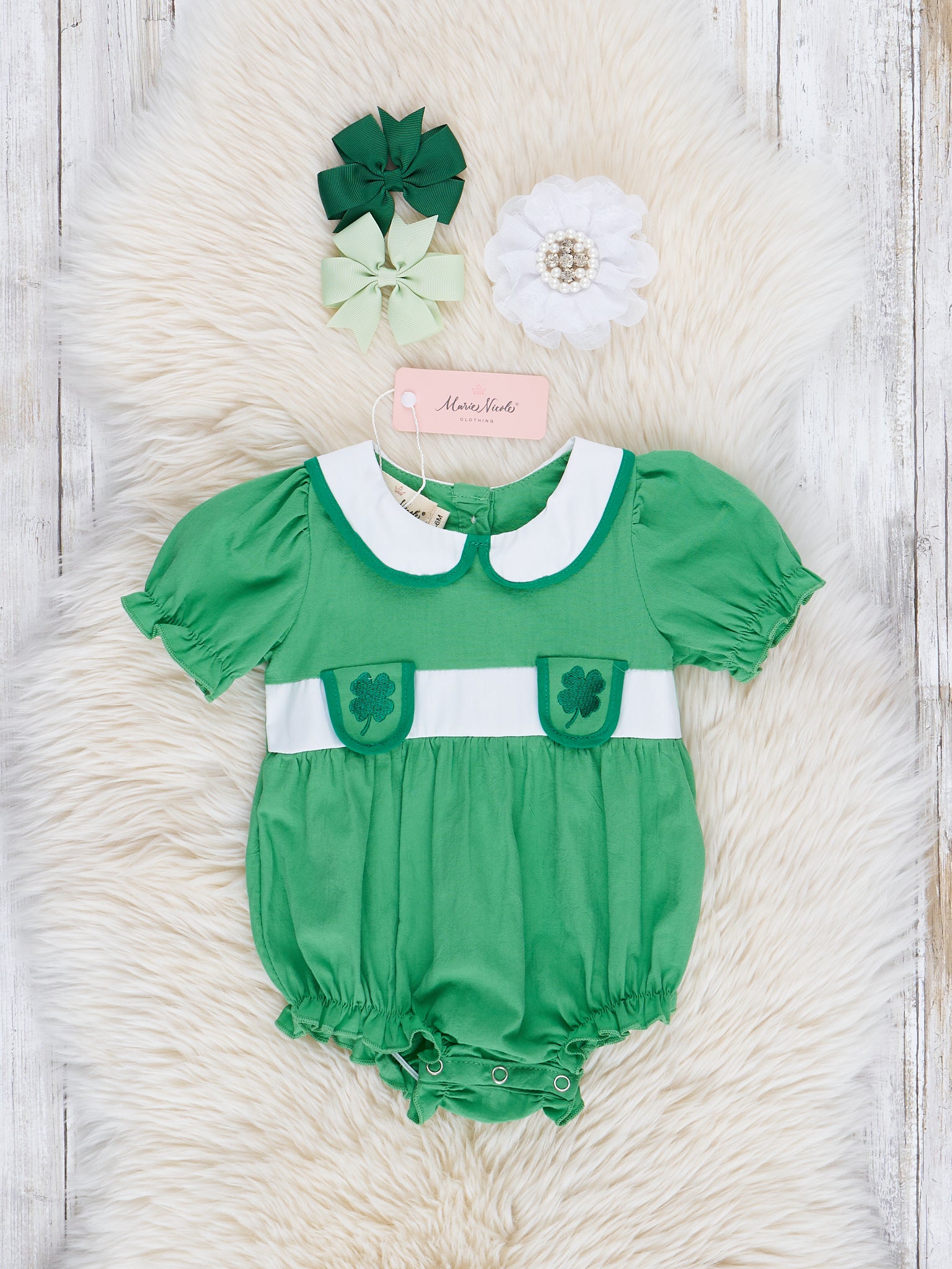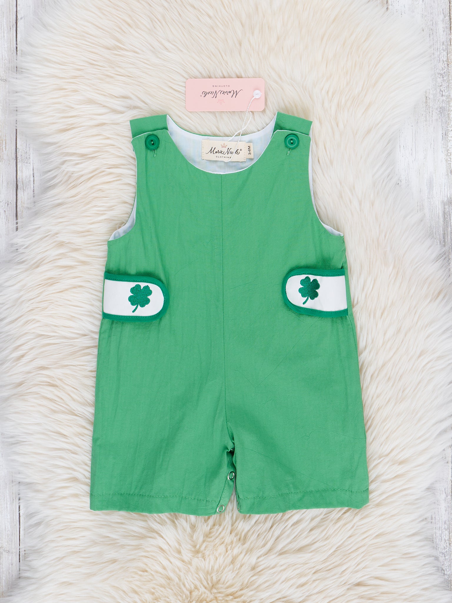 Home › Green 4-Leaf Clover Smocked Sibling Set
