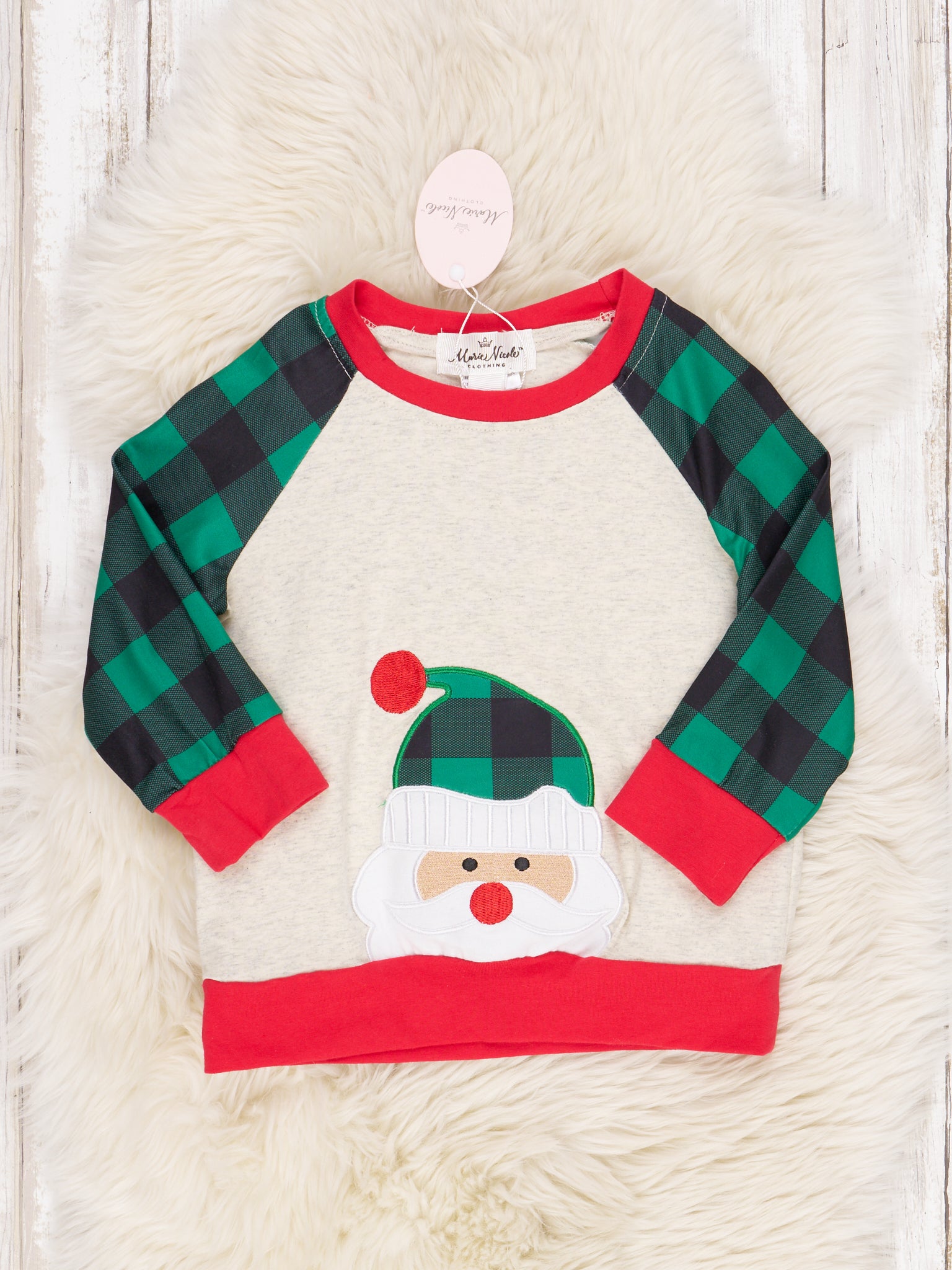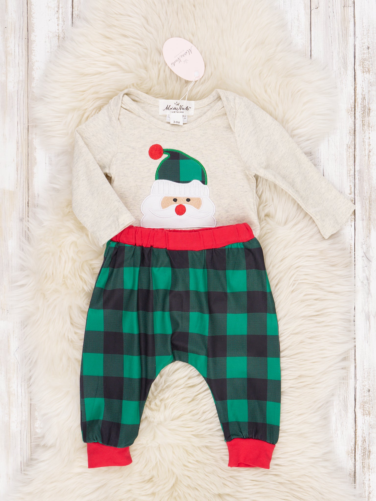 Home › Green Buffalo Plaid Santa Brother Set