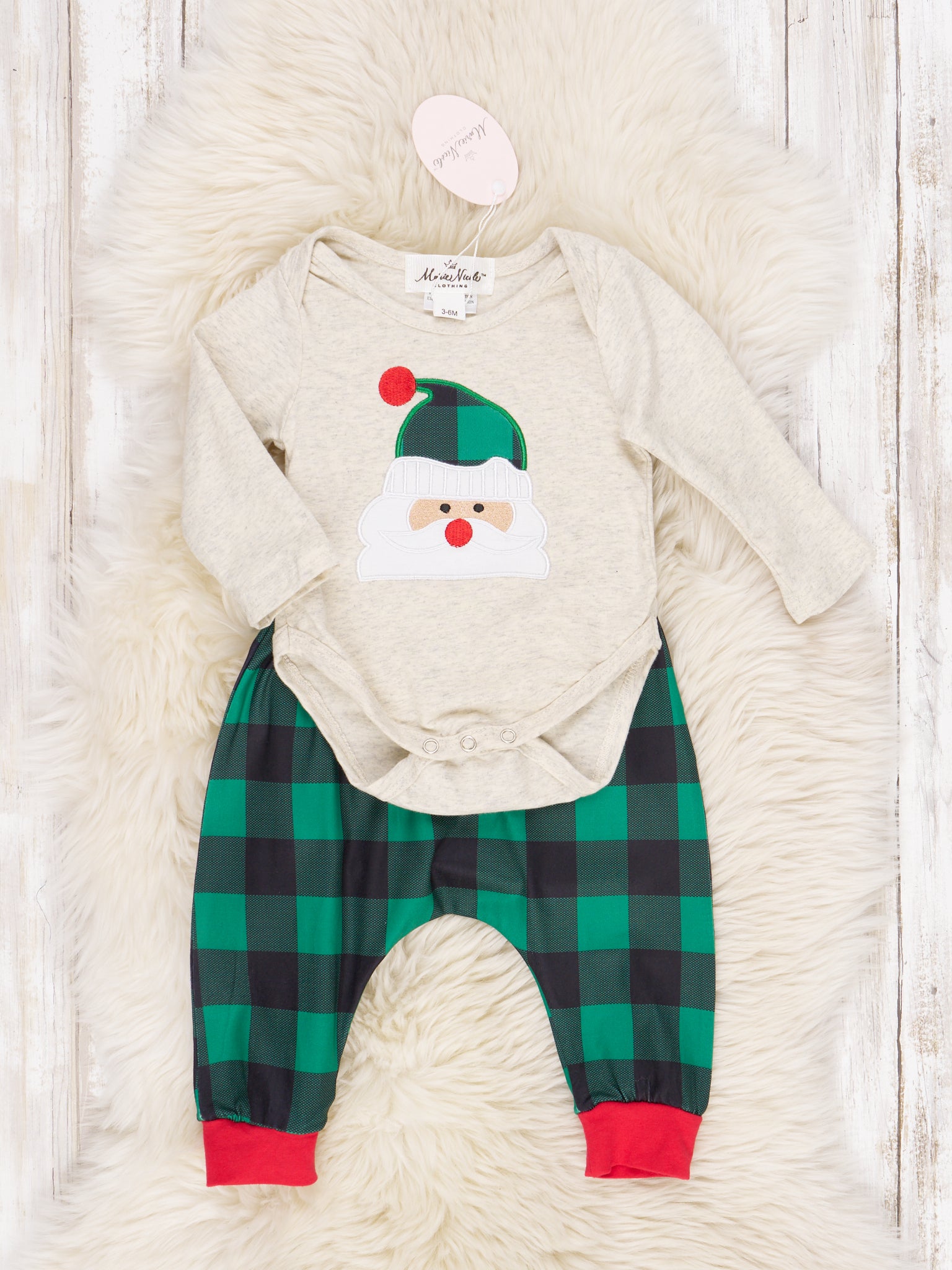 Green Buffalo Plaid Santa Onesie Outfit