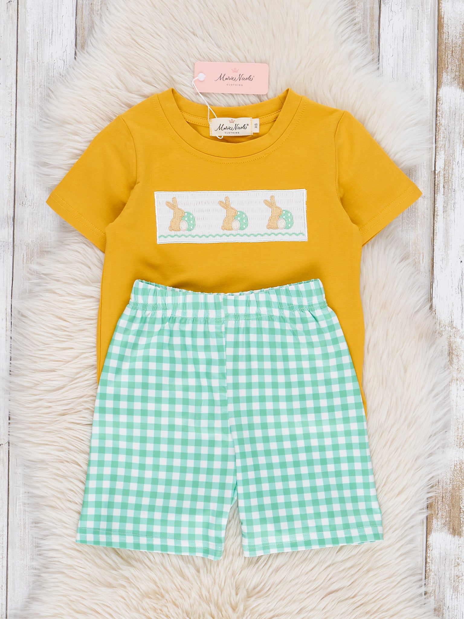 Green Embroidered Bunny Gingham Outfit