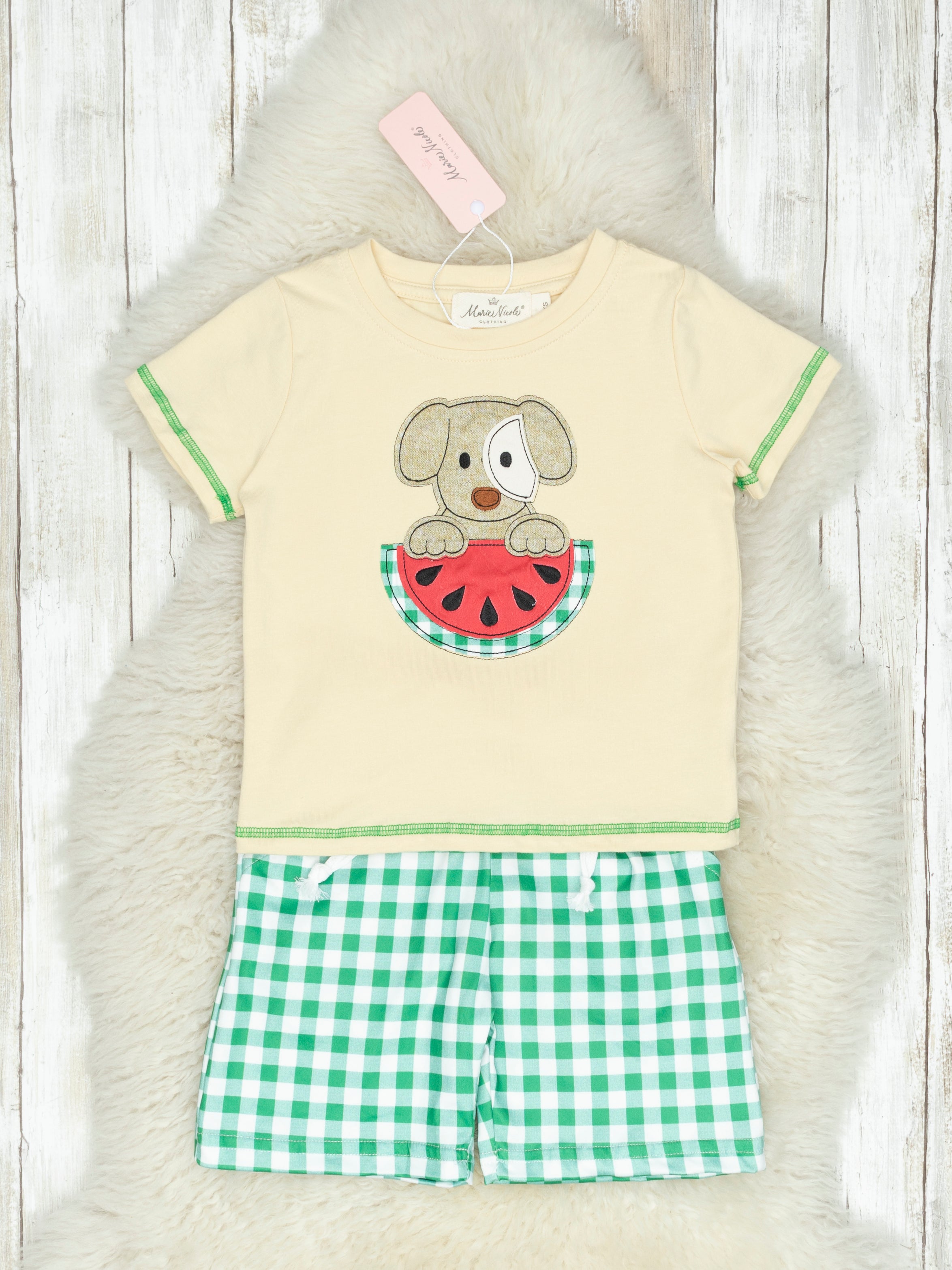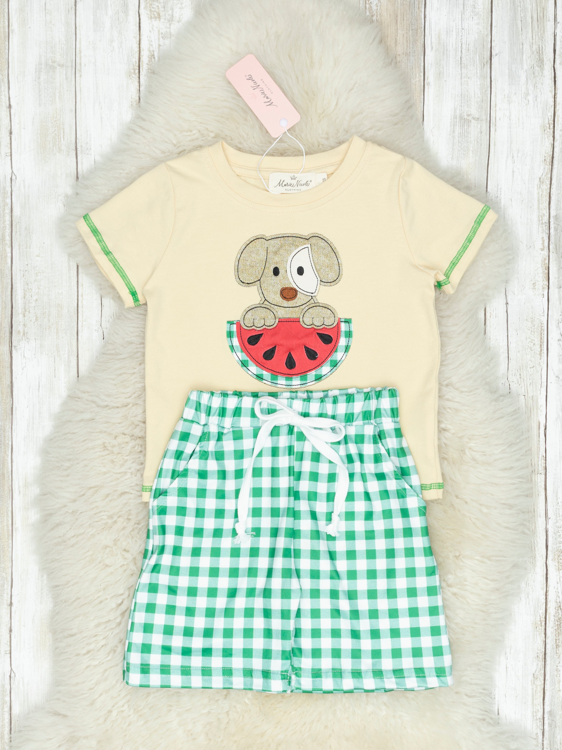 Home › Green Gingham Watermelon Puppy Sibling Set