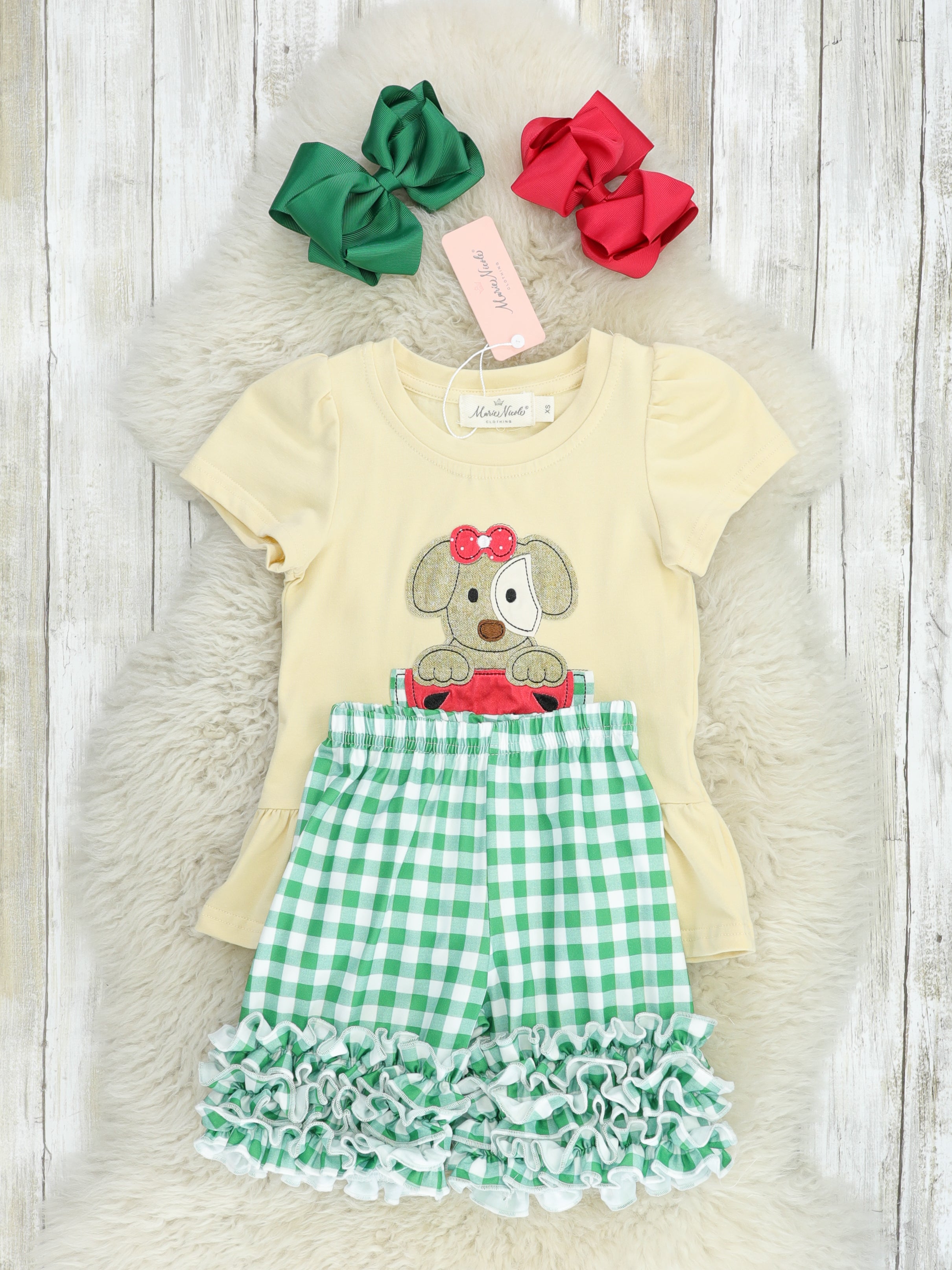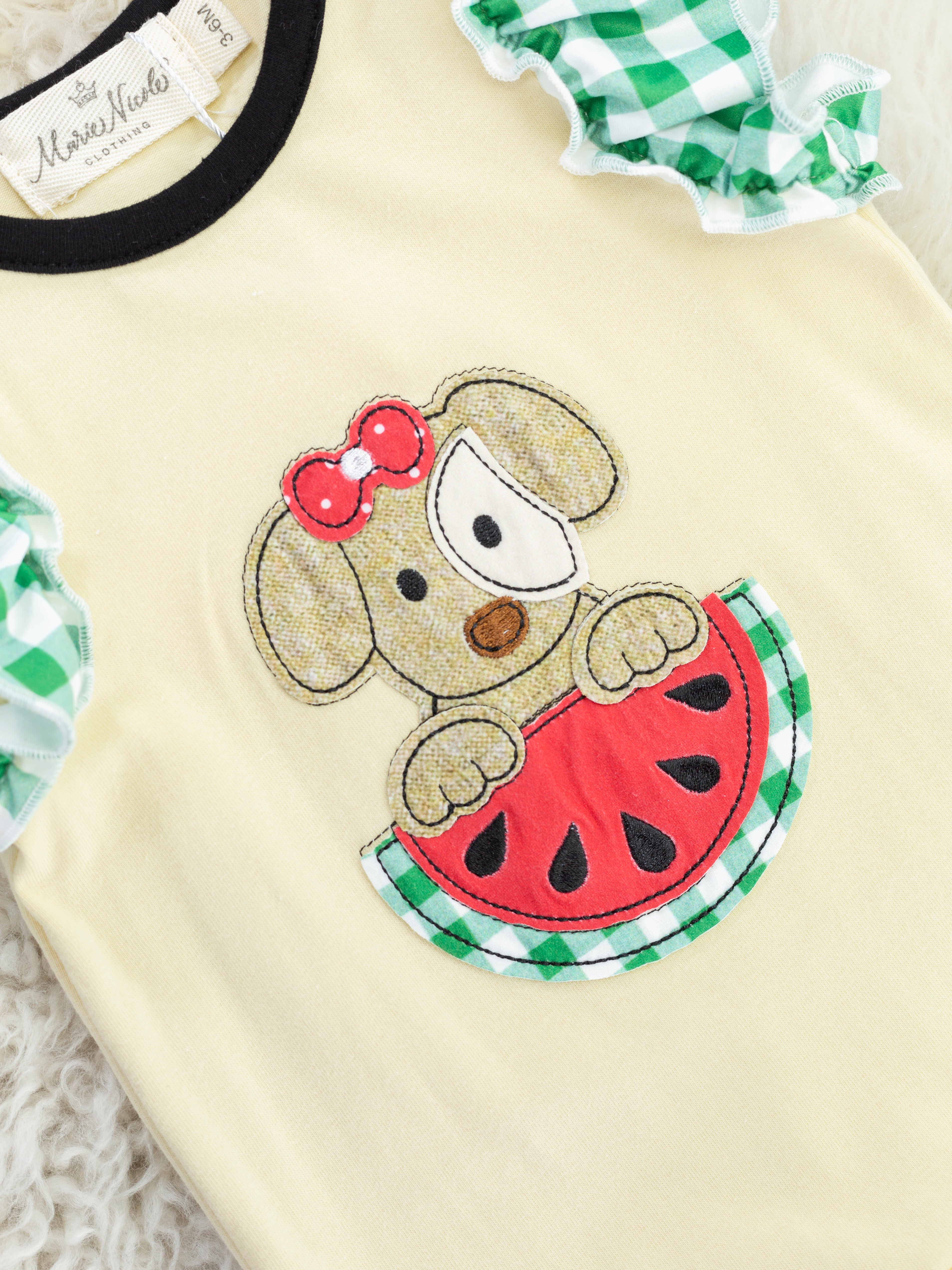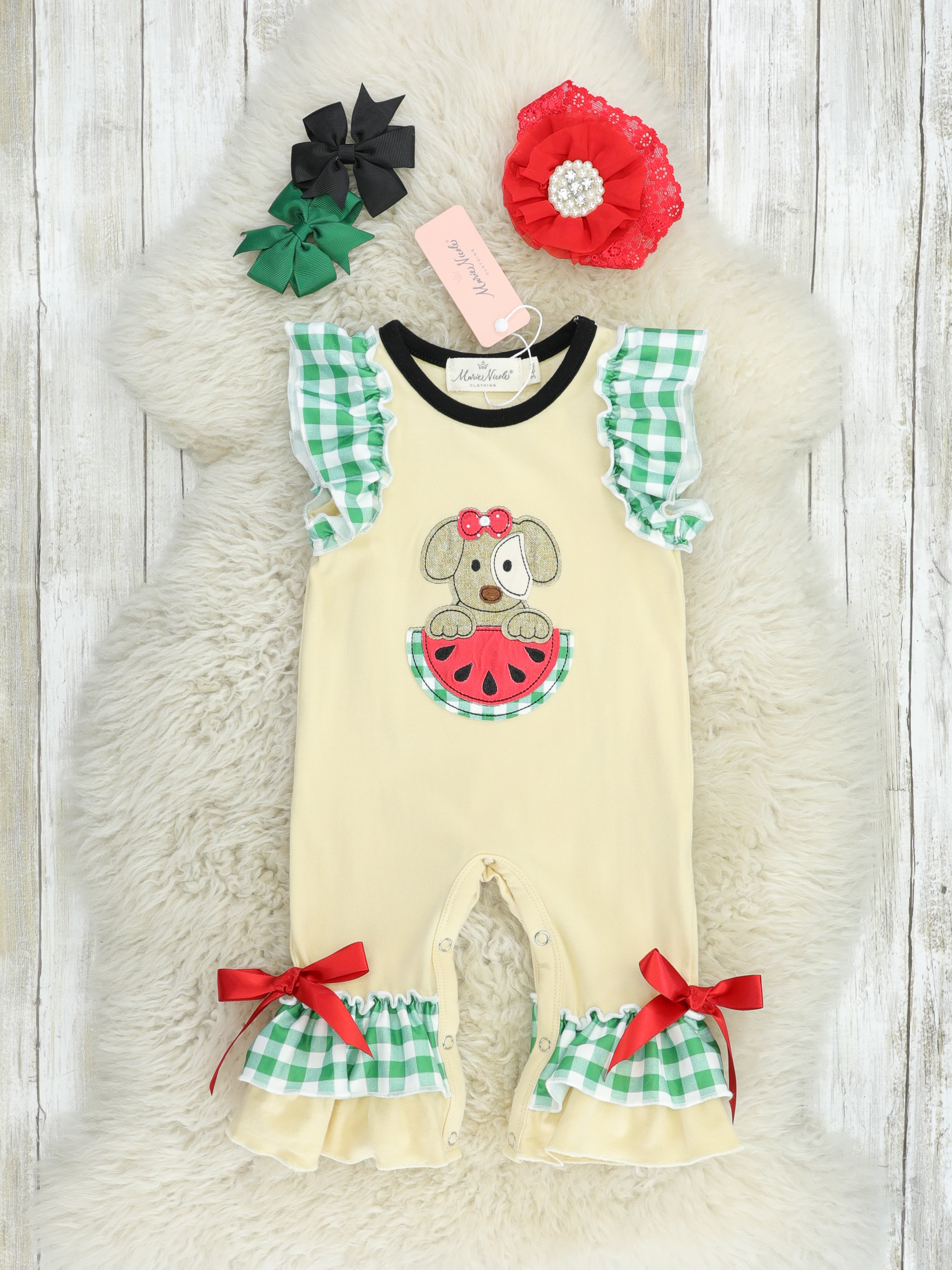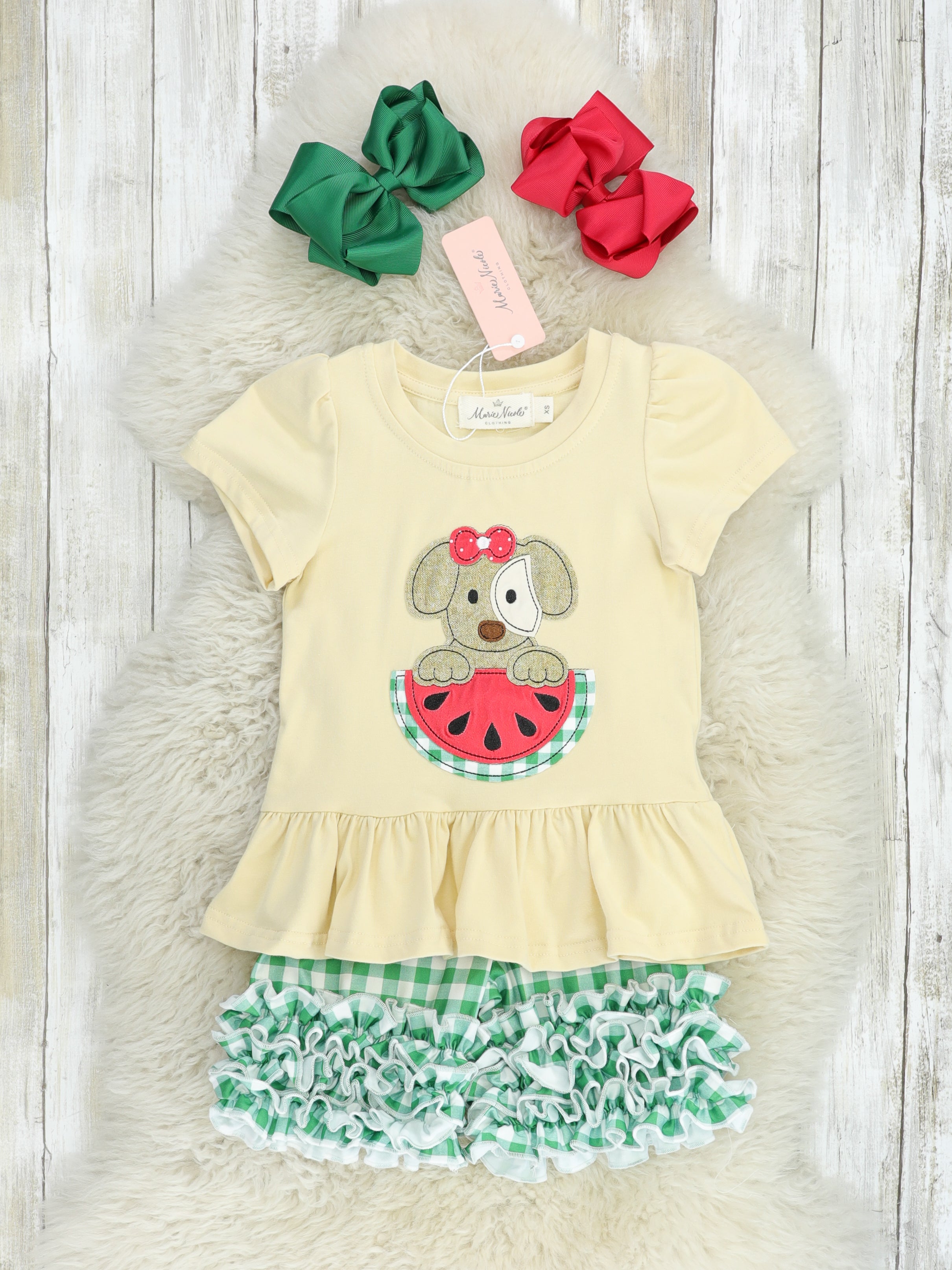 Green Gingham Watermelon Puppy Ruffle Outfit
