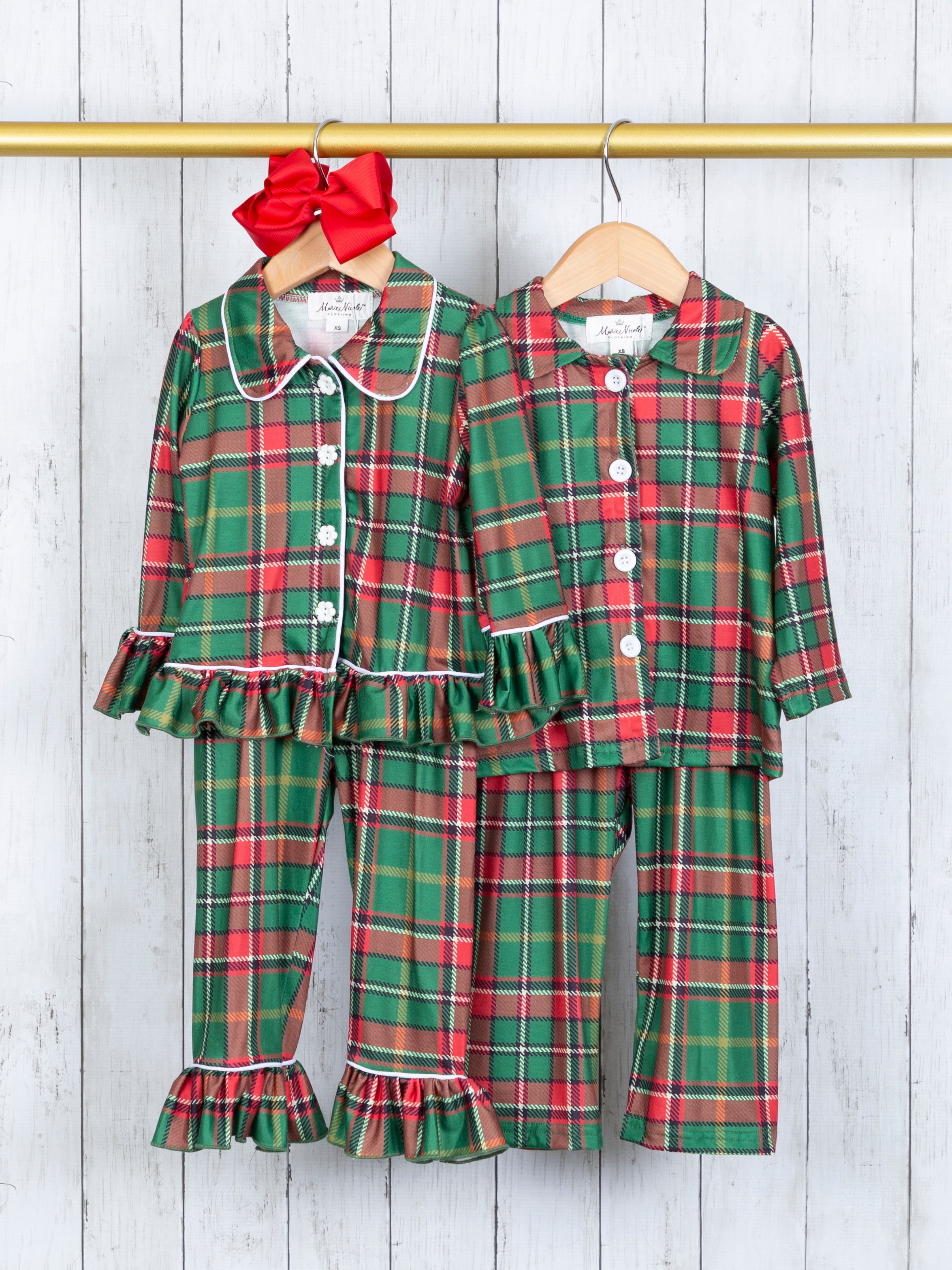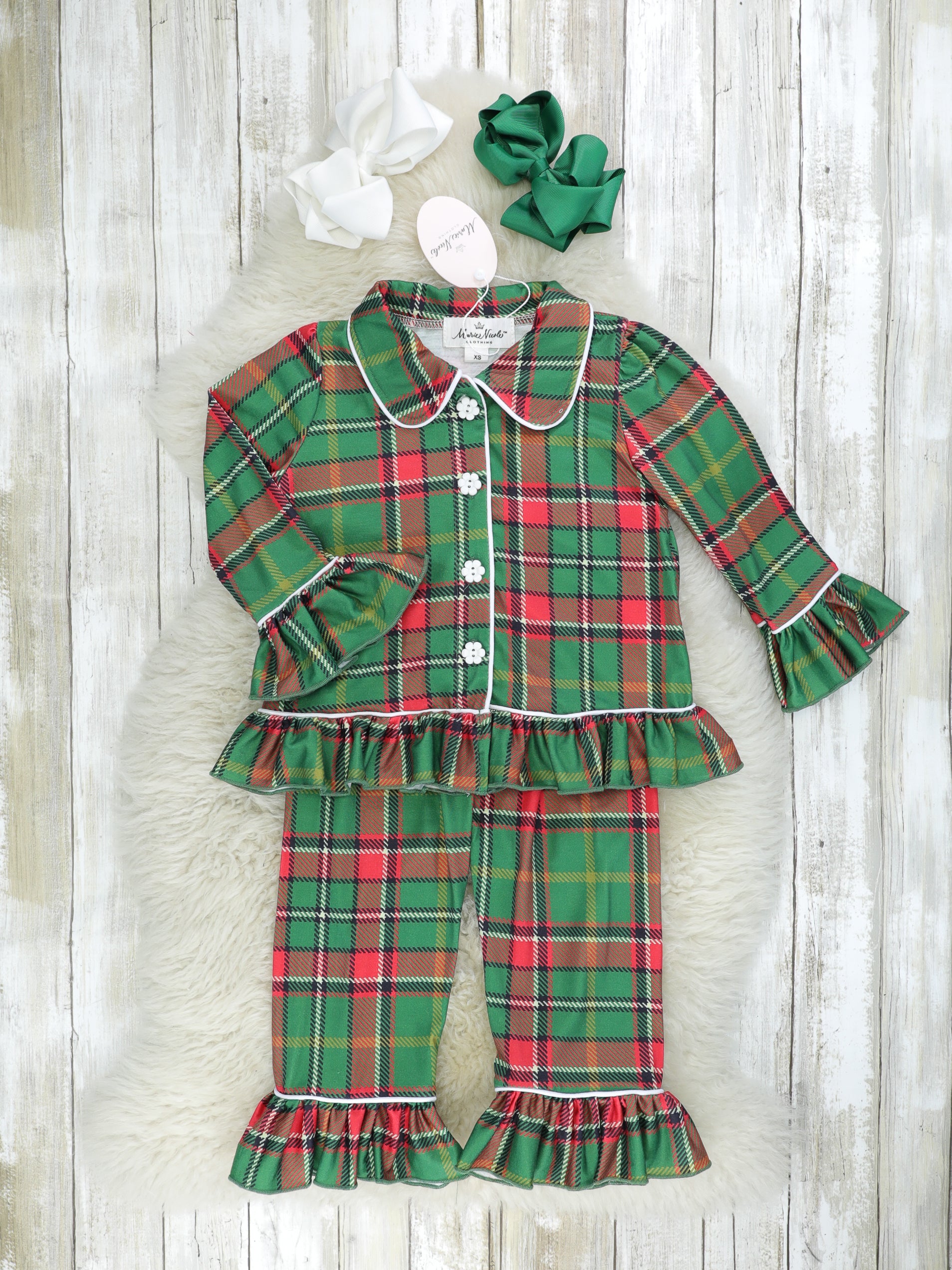Green & Red Plaid Ruffle Pajamas
