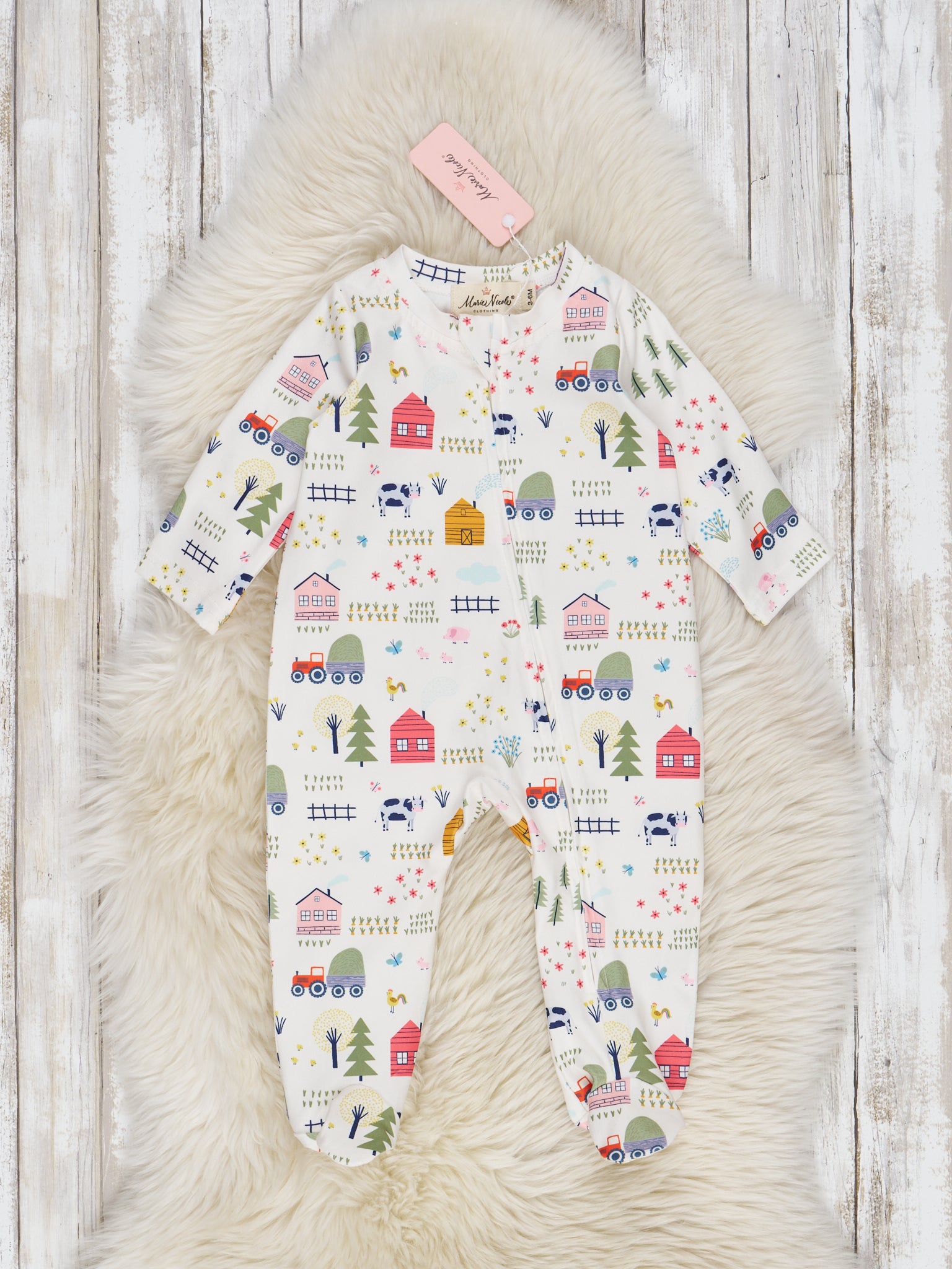 Green & White Doodle Farm Footed Sleeper Pajamas