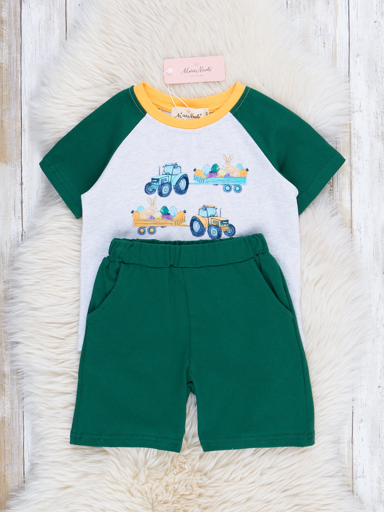 Home › Grey & Green Raglan Easter Trucks Brother Set