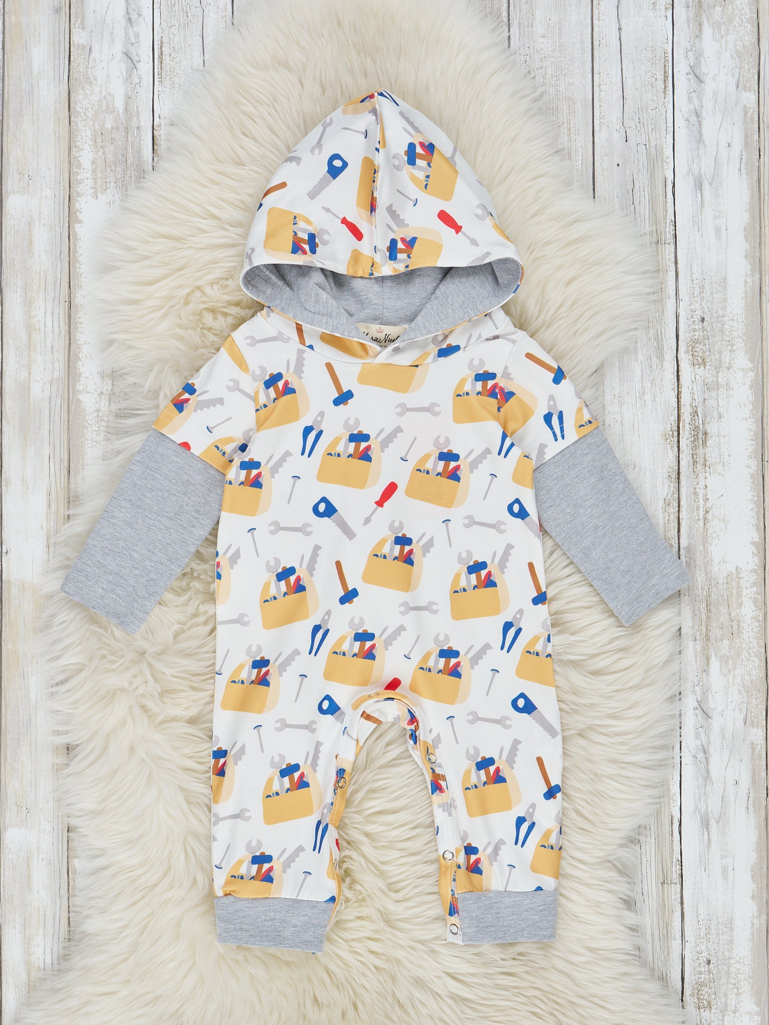 Grey & Yellow Toolbox Hooded Romper