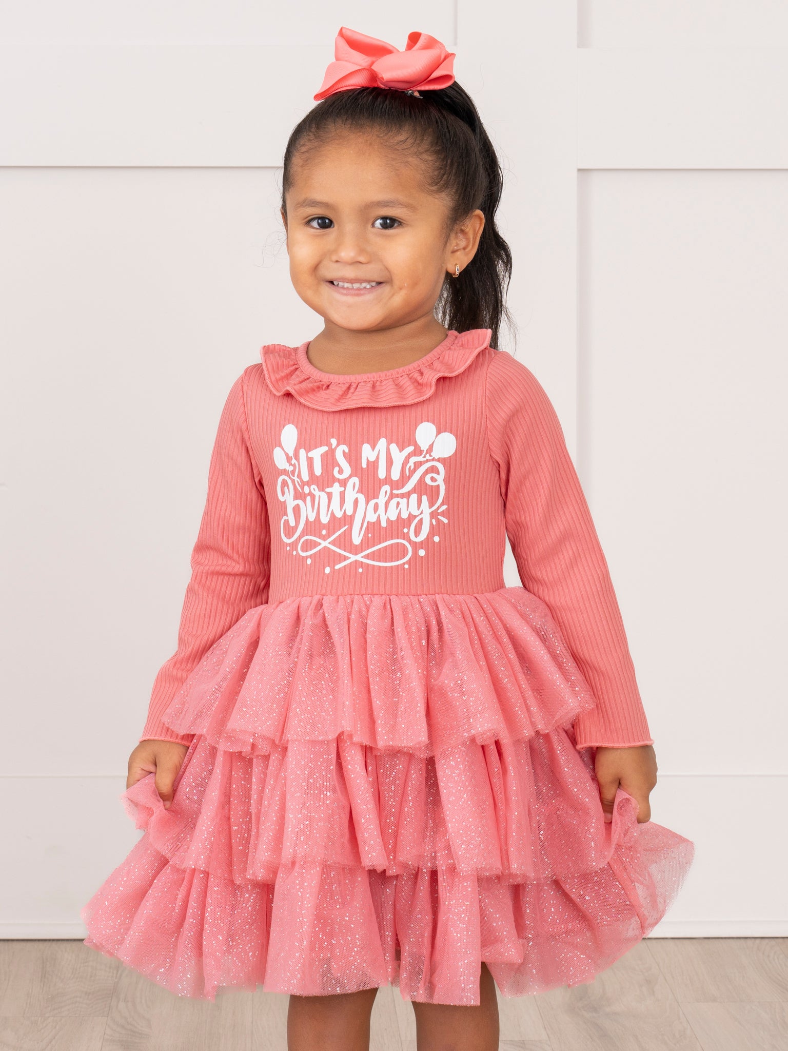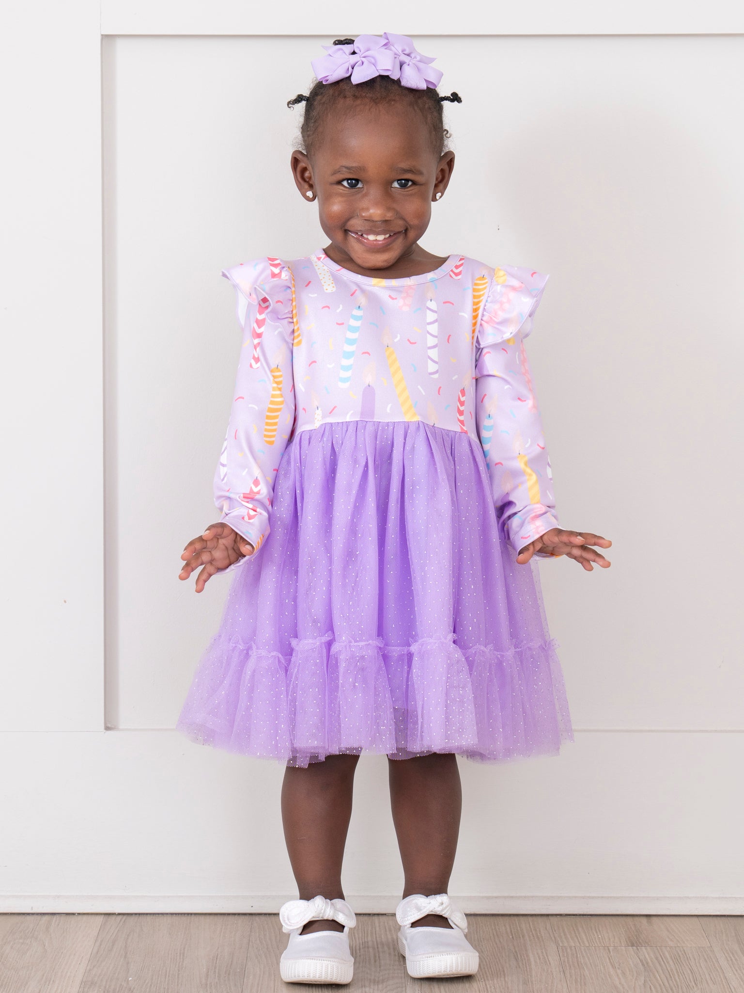 Take the annual birthday photo up a notch with a birthday-themed outfit. The photos will be the best ones yet. What could be cuter than your toddler posing in her sparkly birthday party dress? (nothing!)